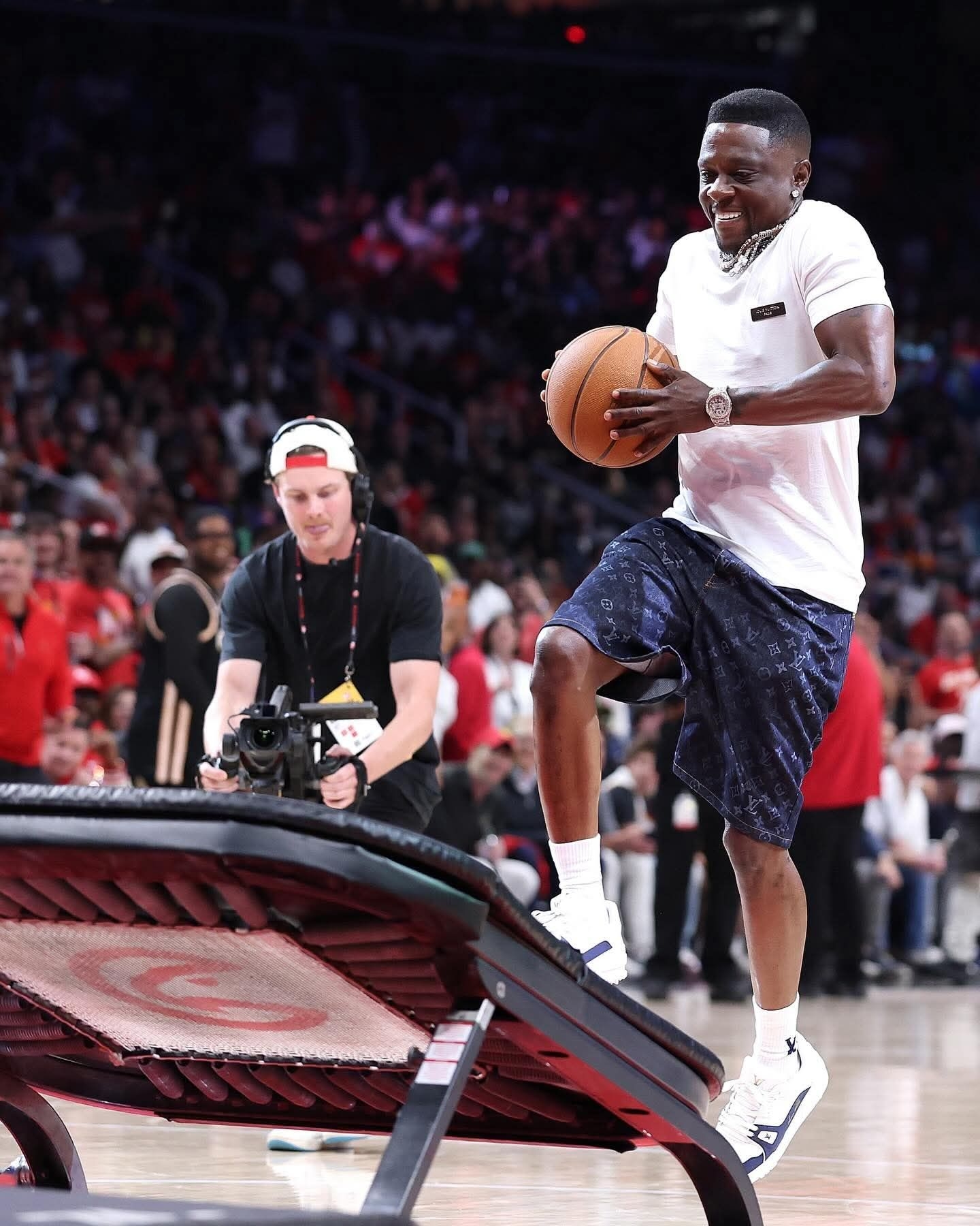 谁懂啊!Boosie Badazz 这波直接化身“Air Boosie”,脚踩 LV Trainer 起飞扣篮! 只能说这双鞋的“气垫buff”直接拉满,连rapper都被它的“飞行属性”征服了,这波潮流和整活直接拉满✨