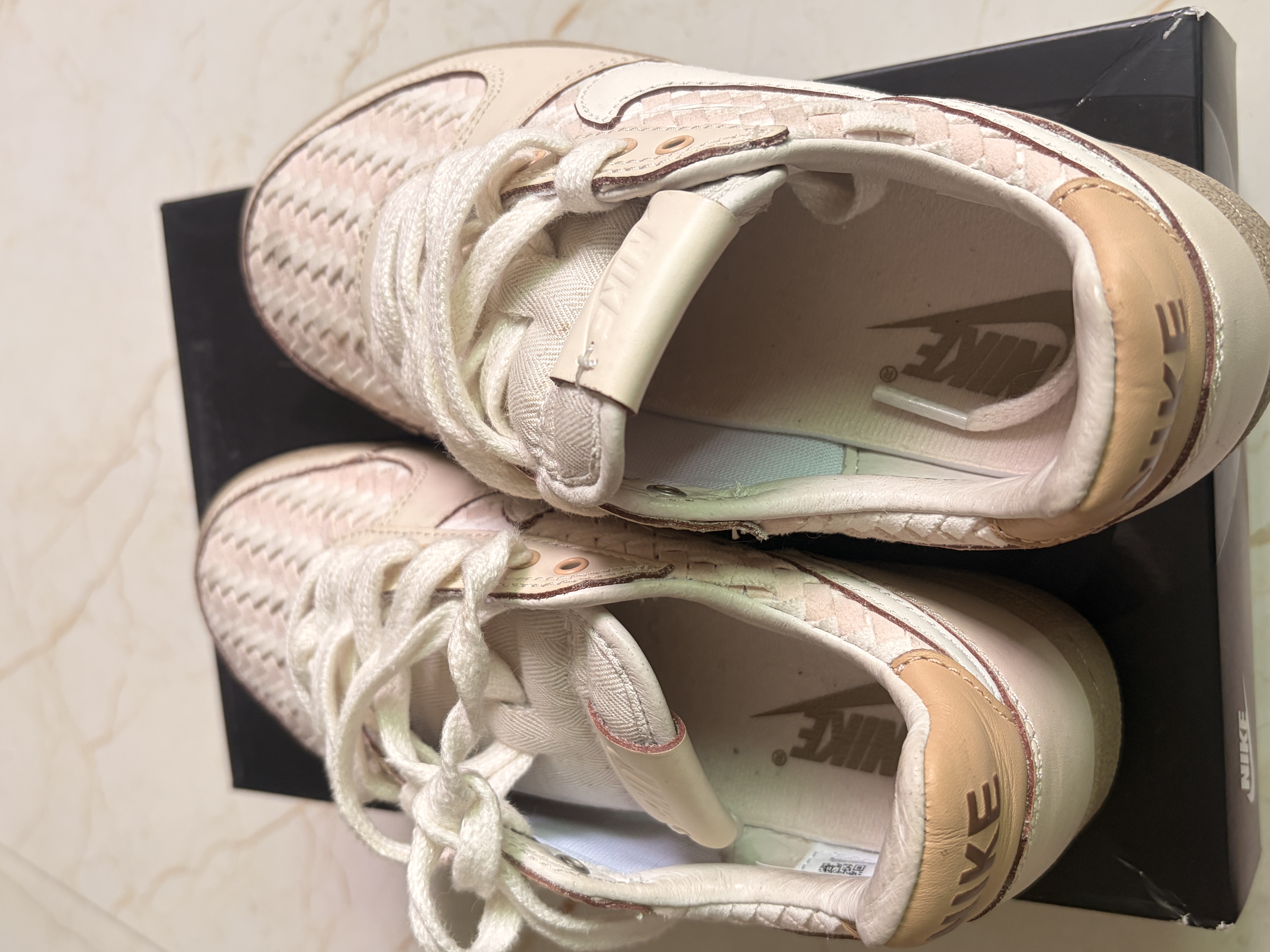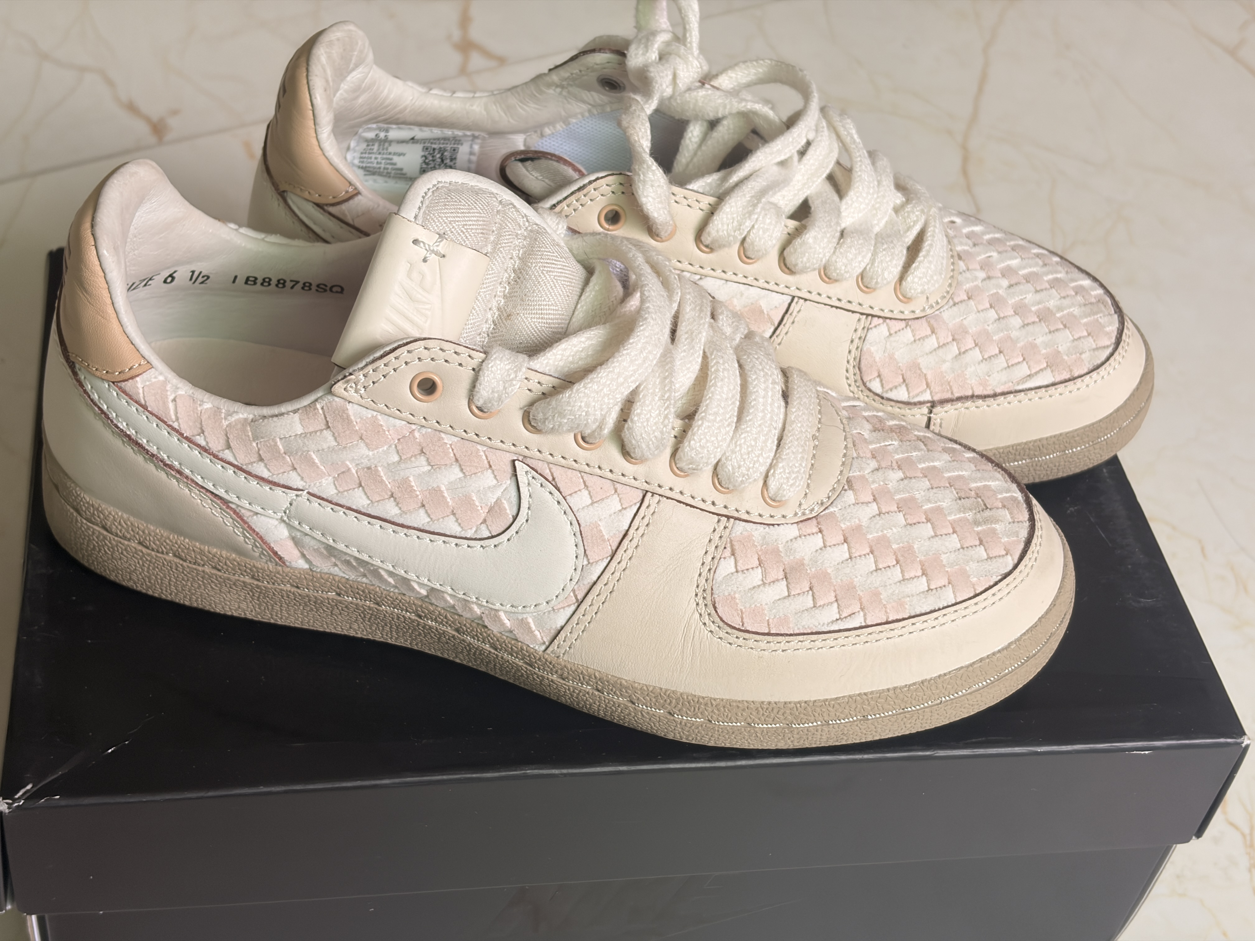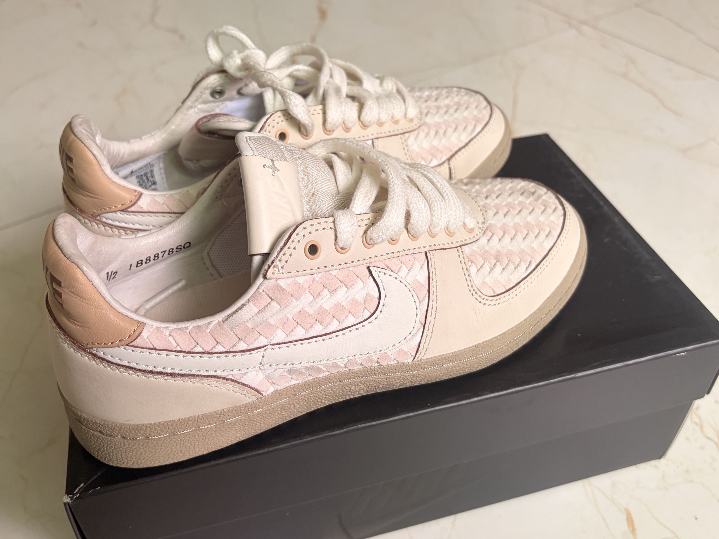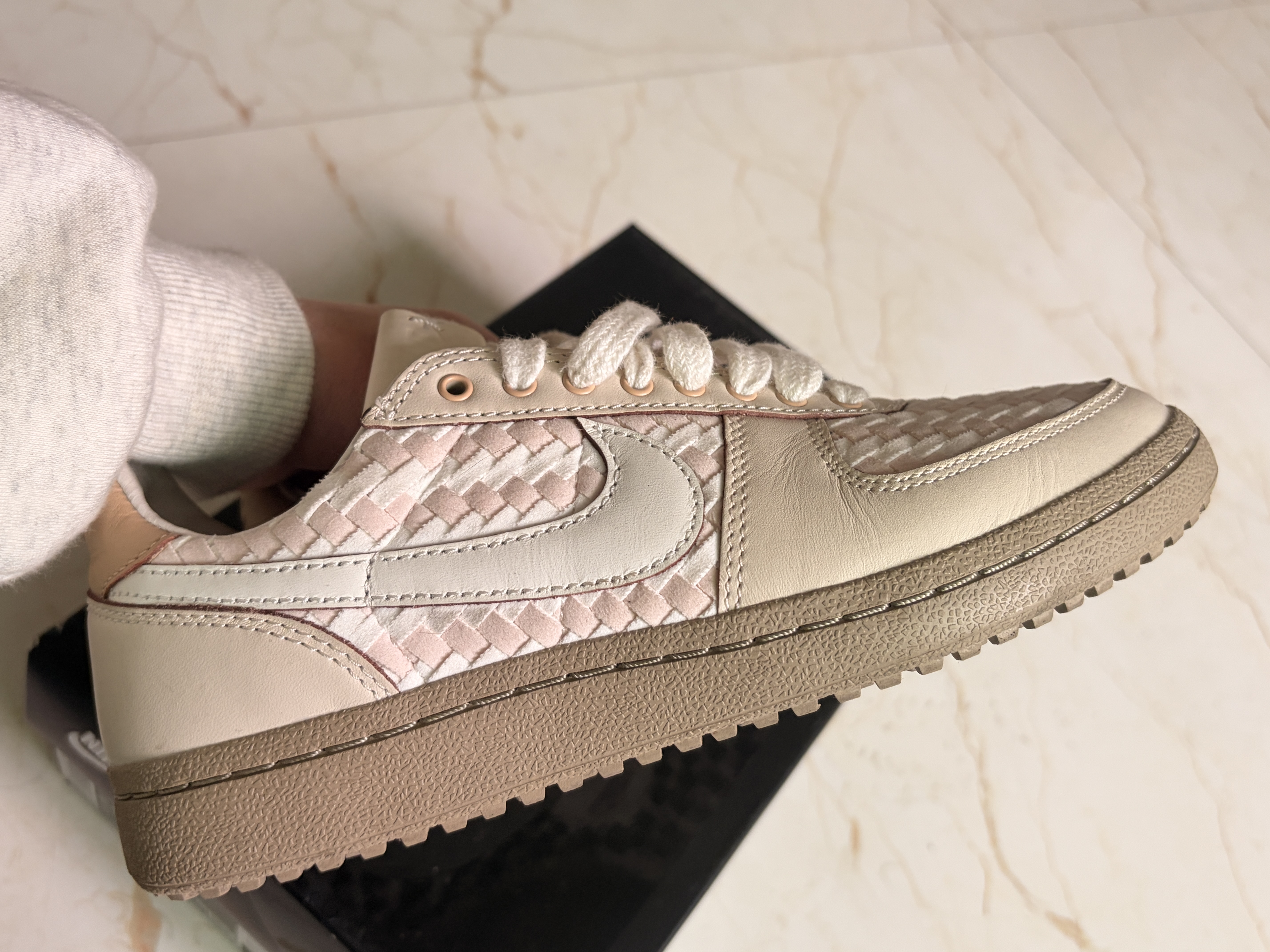 谁能拒绝一双两百多的Nike编织板鞋啊! ▪️ 鞋面的粉白编织设计太戳我了,质感超棒,复古又有小心机 ▪️ 米白皮革+生胶鞋底,自带复古滤镜,越看越耐看 ▪️ 上脚巨温柔,软乎乎的脚感,日常穿完全不磨脚 ▪️ 关键是价格只要两百多,学生党也能轻松拿下,性价比直接封神!