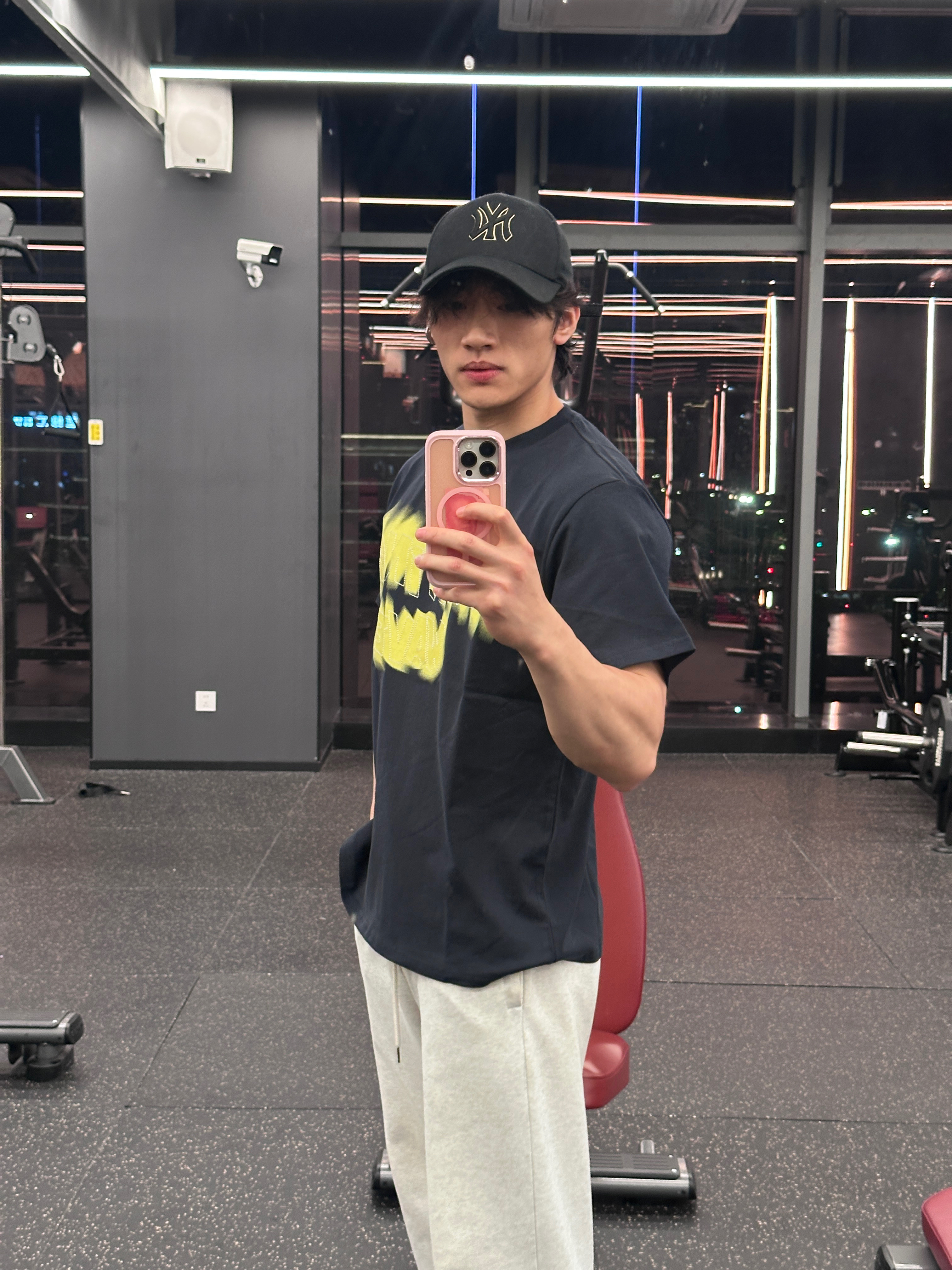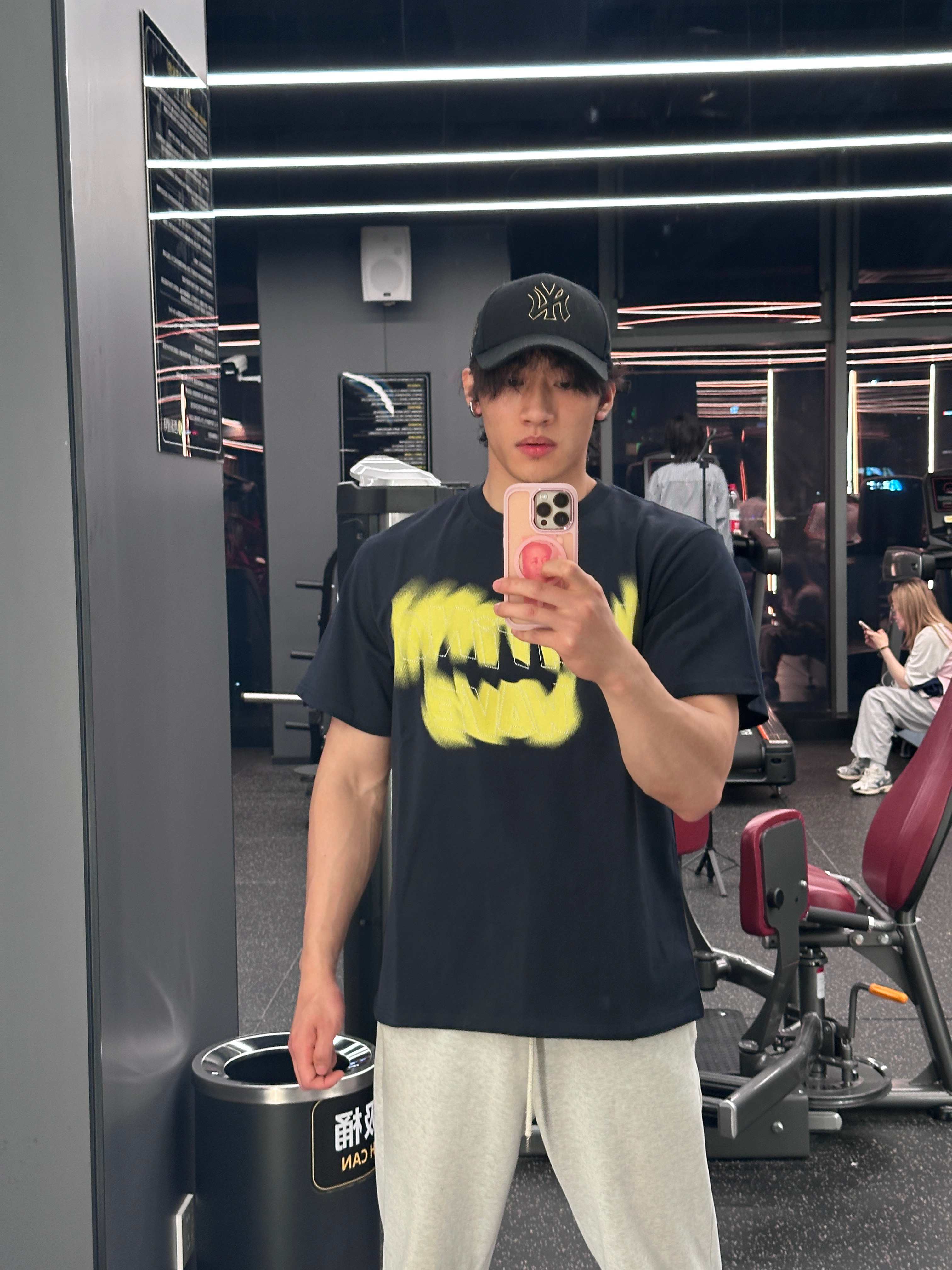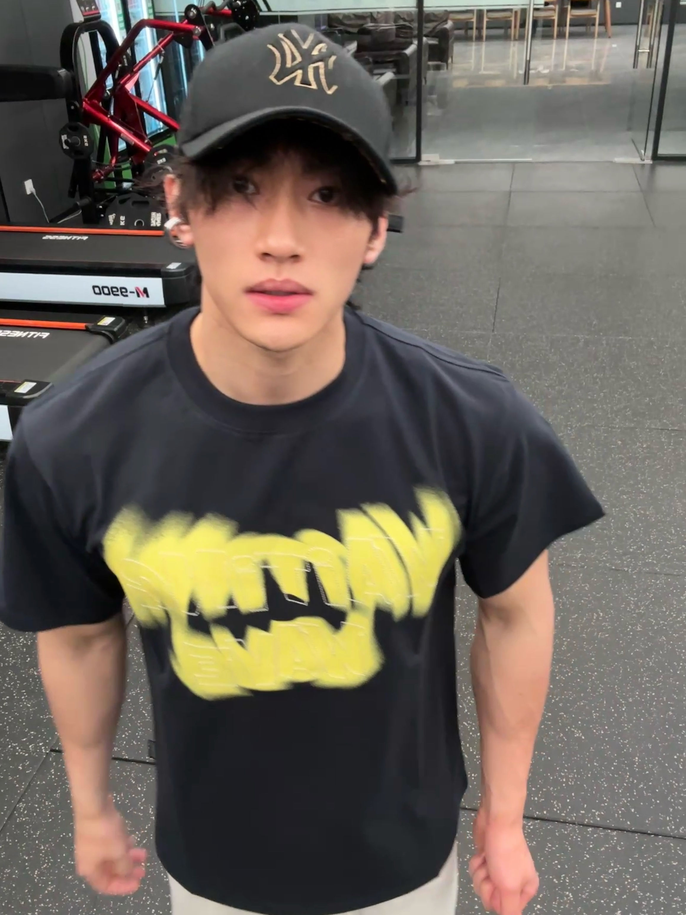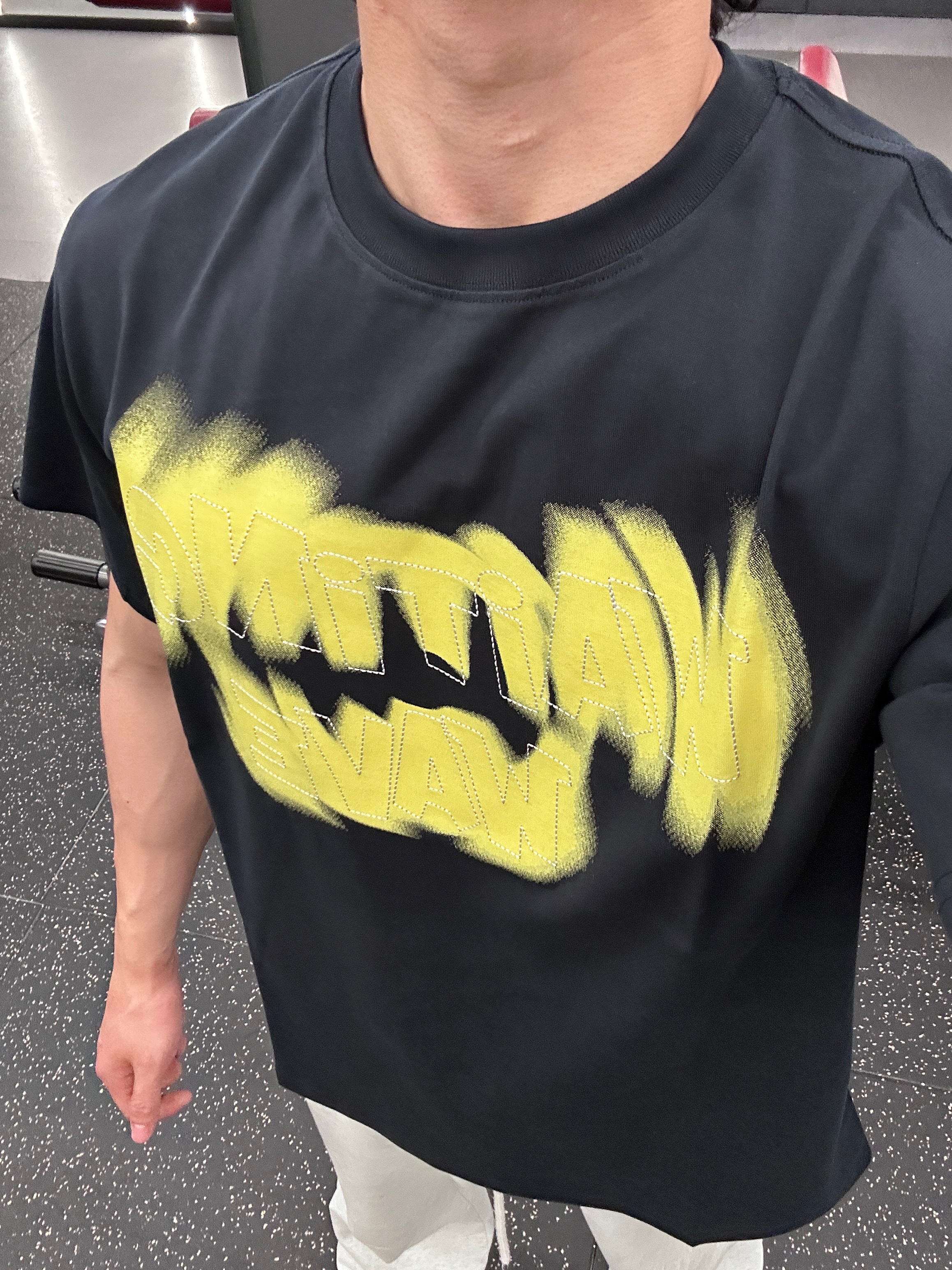 谁懂啊!这件黑黄印花T恤真的是健身房天花板 宽松落肩版型,完全不卡训练动作,还能把肩线衬得超好看 荧光黄的涂鸦印花又潮又吸睛,训练日穿它,状态直接拉满 日常搭牛仔裤也超有少年感,一衣两穿直接拿捏