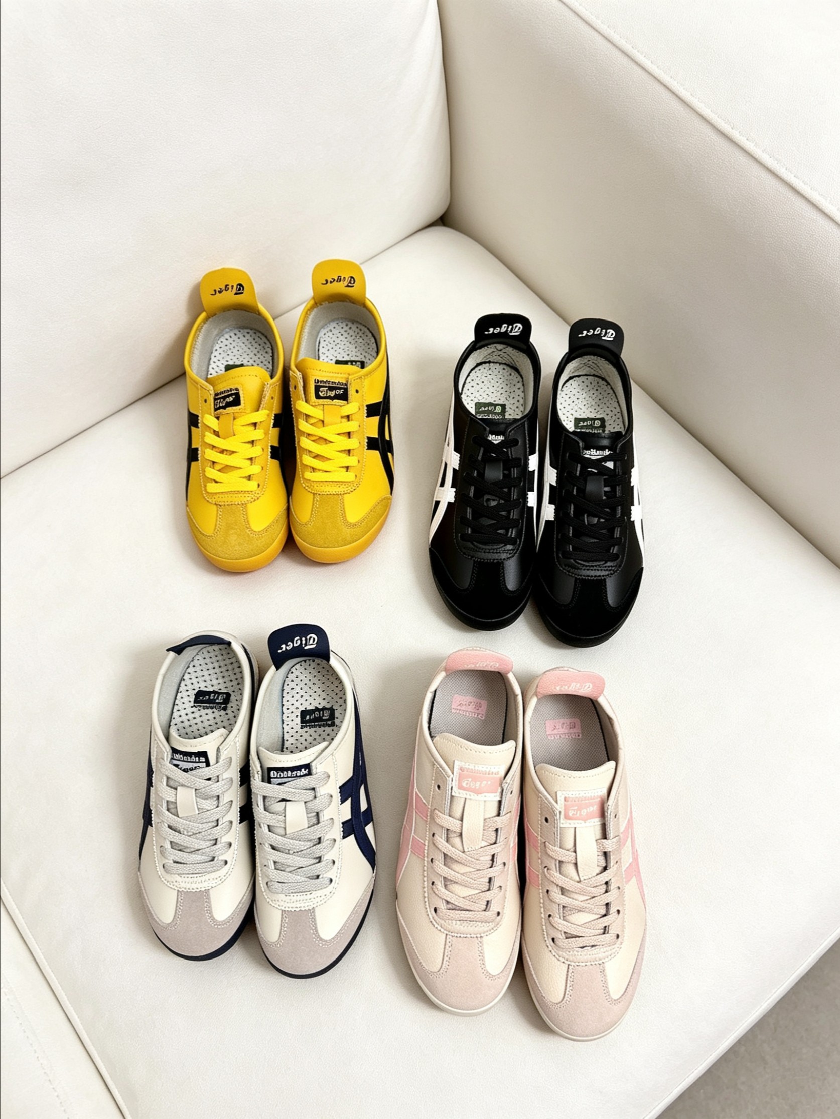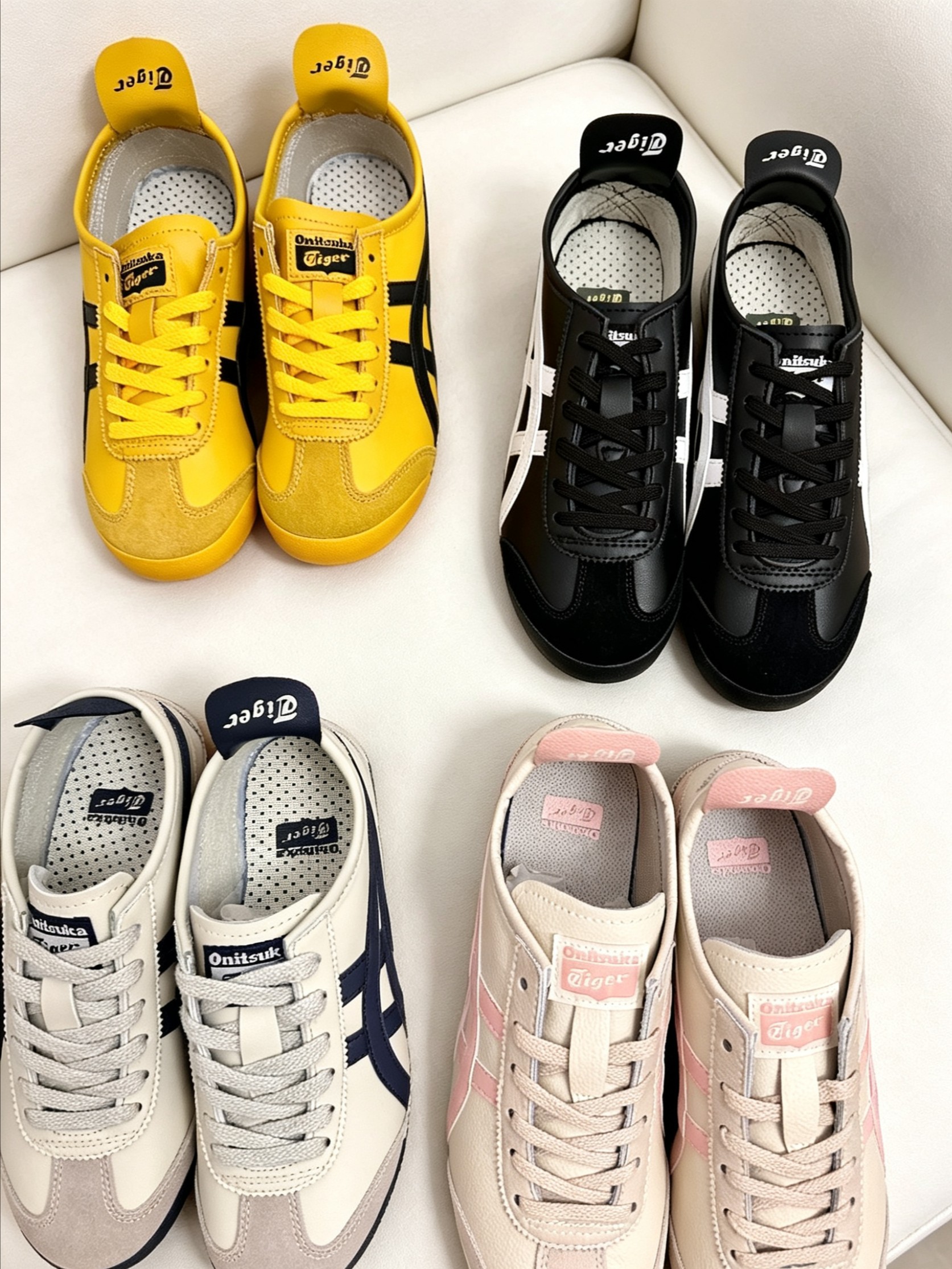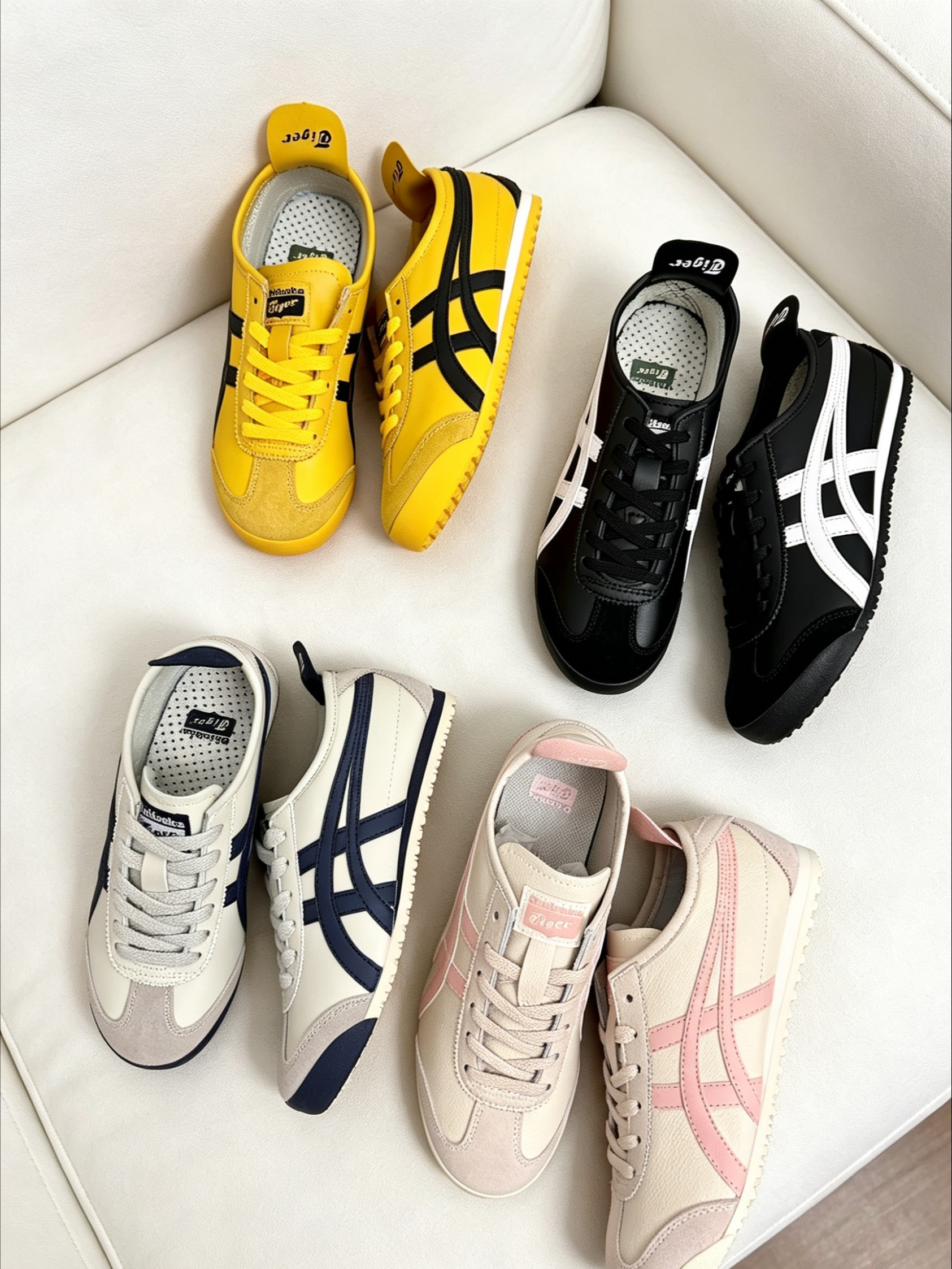 鬼塚虎这波配色直接杀疯了! 经典的MEXICO 66版型,自带复古滤镜,软乎乎的鞋面上脚轻到像没穿鞋,暴走一天都不累~ 黄黑元气亮眼,黑白色酷飒百搭,米蓝温柔日常,粉白温柔甜妹,不管是配牛仔裤、运动裤还是百褶裙,都能一键拿捏松弛感! 学生党和打工人闭眼冲的百搭神鞋,每一双都戳中审美!