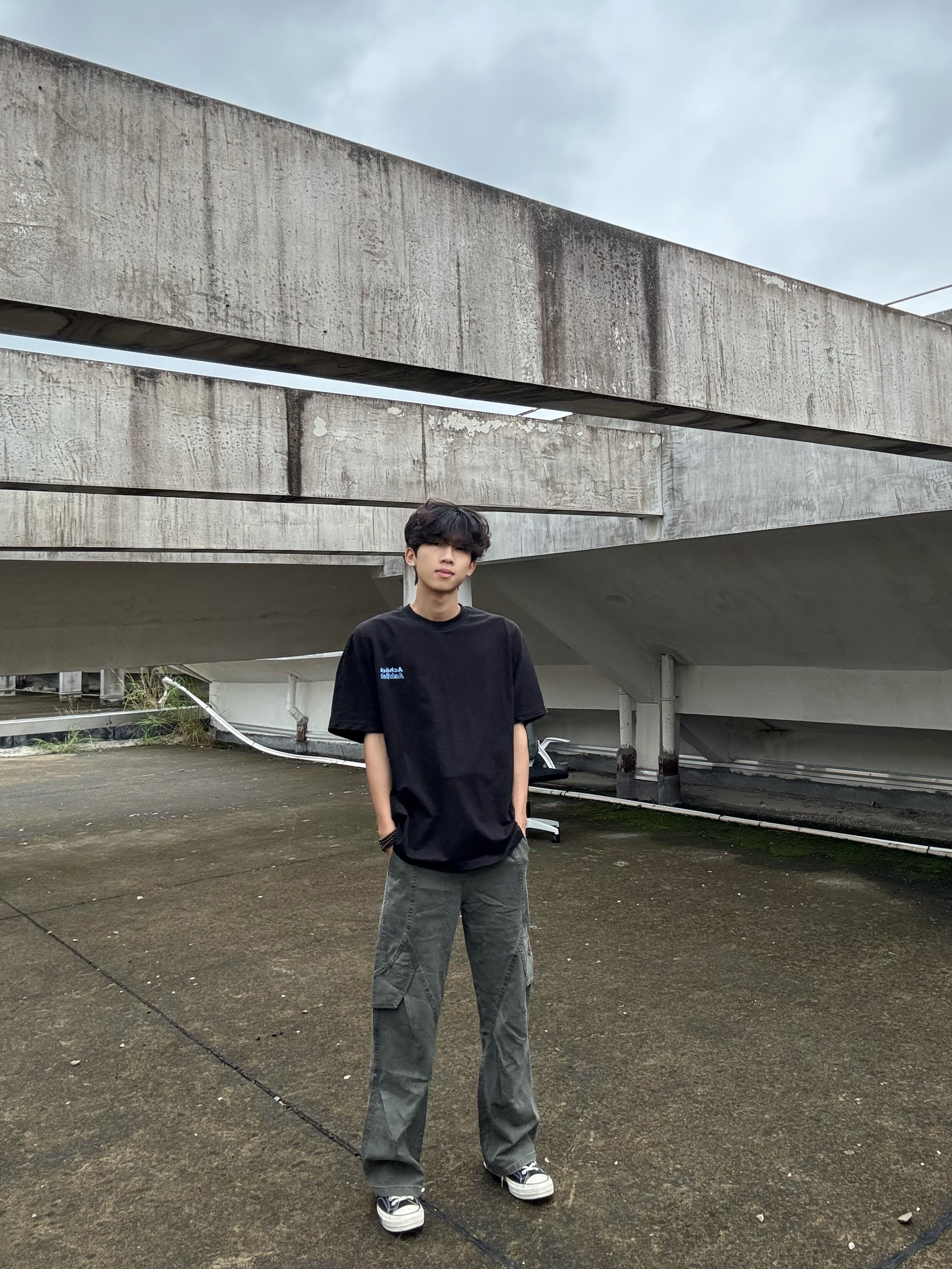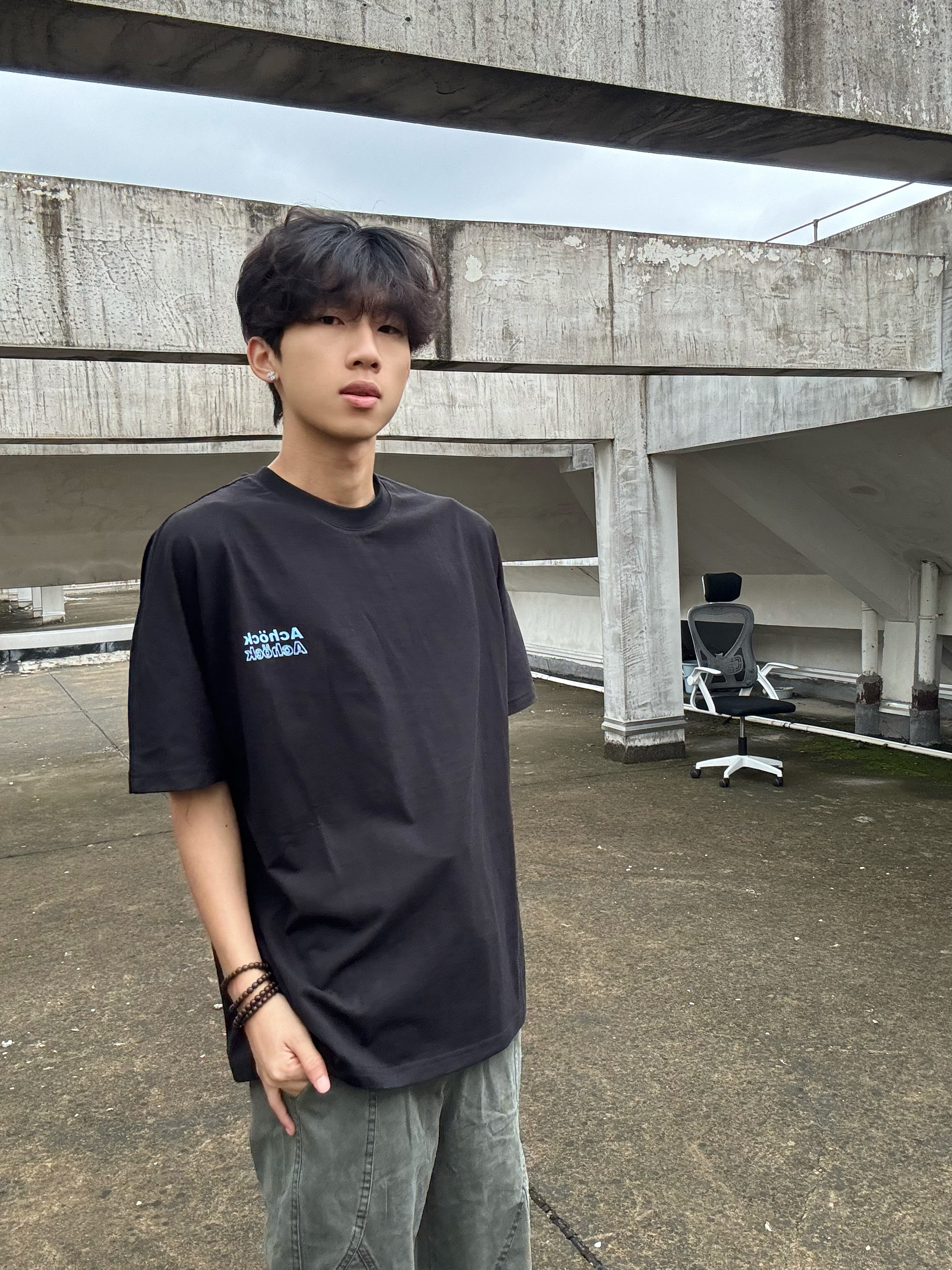 谁懂啊!这件黑T真的把美式街头感焊在身上了! 宽松落肩版型,上身慵懒又藏肉,后背的蓝色字母印花是点睛之笔,回头率直接拉满✨ 随便搭一条工装裤,站在天台随手一拍就是大片,夏天出街的安全感全靠它了!