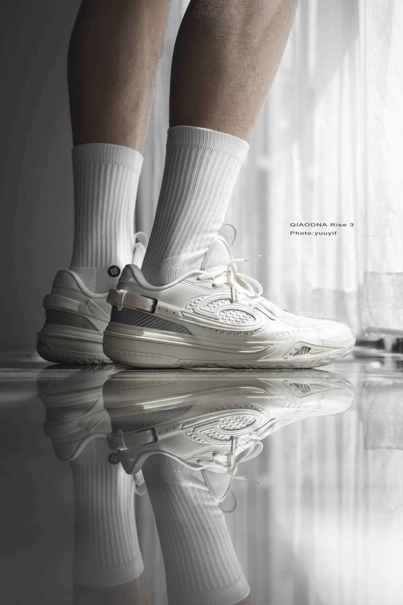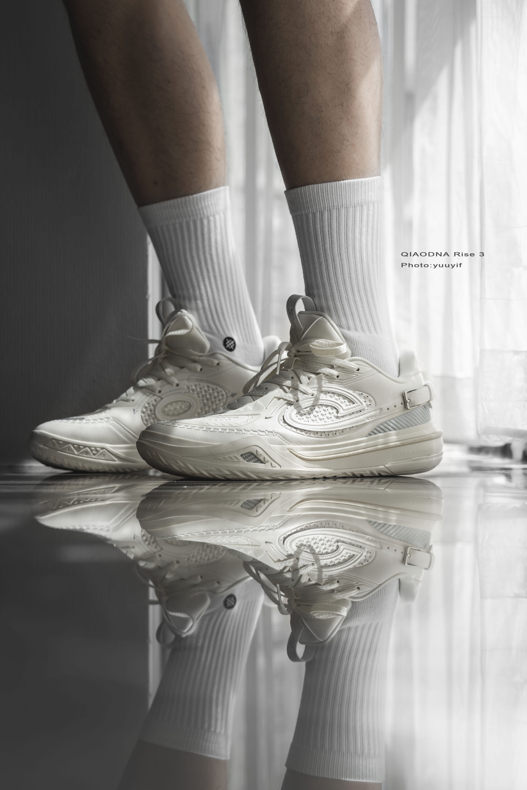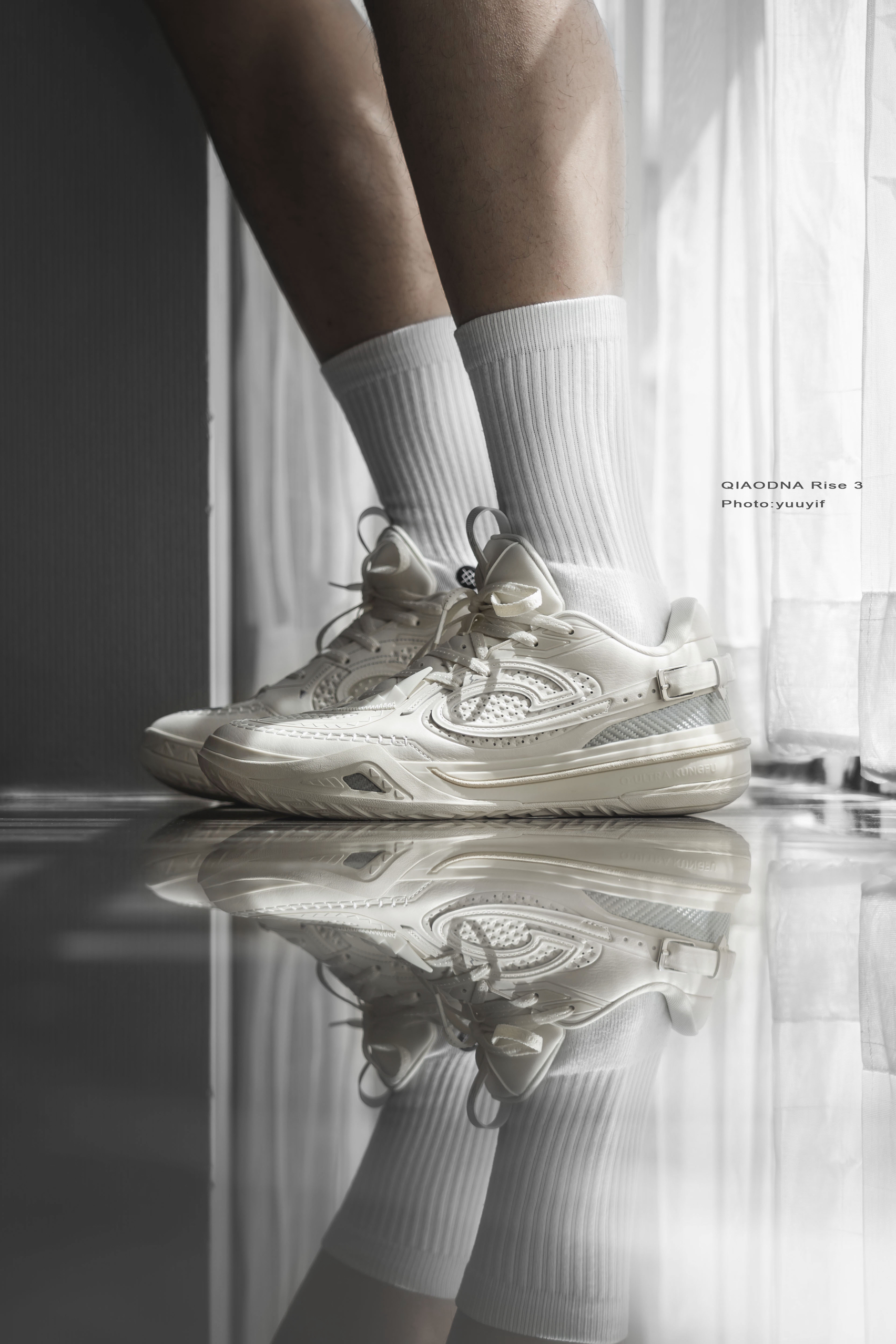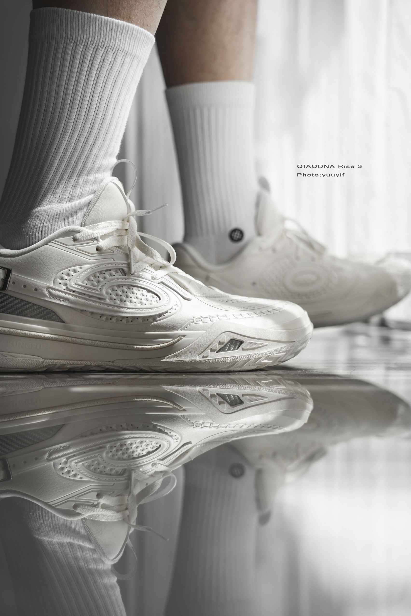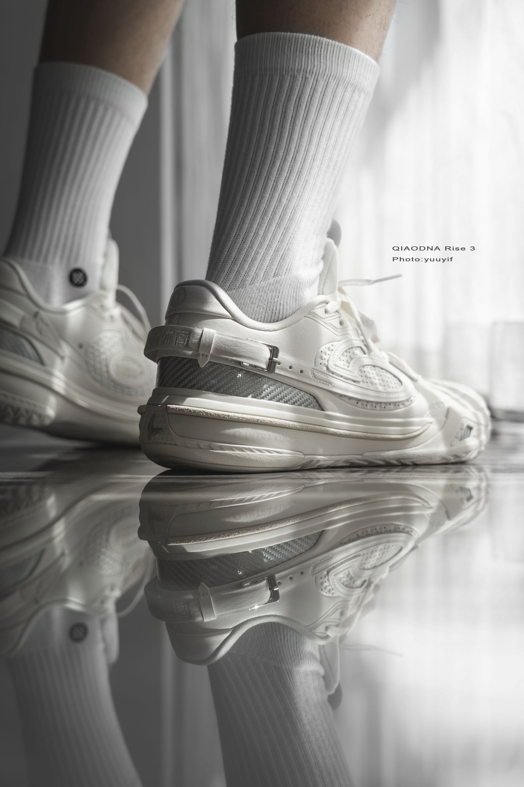锋刺Rise3首发几个配色中,这双白色的「德州牛仔」格外特别,也是我个人最喜欢的一个配色。 这个配色的灵感就是来自「德州牛仔」,之前也经常看到KJ凯尔登约翰逊场下穿着一身牛仔。它的鞋面用料和其他几个配色不同,皮革鞋面、搭配银色的三碳板。 上脚的包裹真的很不错,全掌超级巭中底,软弹适中,微宽脚的感受是鞋楦的宽容的也不错,可以适配更多脚型,尺码方面建议正常选择就好。