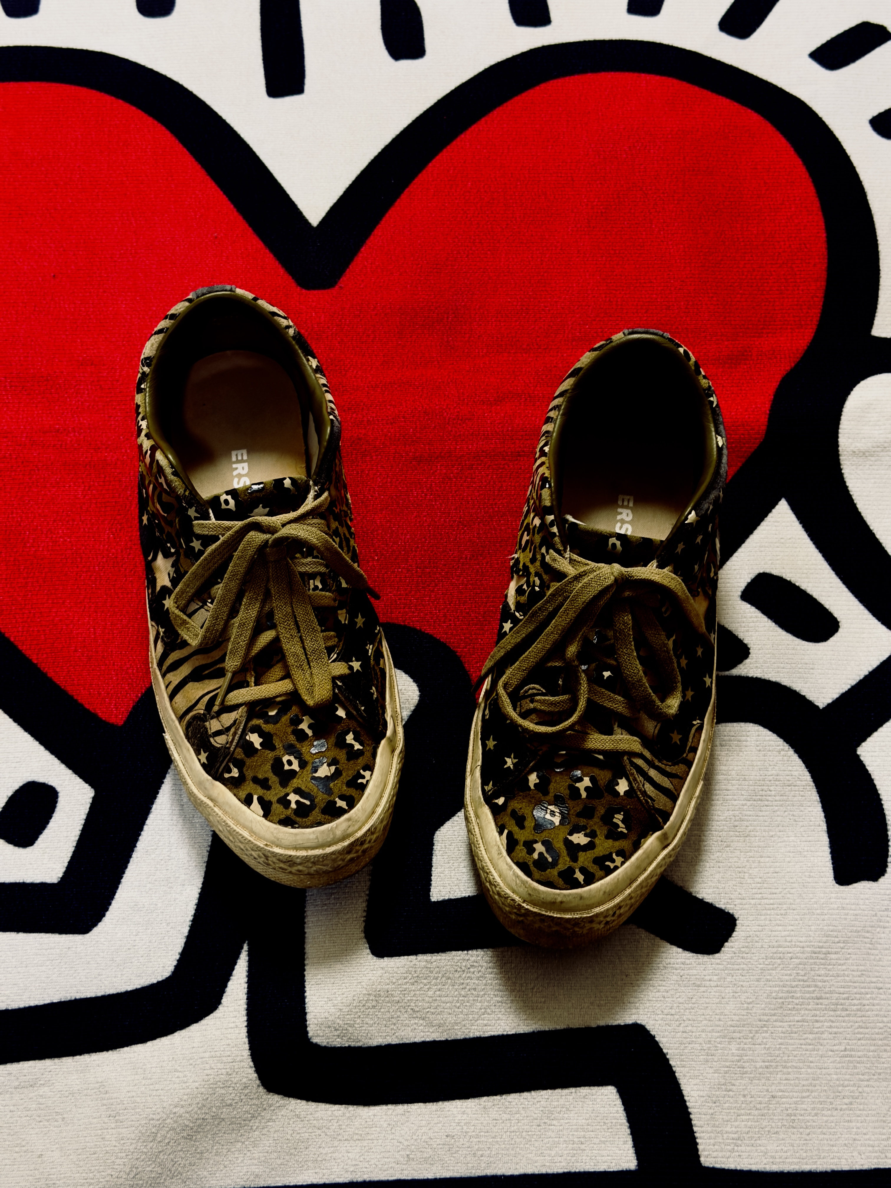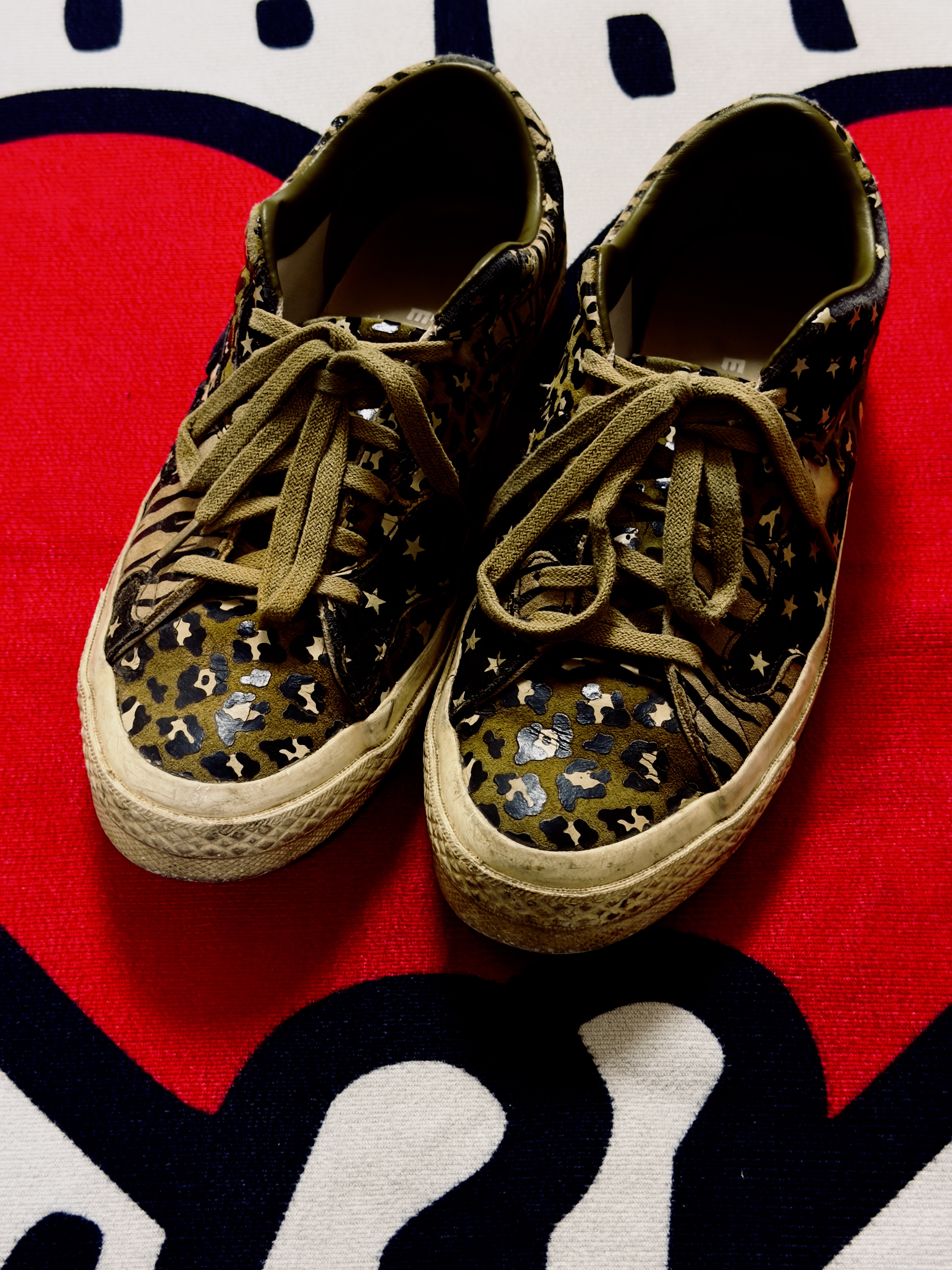 都说匡威是“越旧越好看”,这话在我这双迷彩One Star上被狠狠印证了! 刚入手时只觉得迷彩+斑马纹拼接很戳我,是衣柜里的百搭神器,搭工装、牛仔都超有那味儿。 穿了好几年,从干净的小板鞋变成了现在这双“战损版”,鞋边的泛黄、鞋头的磨损,都是我每次出门的专属痕迹。 它不再只是一双鞋,更像陪我走过好多路的老伙计,这种被时光养出来的质感,是新鞋永远复刻不出来的。 喜欢街头风、复古感的朋友,真的可以冲这...