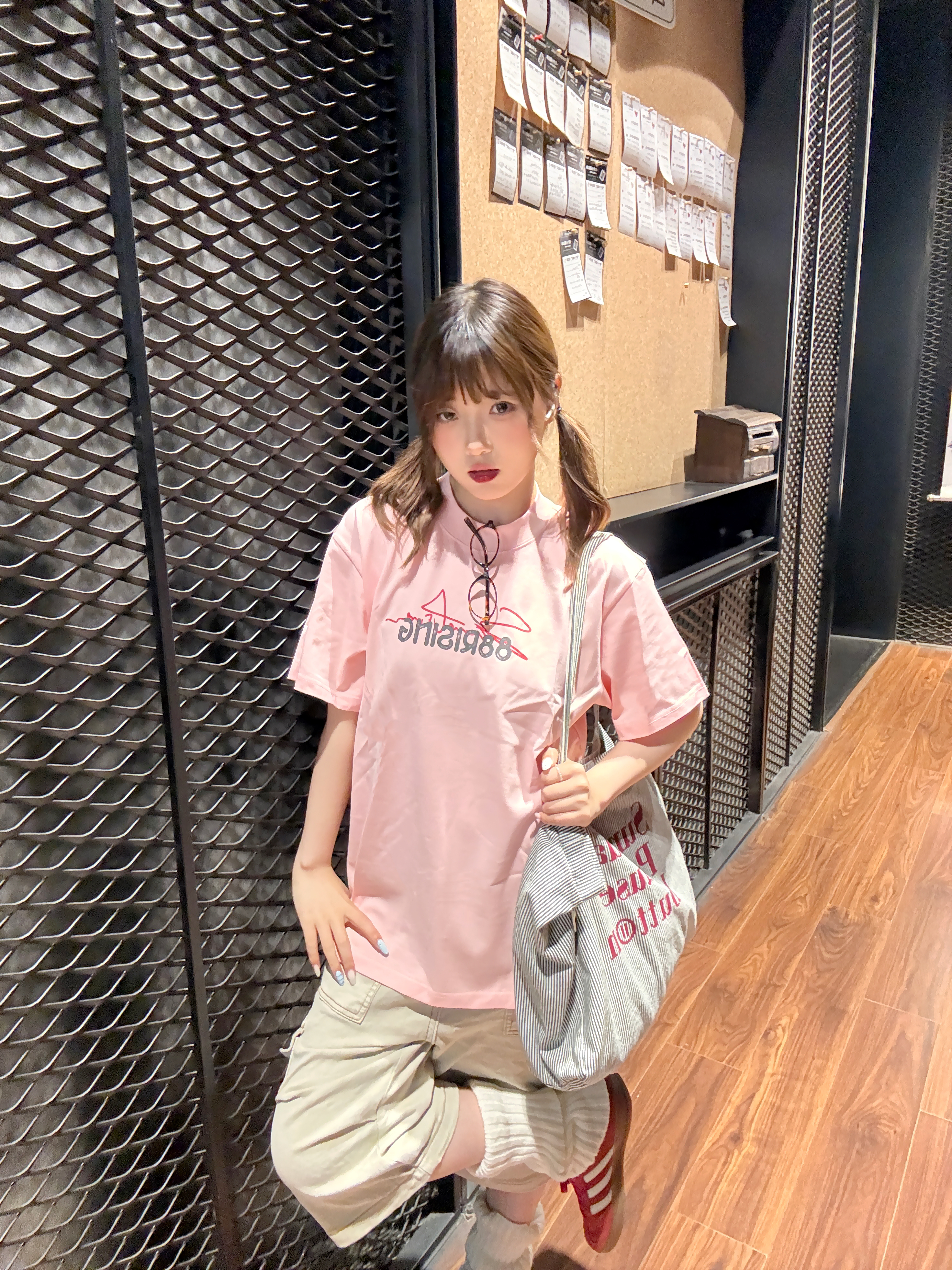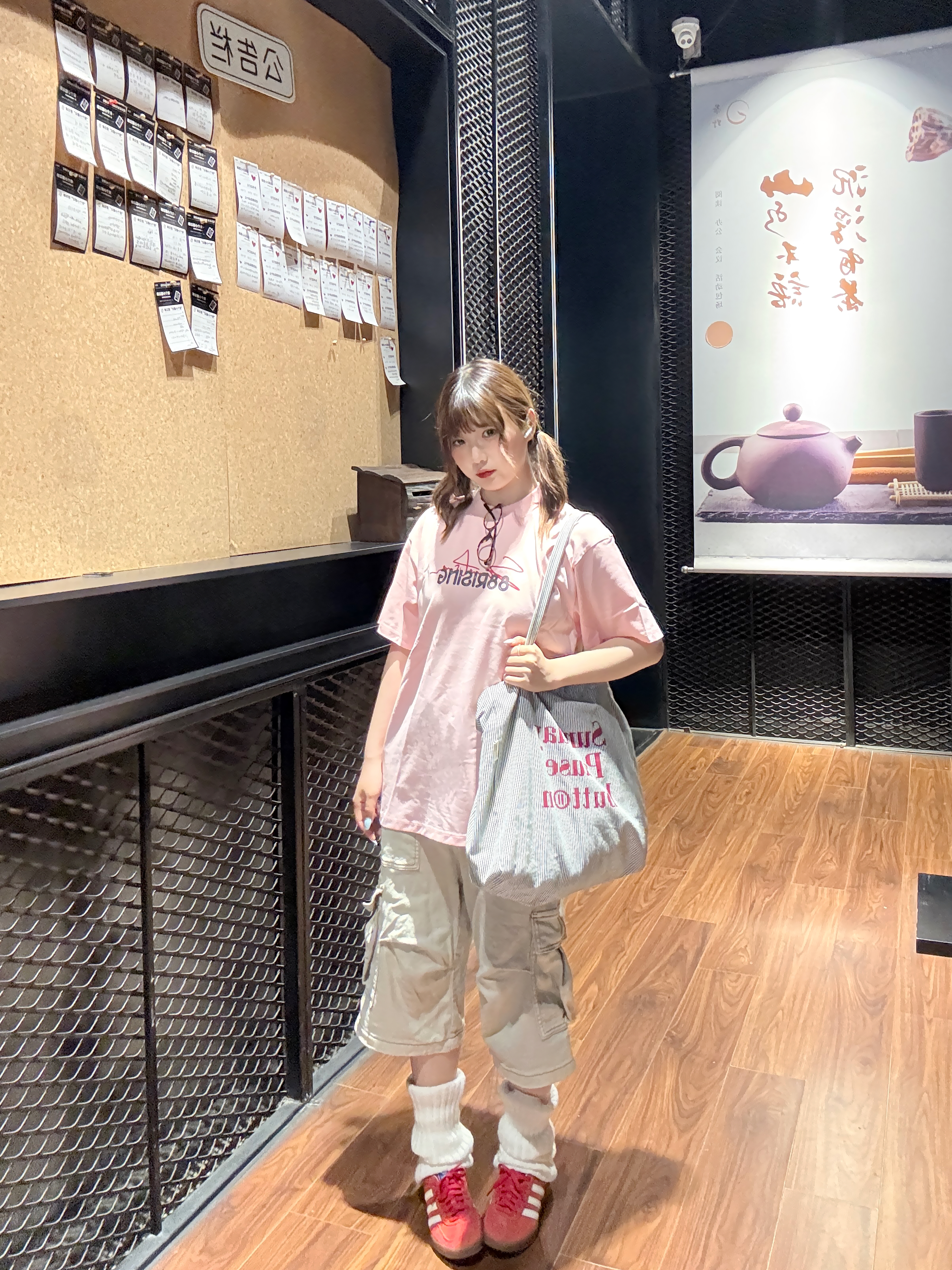 oversize粉T自带甜妹buff,搭配卡其工装裤和红色阿迪德训,又甜又酷,上班这样穿两个字好看!