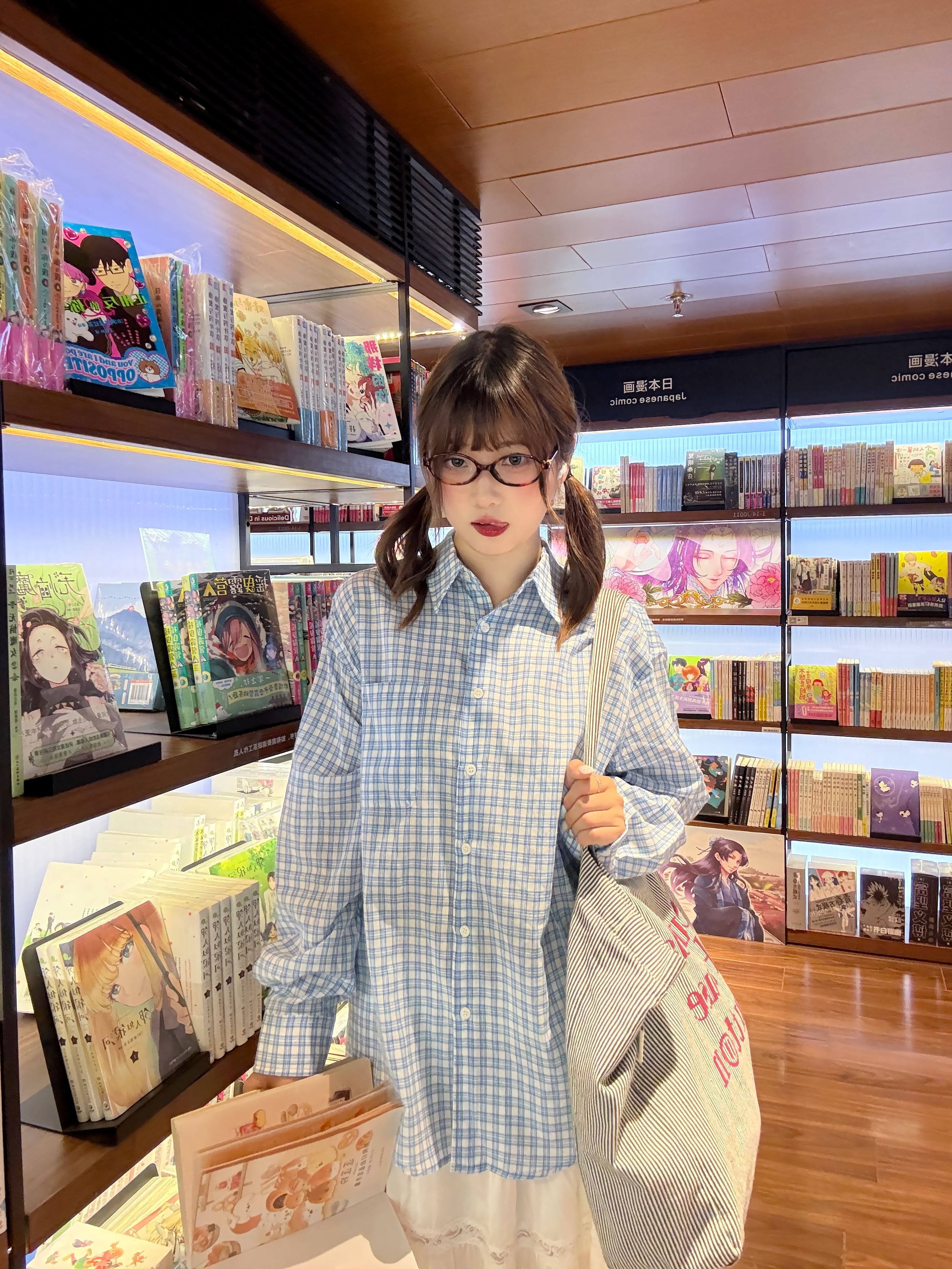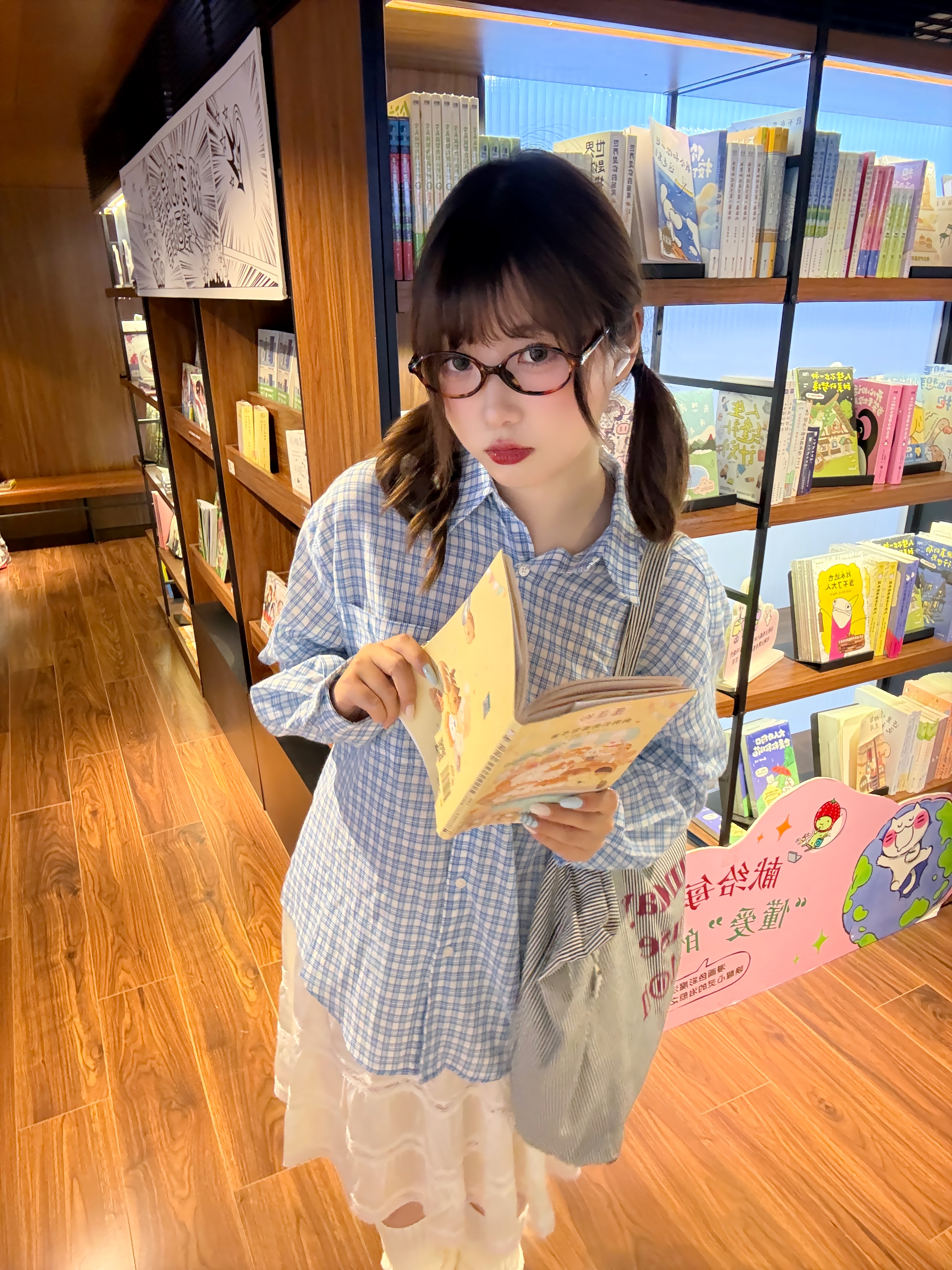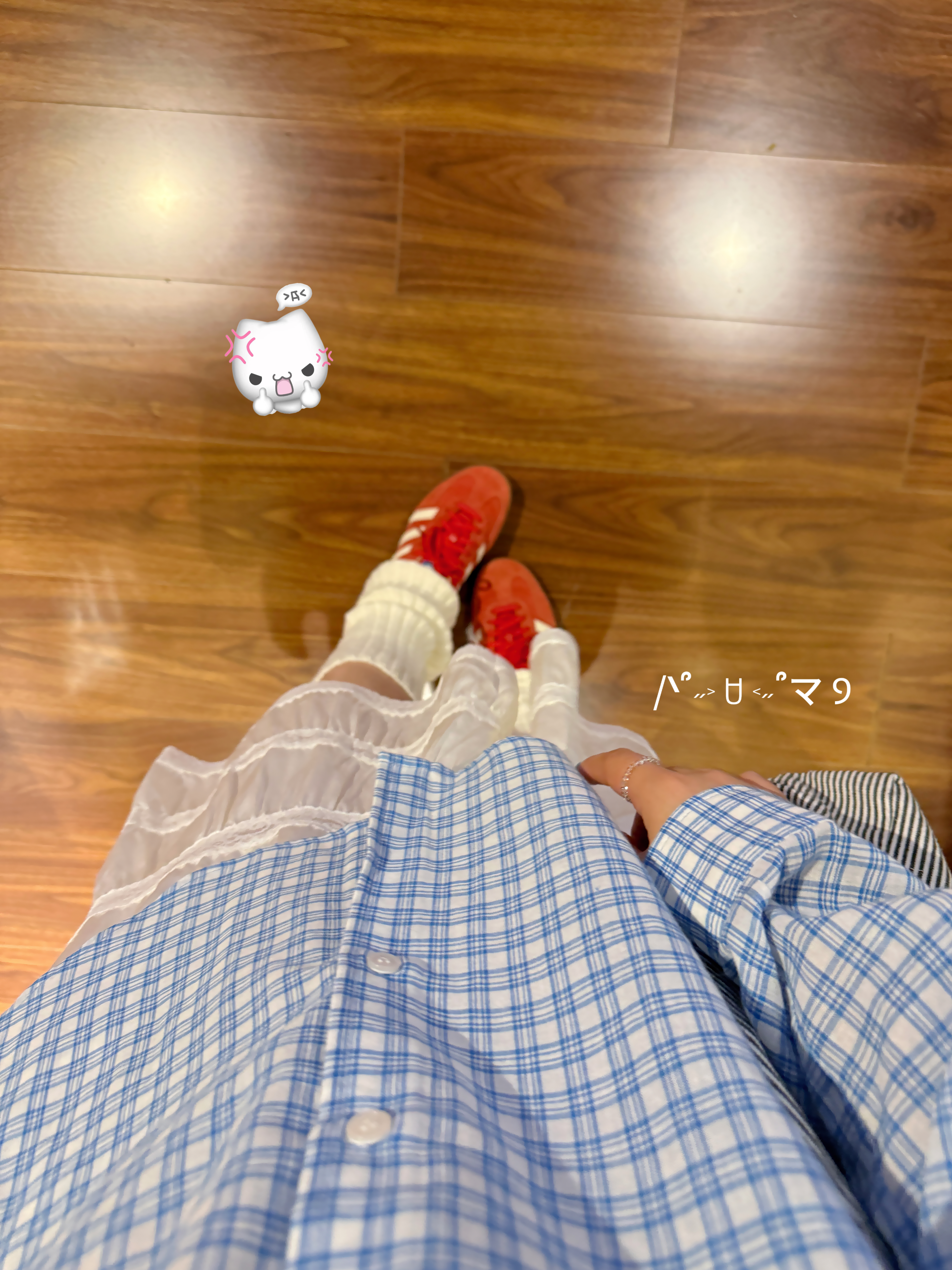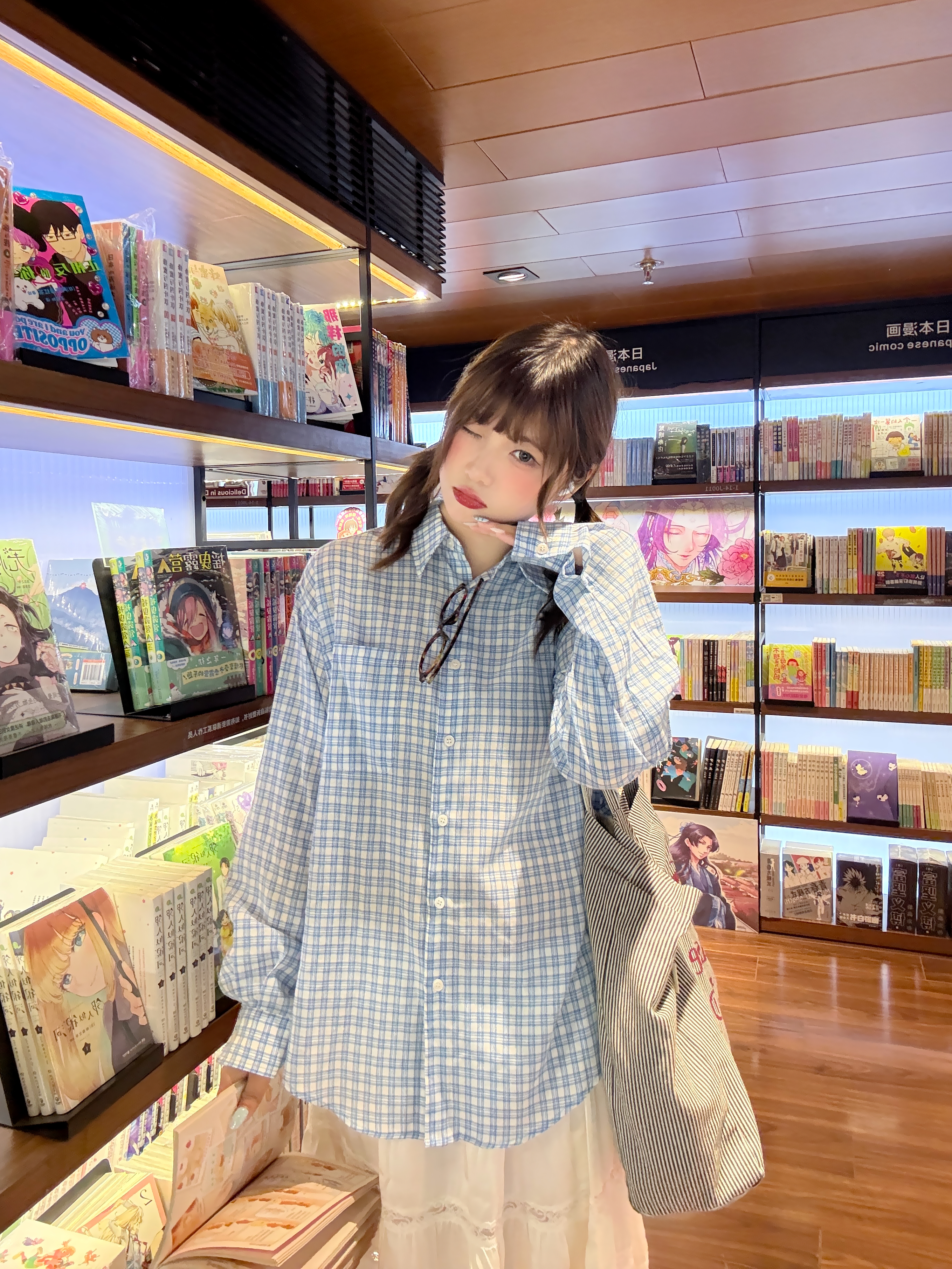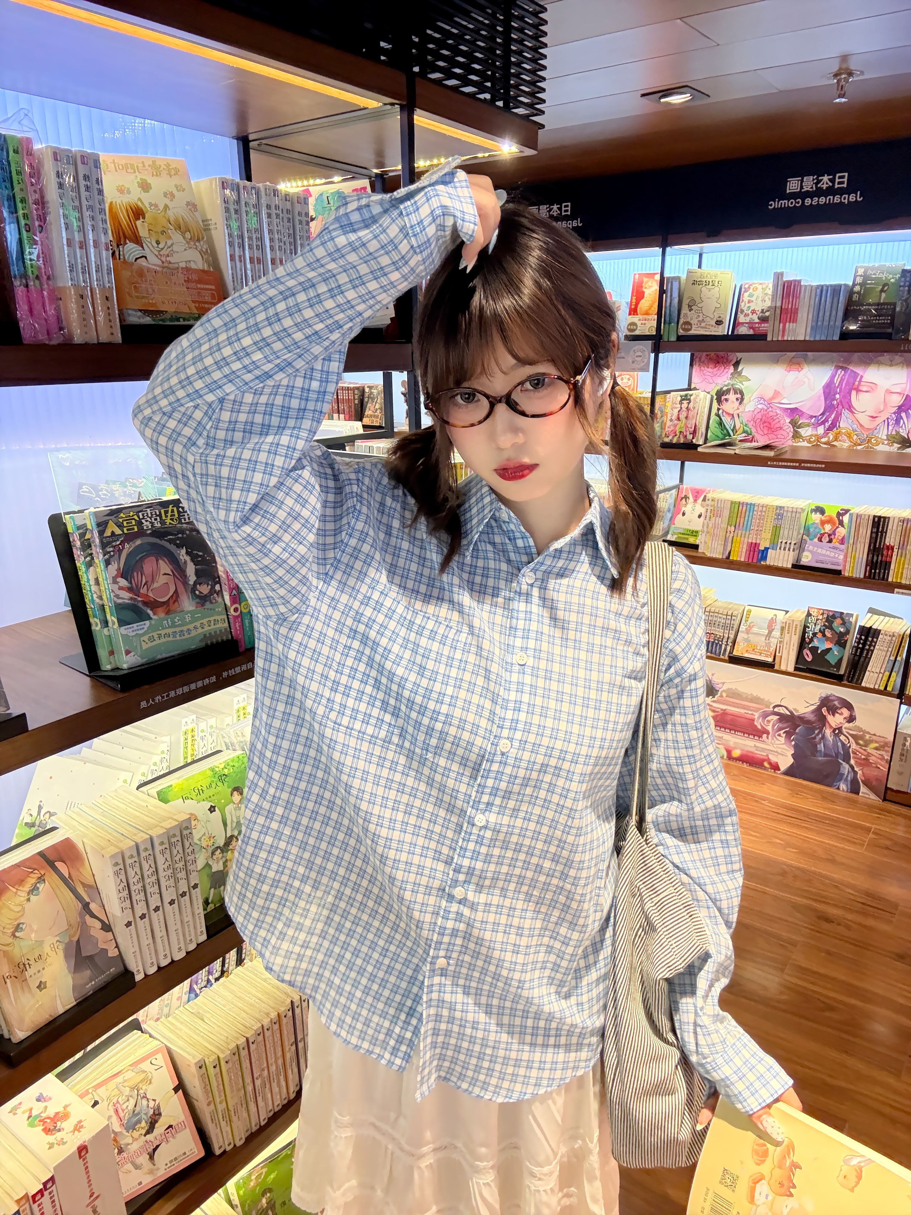 被这套温柔又随性的搭配戳中了! 清爽蓝格衬衫搭蕾丝白裙,红色阿迪德训和堆堆袜,高级的韩系ins感拉满,穿出干净温柔的气质,Off duty逛书店的快乐~