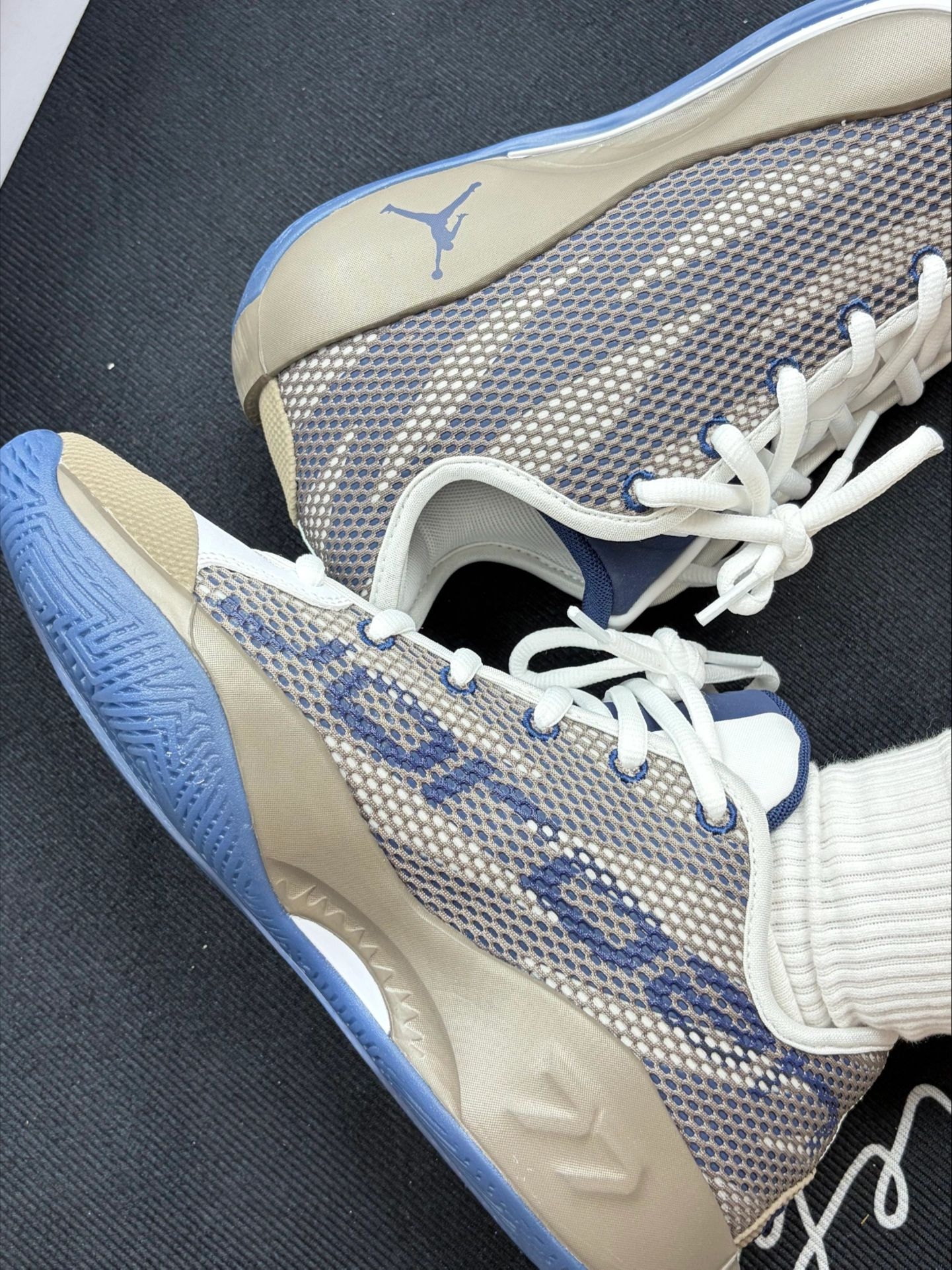 【【Jordan复古篮球鞋】越穿越顺手的实战日常两栖款🎨米白+卡其+藏蓝,低调耐看打球穿不突兀】,由用户 小黄鸭qaq 分享,来自江西。这是一篇来自识货社区的真实用户分享笔记。