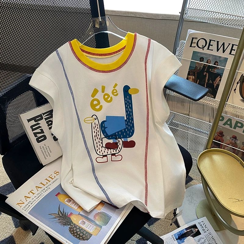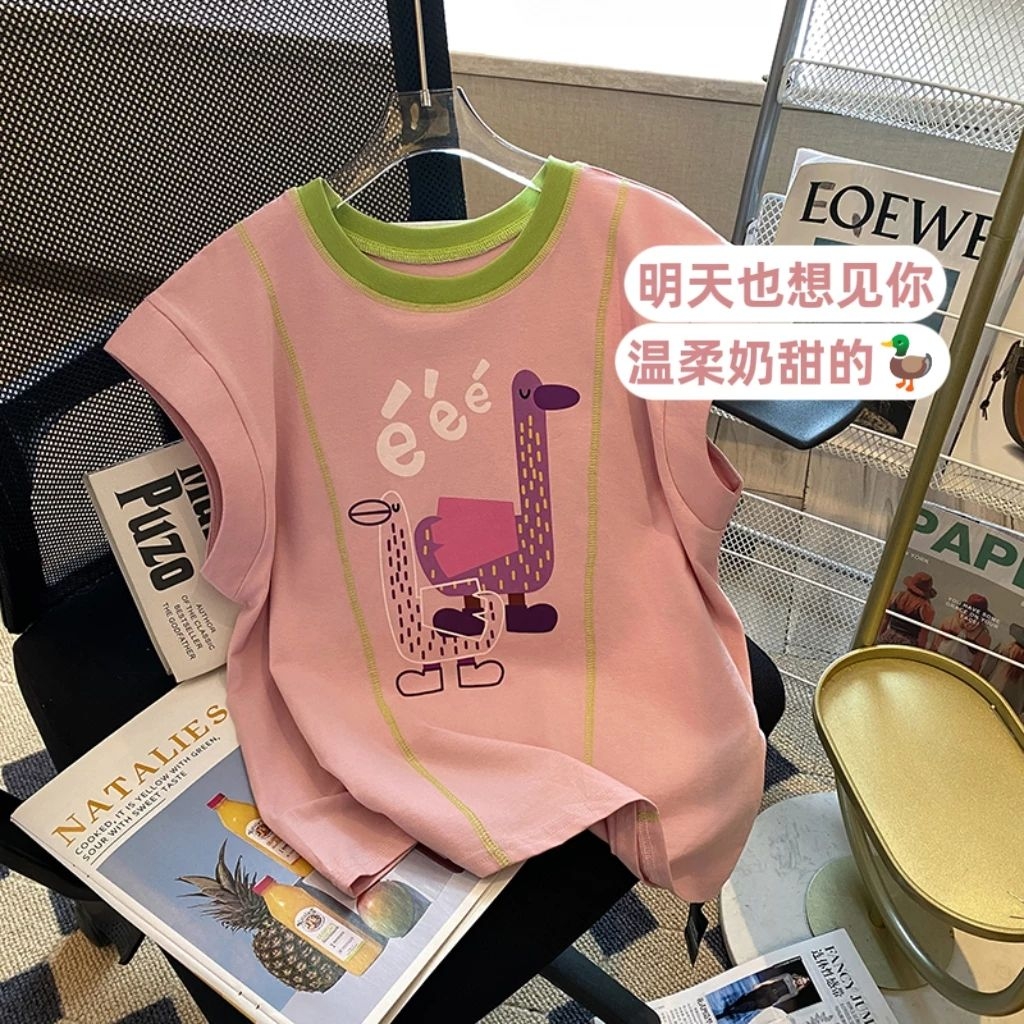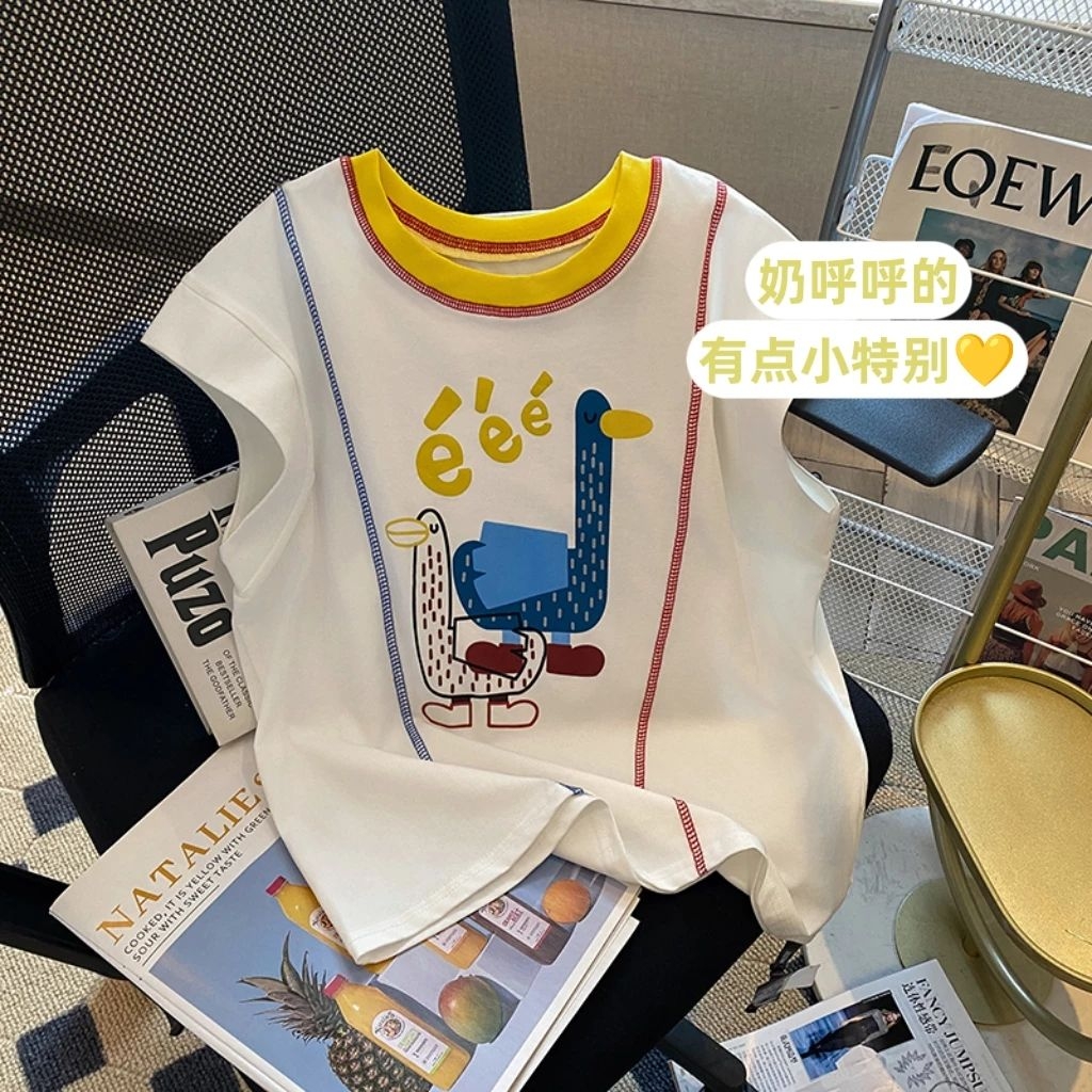 给我家娃挖到宝了!2026夏季新款的拼色短袖,粉绿撞色真的嫩到心坎里,还有软萌的小鸭子印花,穿上直接变身幼儿园最甜的崽🥰 面料是软fufu的纯棉,透气又吸汗,跑跳一整天也不闷汗!圆领设计不卡脖子,宽松版型胖宝宝也能轻松穿,日常搭短裤、裙子都超好看,闭眼冲不亏!