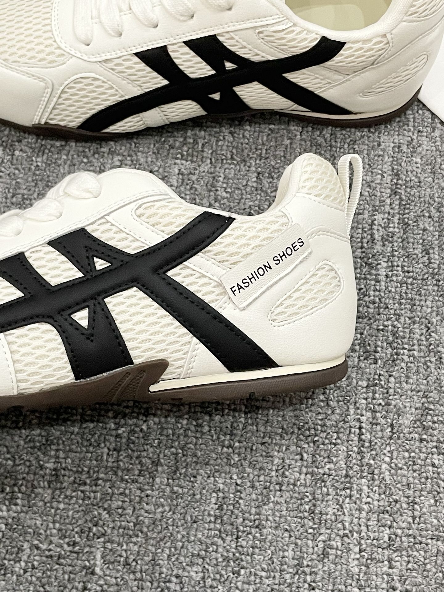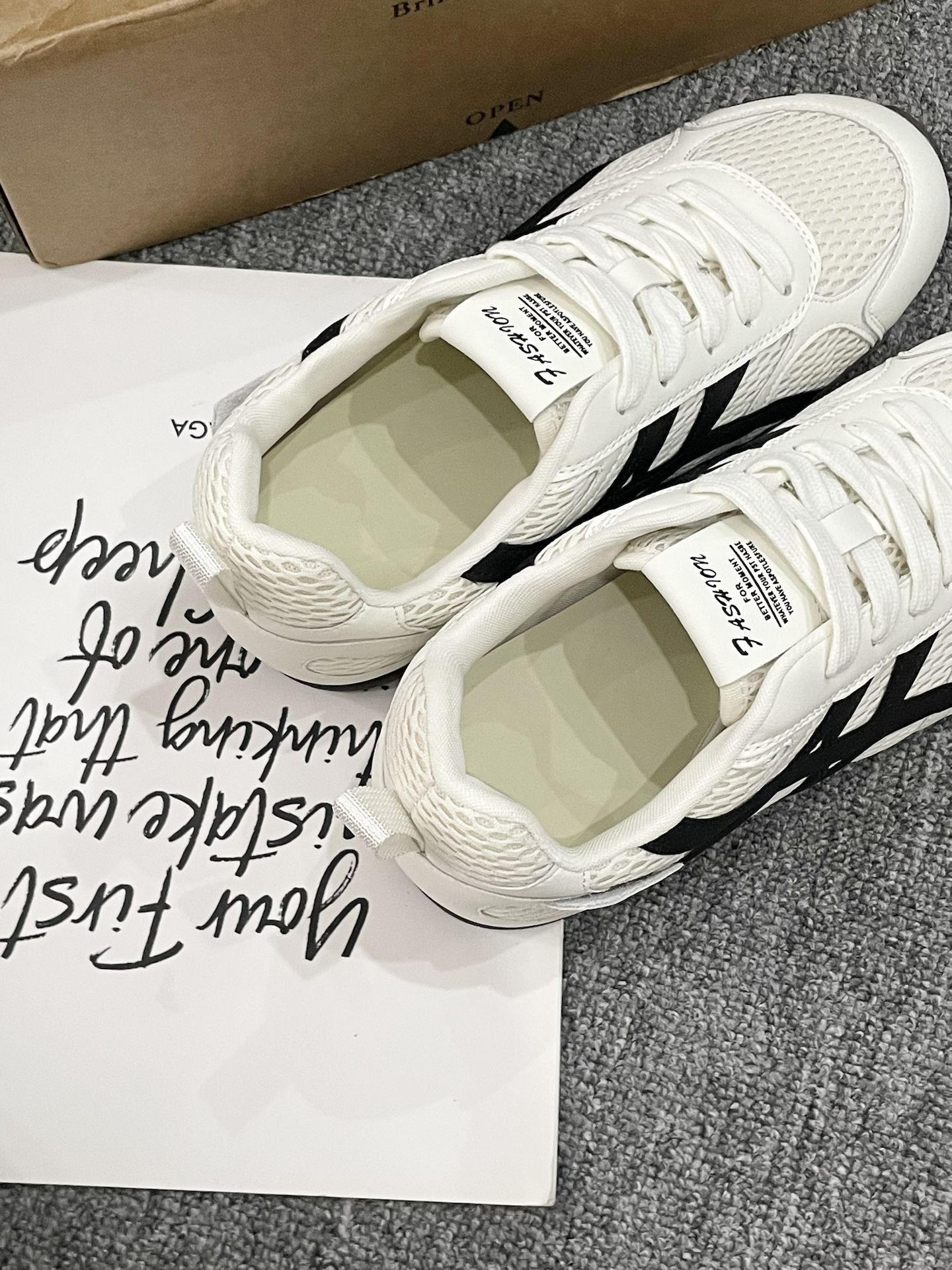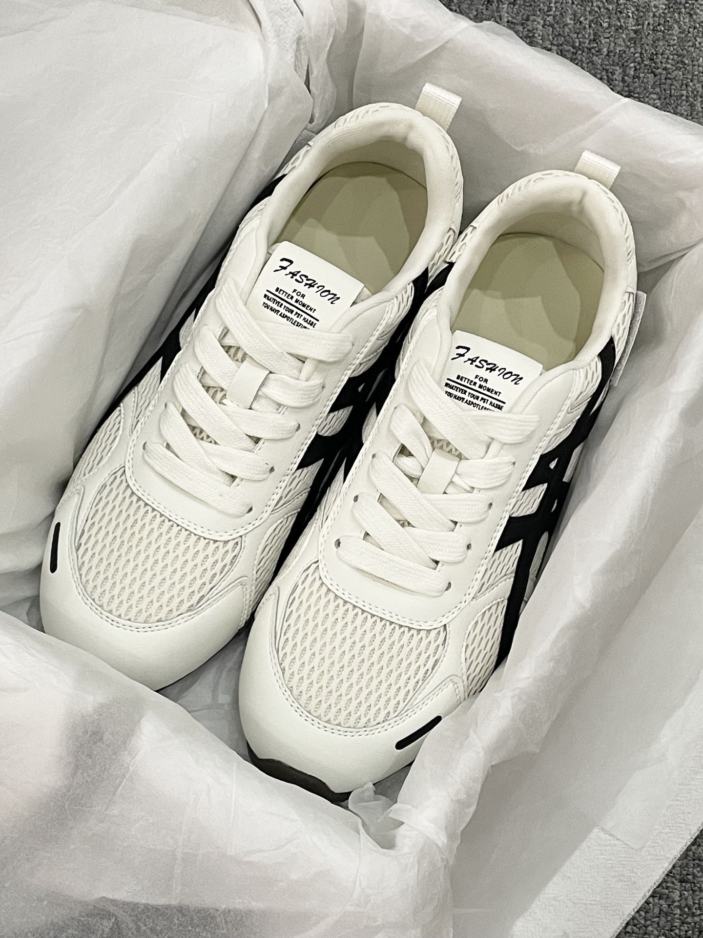 谁懂这双黑白阿甘鞋的颜值😭 简约米白拼接黑色条纹,复古氛围感直接拉满 鞋面是透气网面材质,夏天穿完全不闷脚,清爽又轻便 软底设计走路巨舒服,暴走逛街、上课通勤毫无压力 版型超修饰脚型,显瘦不臃肿 随便搭配牛仔裤、短裙、运动裤都很绝 百元平价小众款,百搭耐看还不容易撞款 日常懒人穿搭直接锁死,一年四季都能穿~