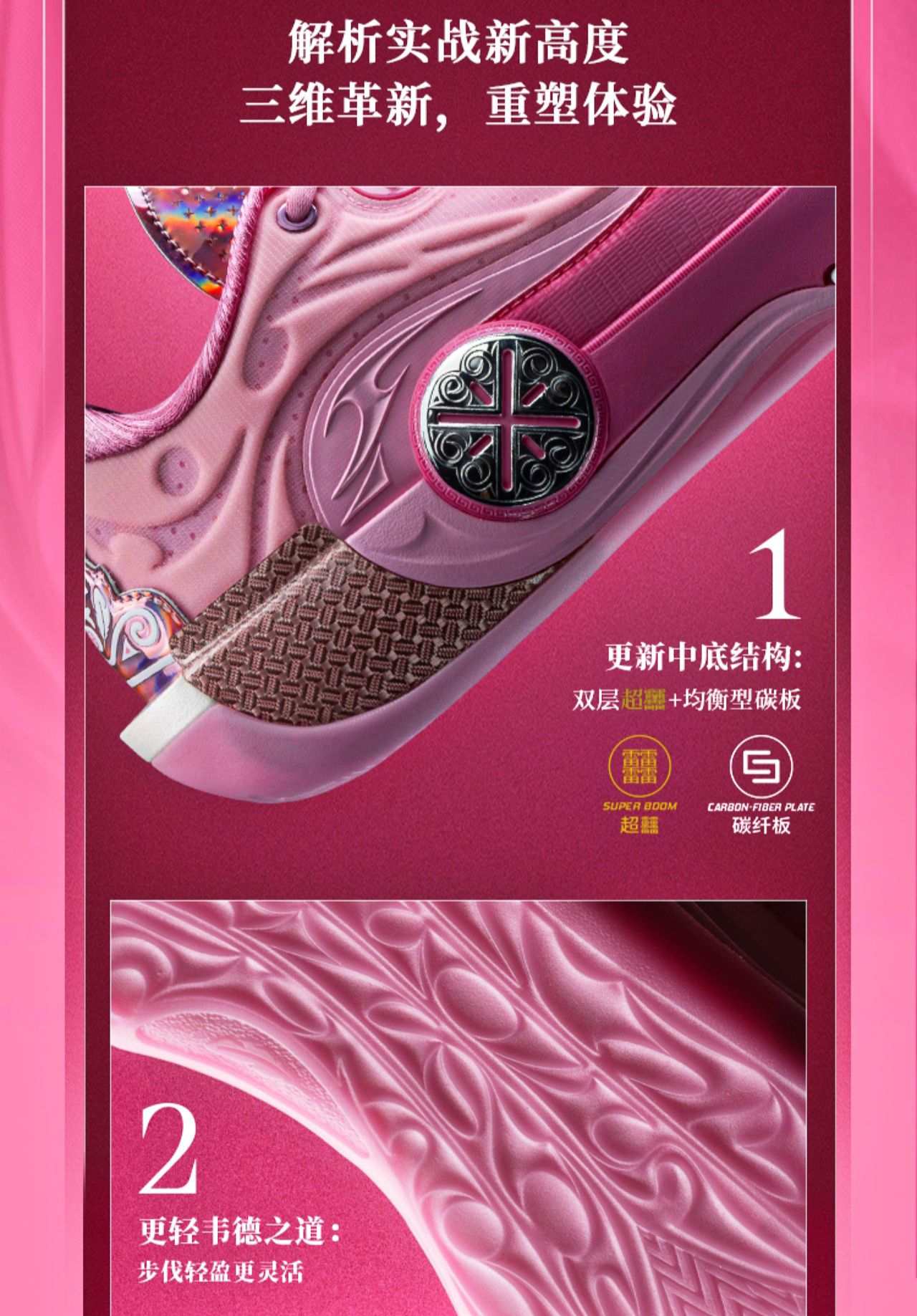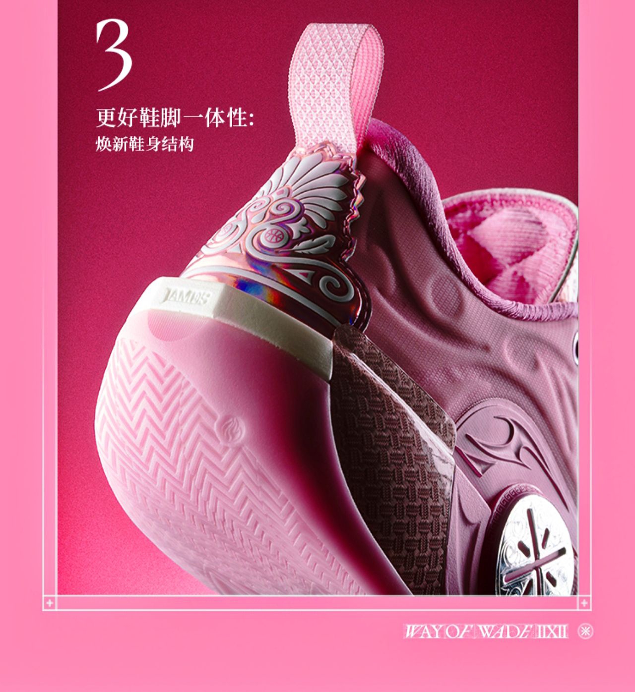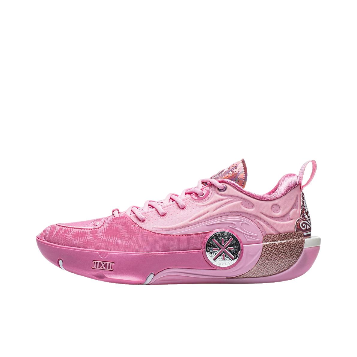 起猛了,看到这款配色的一瞬间还以为是韦德之道12ASG配色的“亲友限定”版本!那么这款“慈爱”配色其实细节也是做得很到位的,整体以粉色为主色调,还有特殊鞋面➕碳布Tpu➕电镀后跟设计!毫不夸张的说,它是比前面几款低帮配色更有质感的,而且低帮造型设计也更灵活,反正我是狠狠期待住了