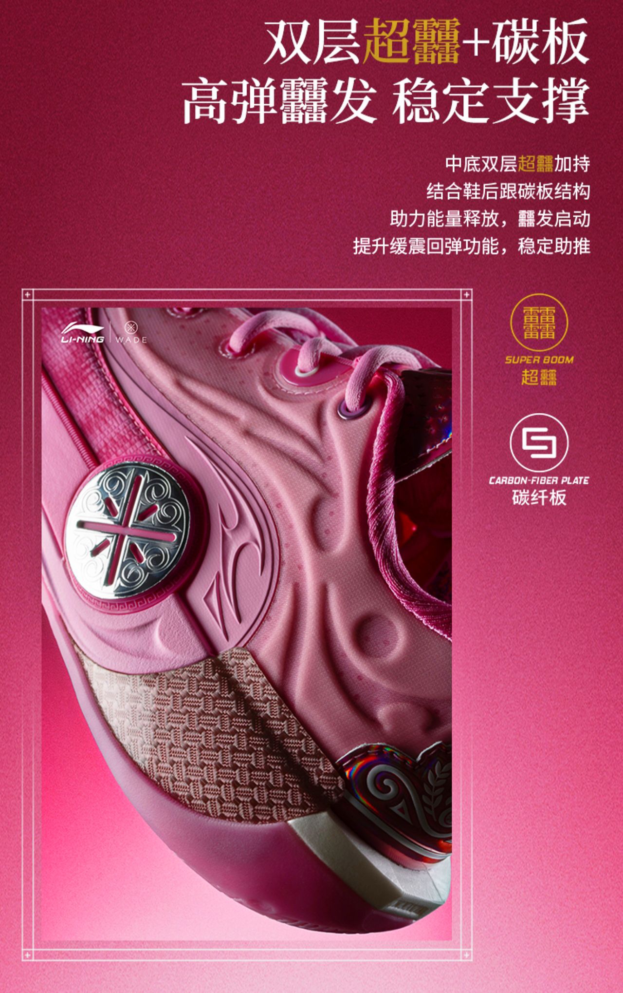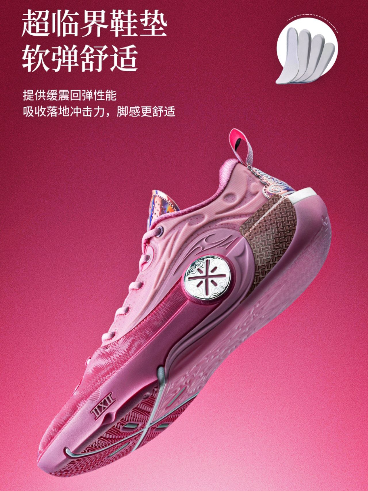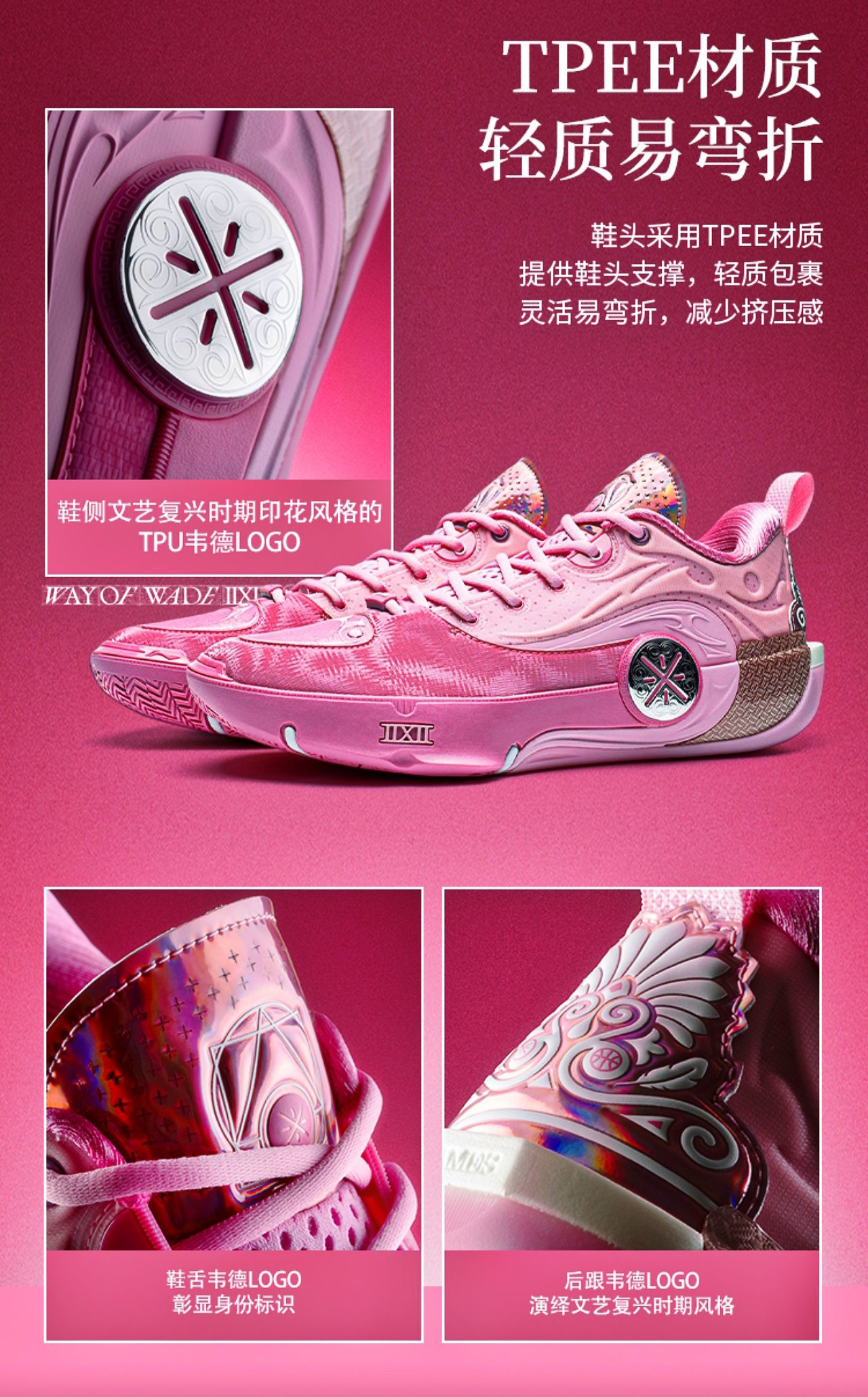 起猛了,看到这款配色的一瞬间还以为是韦德之道12ASG配色的“亲友限定”版本!那么这款“慈爱”配色其实细节也是做得很到位的,整体以粉色为主色调,还有特殊鞋面➕碳布Tpu➕电镀后跟设计!毫不夸张的说,它是比前面几款低帮配色更有质感的,而且低帮造型设计也更灵活,反正我是狠狠期待住了
