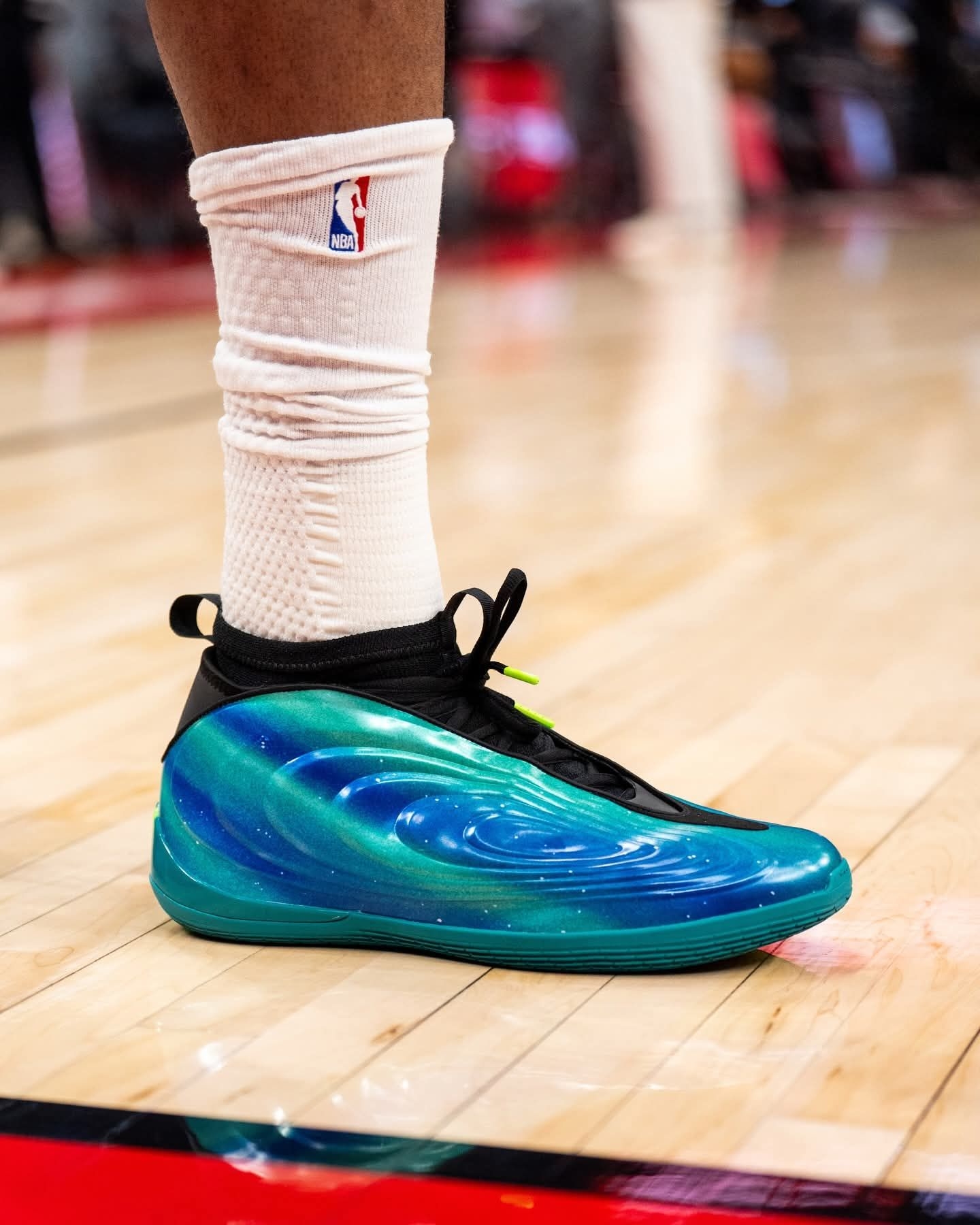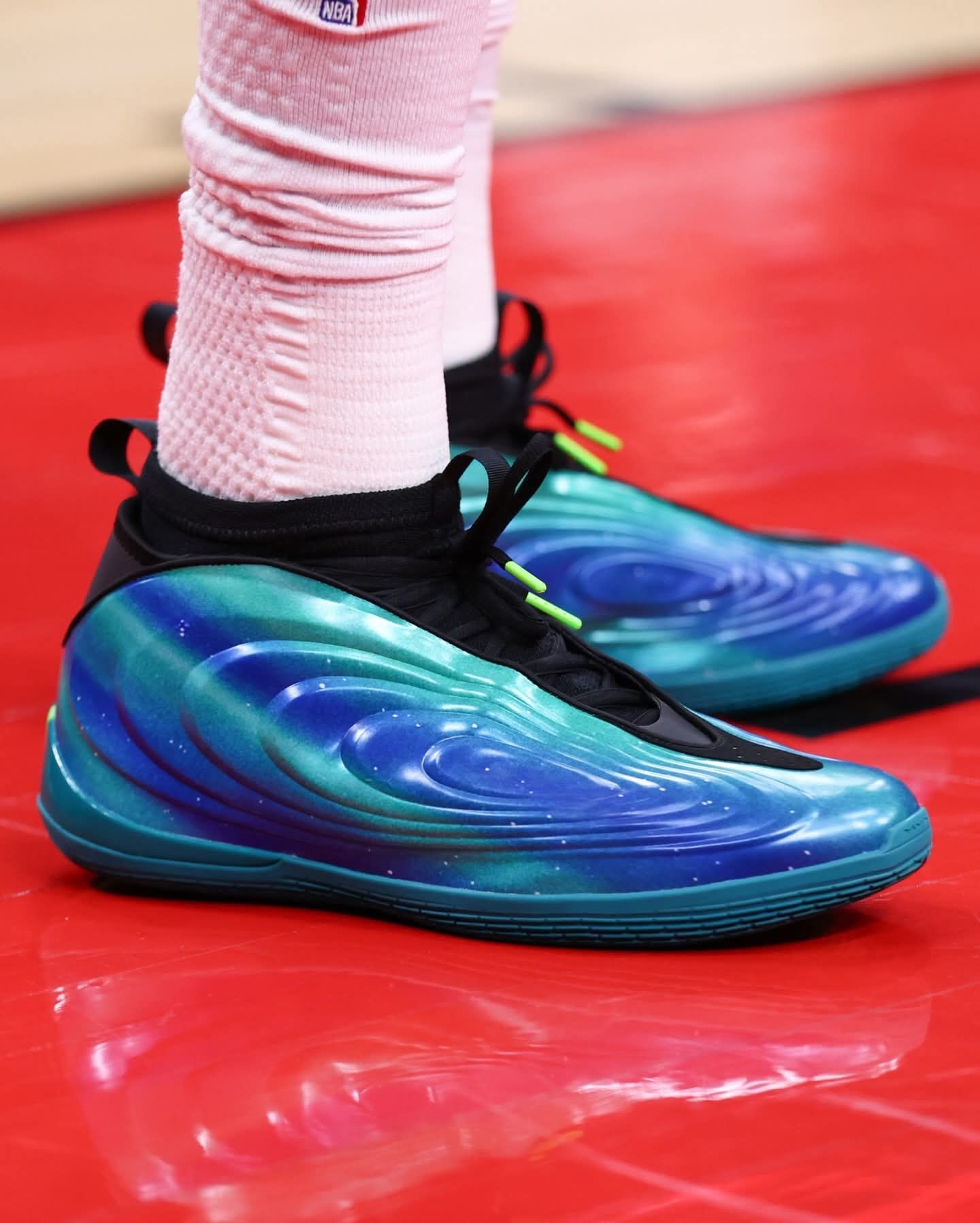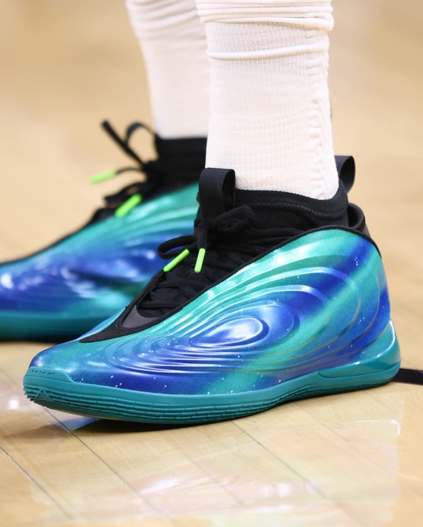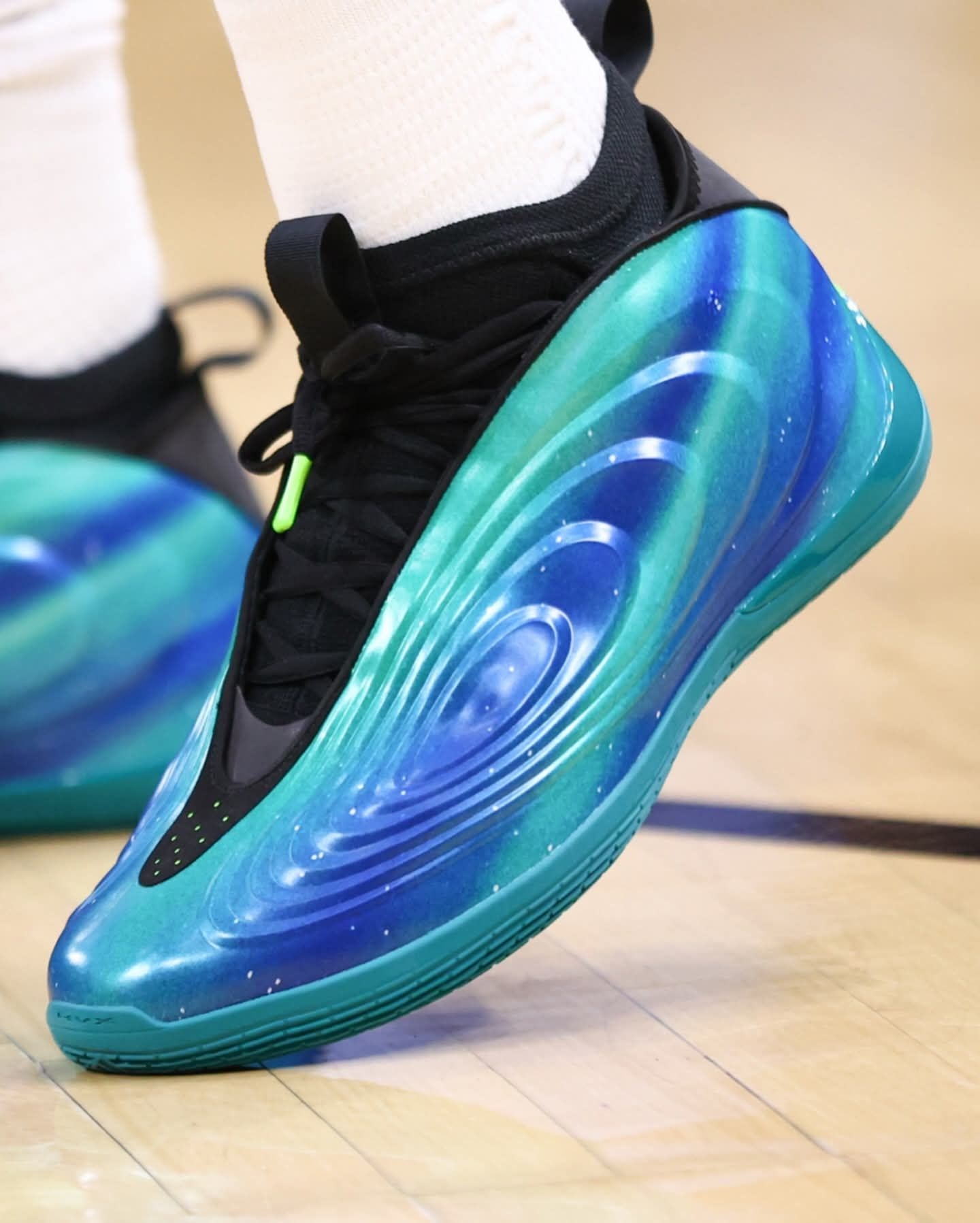 哈登Vol.10「Northern Lights」赛场首秀实测来咯! ✅ 外观:极光渐变鞋面+流线型TPU外壳,颜值直接拉满,吸睛度100% ✅ 性能:Boost中底带来澎湃脚感,缓震回弹在线,适配哈登的后撤步打法;橡胶外底抓地力拉满,变向不打滑 ✅ 细节:鞋身波浪纹路呼应极光流动感,上脚效果巨帅,实战+出街都能打 骑士新援的新战靴,这波配色你给几分?
