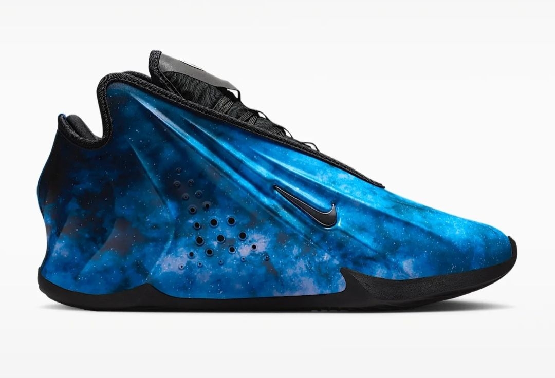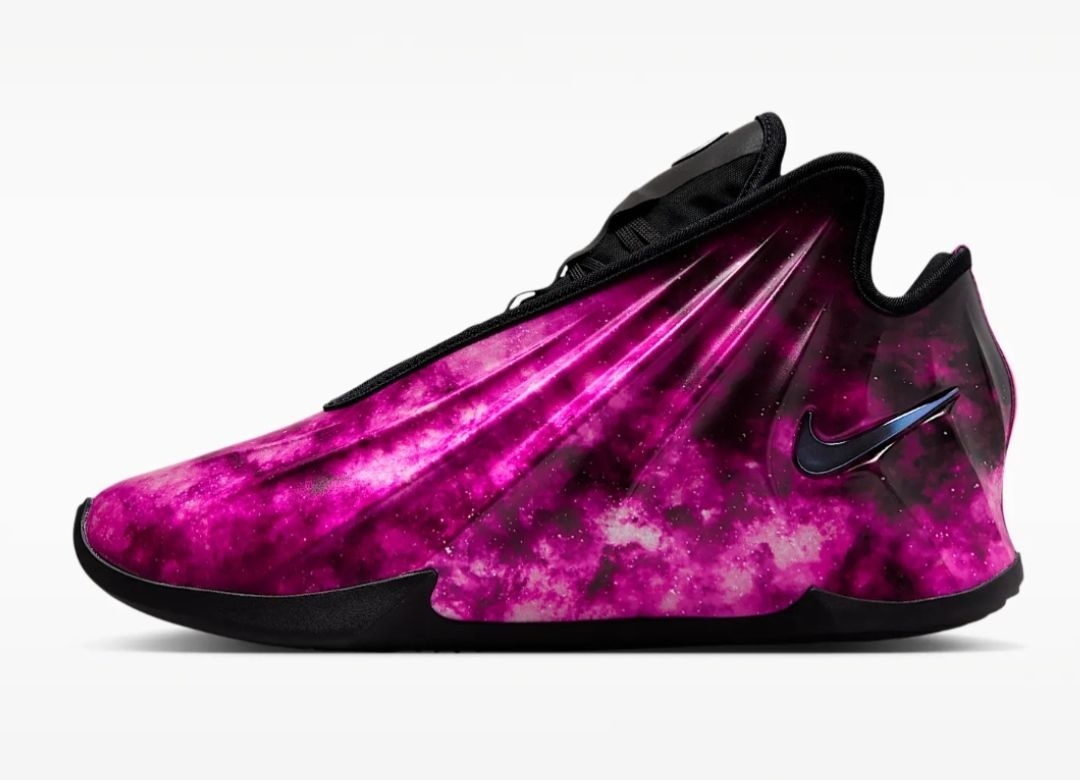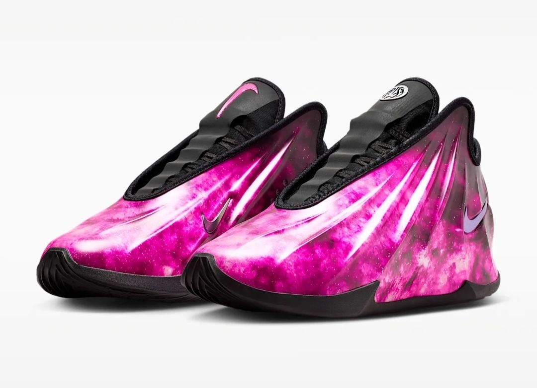 当赛场上的灯光亮起,这两双Nike球鞋便如同被点亮的宇宙,将星云的浪漫与赛场的热血融为一体,成为球鞋设计中关于“星空”的又一次惊艳演绎。 它们以浩瀚银河为灵感,在一体化成型的鞋面上铺陈出梦幻渐变:一双是玫粉色星云,如猎户座玫瑰星云般炽热浓烈,紫调晕染间藏着细碎星光,仿佛把宇宙最绚烂的烟火定格在鞋身;另一双则是冰蓝色星云,复刻了深海般静谧的宇宙蓝调,深浅交织的纹路如同星尘在光年外流动,自带清冷而...