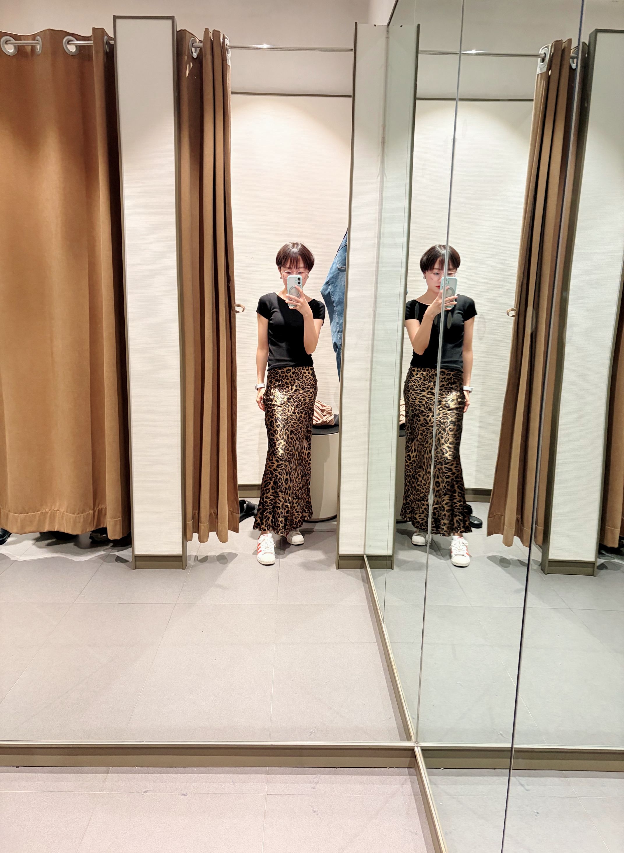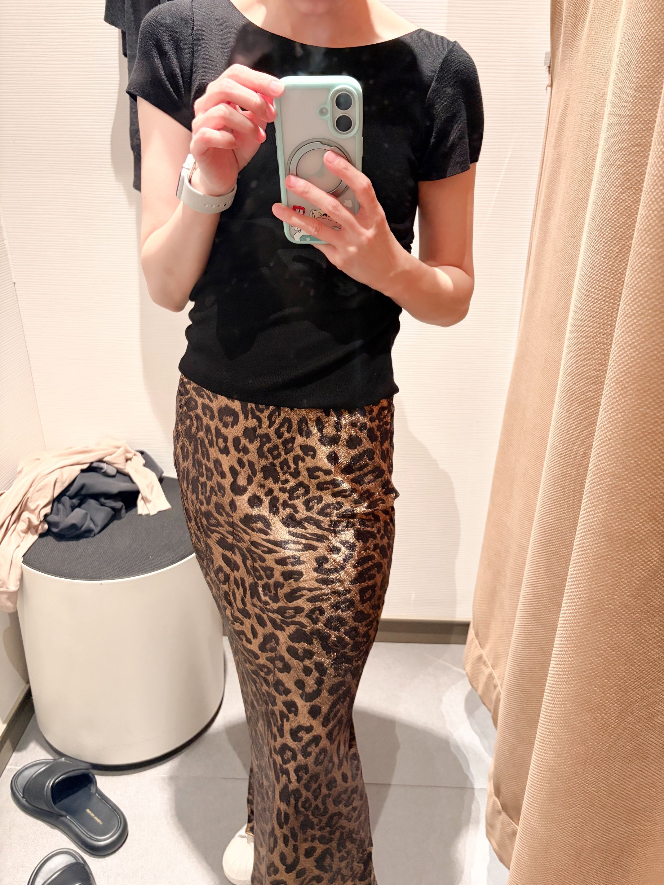 这件亮面豹纹半裙真的太懂小个子了! 高腰直筒的版型刚好卡在腰线,搭配基础款黑色修身短袖,直接把三七分比例焊在身上,自带复古又拽的氛围感。 低饱和的棕调豹纹一点都不浮夸,亮面材质在光下还带细闪,配小白鞋是松弛日常风,换个小高跟就是妥妥的约会战袍,梨形身材也能轻松驾驭!