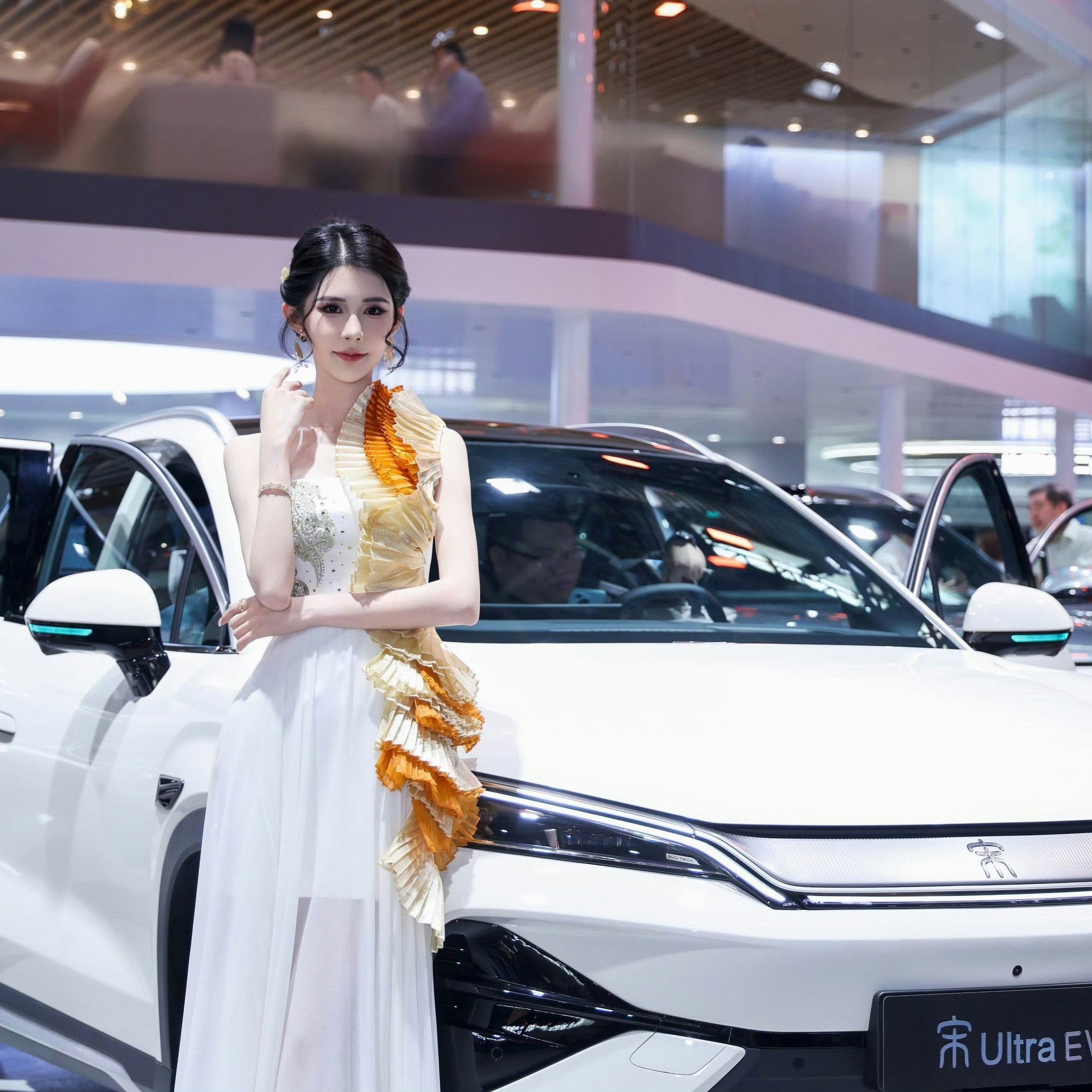 以前来车展只顾着看车,今天才发现比亚迪的模特服装居然这么有戏!王朝展台那边,模特裙子上的压褶像山峦起伏,把山水画穿在身上,大气又高级;海洋展台更绝,裙摆层层叠叠像海浪在跳舞,珊瑚刺绣细节拉满,灵动得不行~ 腾势完全是另一种 vibe,优雅得像刚从艺术沙龙走出来;方程豹的机能风又酷又飒,跟车的硬朗感完美呼应。逛完突然懂了什么叫"衣品见车品",服装和车的审美真的是通着气的! 现场还围观了闪充实测,...