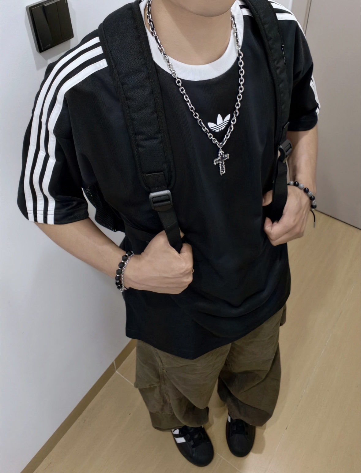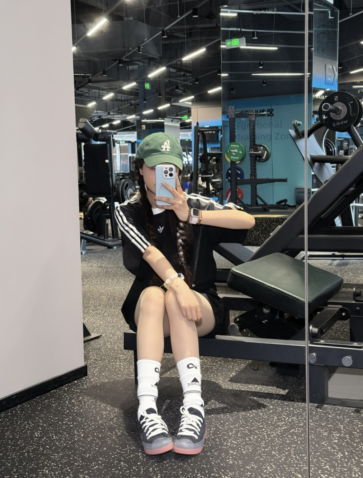 谁懂啊!这套adidas运动套装直接焊死在我的健身衣柜里! 经典的黑底白三叶草T恤+侧边白杠,简约又自带复古运动感, 同系列的刺绣小短裤也超有细节,彩色小图案又甜又酷, 搭配绿帽子+双麻花辫,美式校园辣妹那味儿直接拿捏了! 宽松版型巨藏肉,做力量训练也完全不束缚, 黑白配色+帆布鞋,日常出门穿也毫无违和感, 懒人直接一套套上就出门,舒适和颜值双在线! #健身房穿搭 #adidas三叶草 #运动...