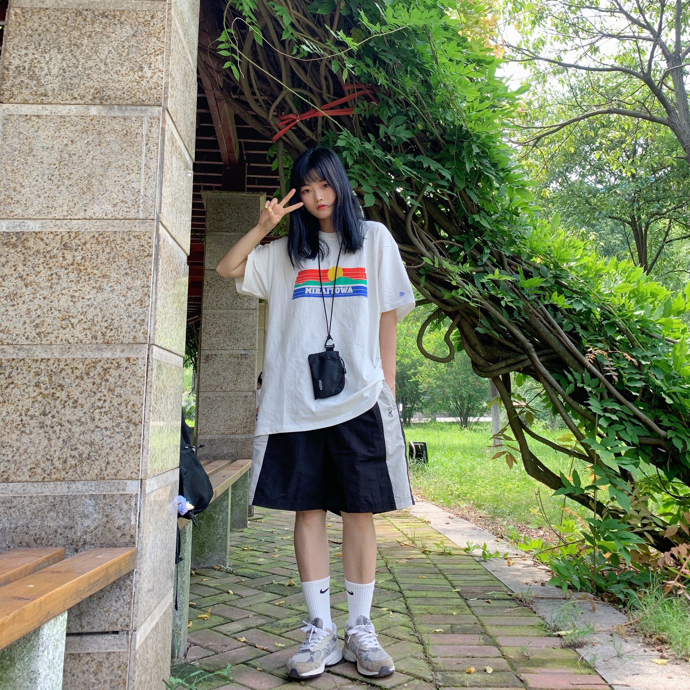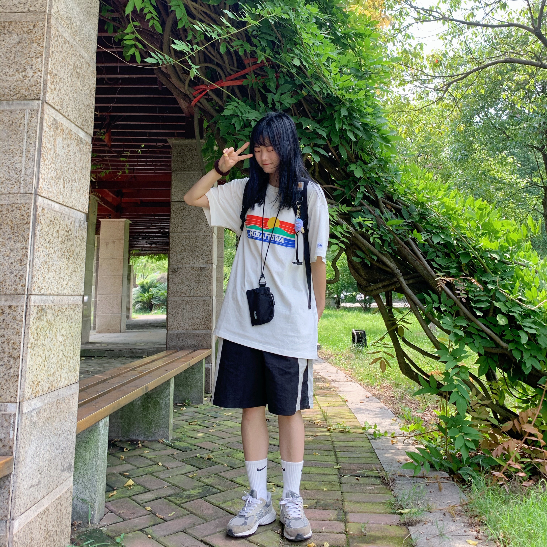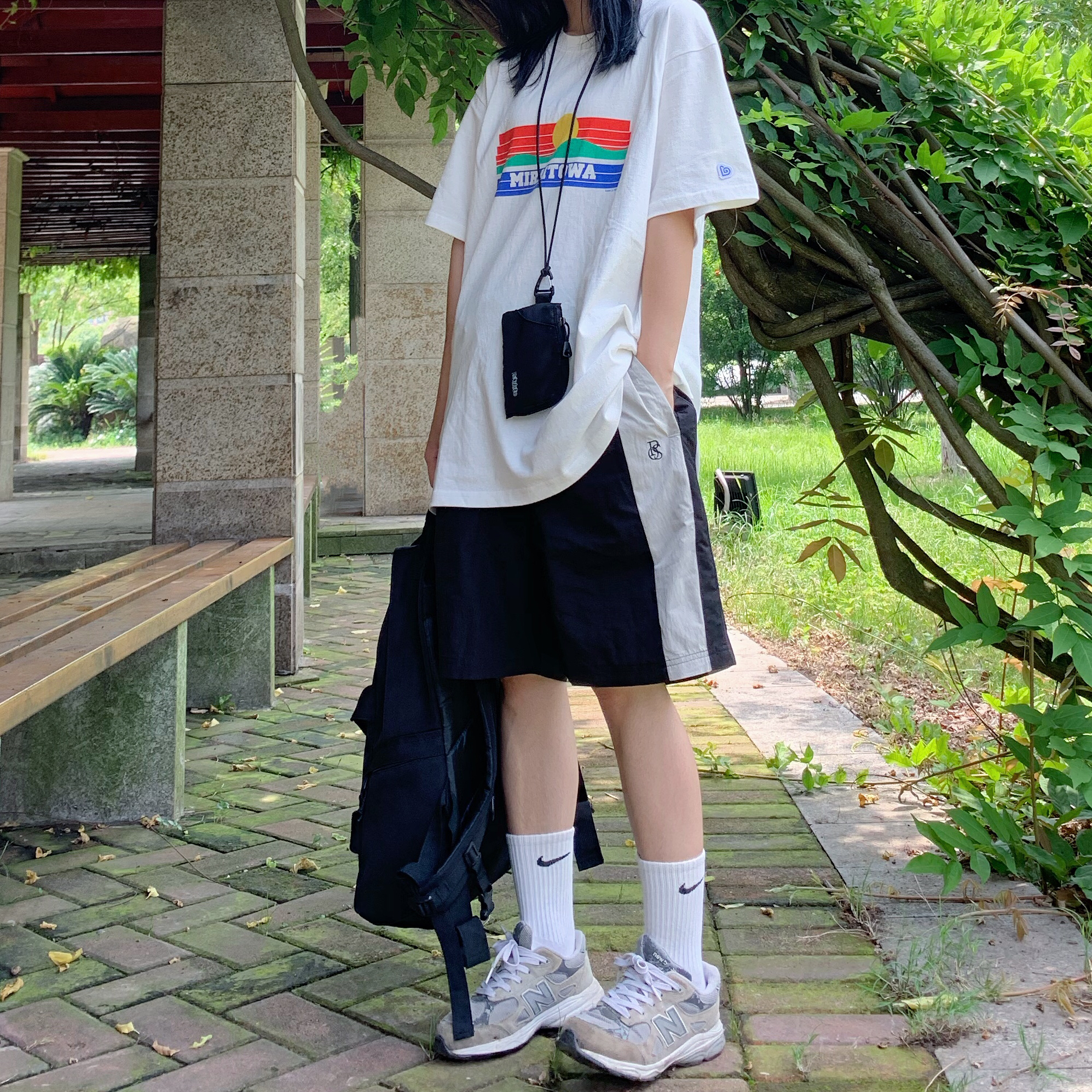 👔 BENT IDEA 线上商店 衣服印花炒鸡独特得夕阳🌇,夏天穿上很有感觉。零钱袋也是他家的喔,百搭小神器。 👖 岛民潮店 裤子版型非常好看,拼接也很有层次感 👟 new balance 这款鞋子是我比较喜欢的,一直觉得它炒鸡百搭