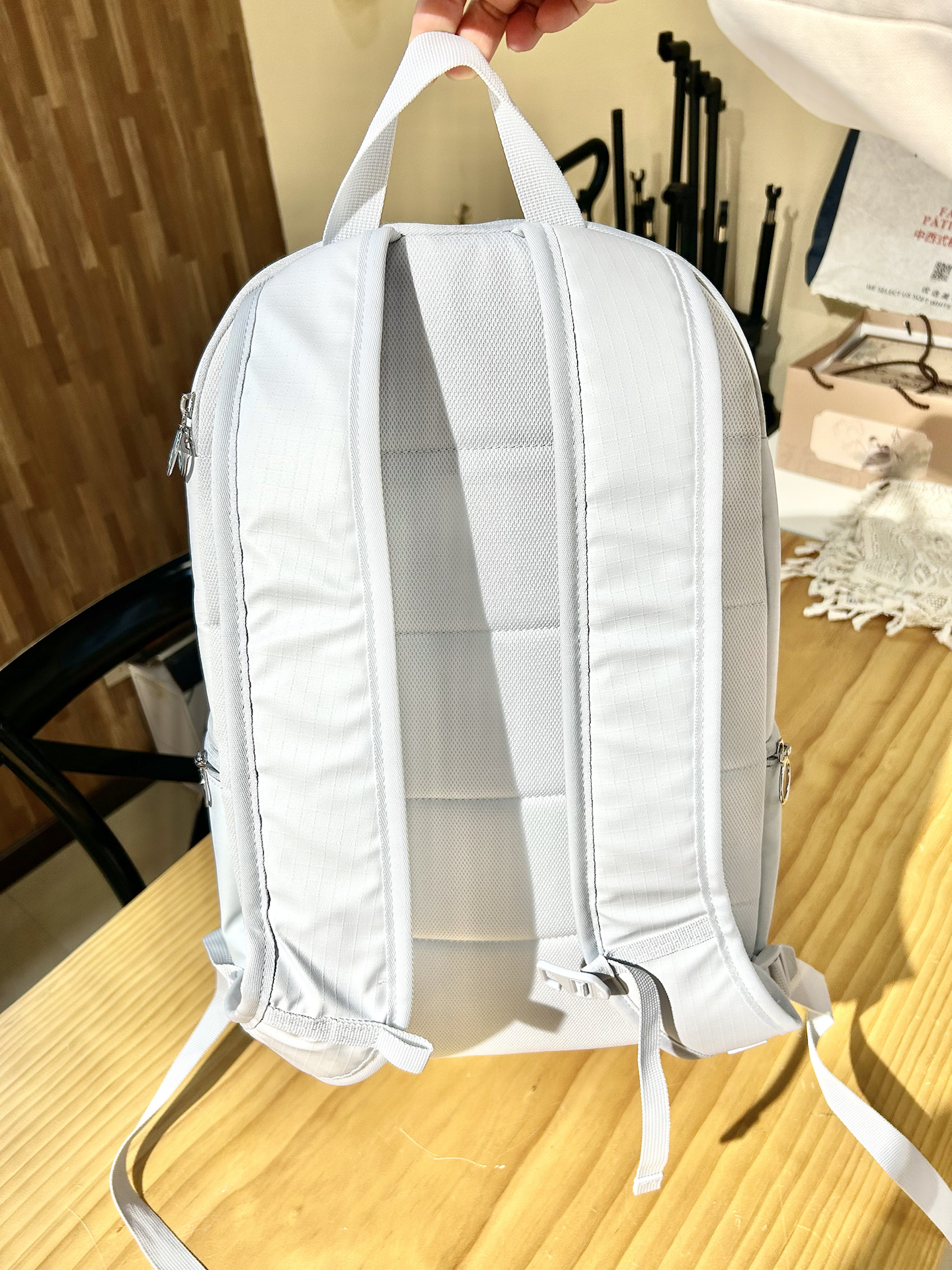 本篇笔记关联了Nike 小号情侣款品牌Logo简约大容量织物双肩包 幻影灰白 IH7955-030等商品,为用户提供真实的使用体验和购买参考。