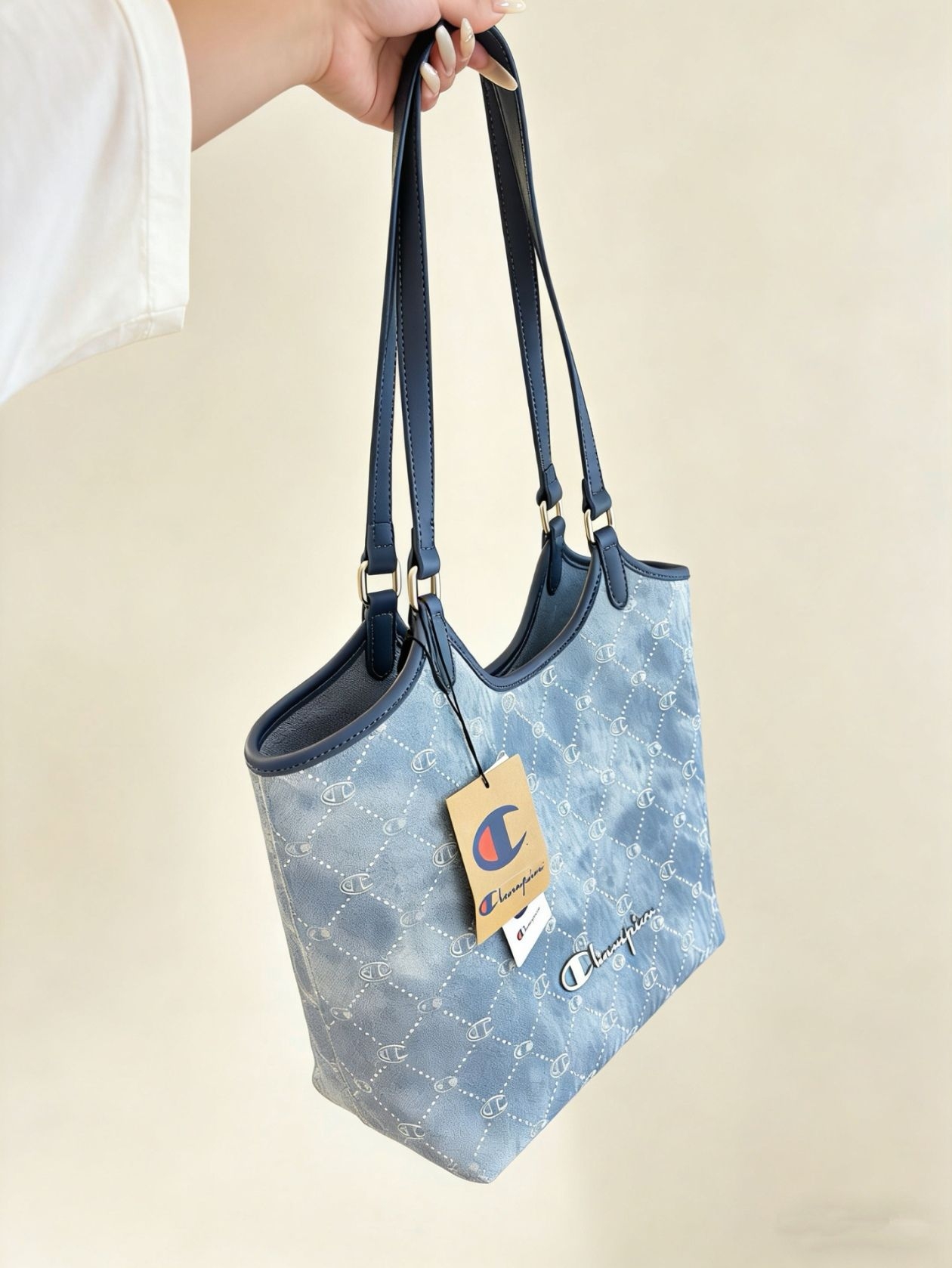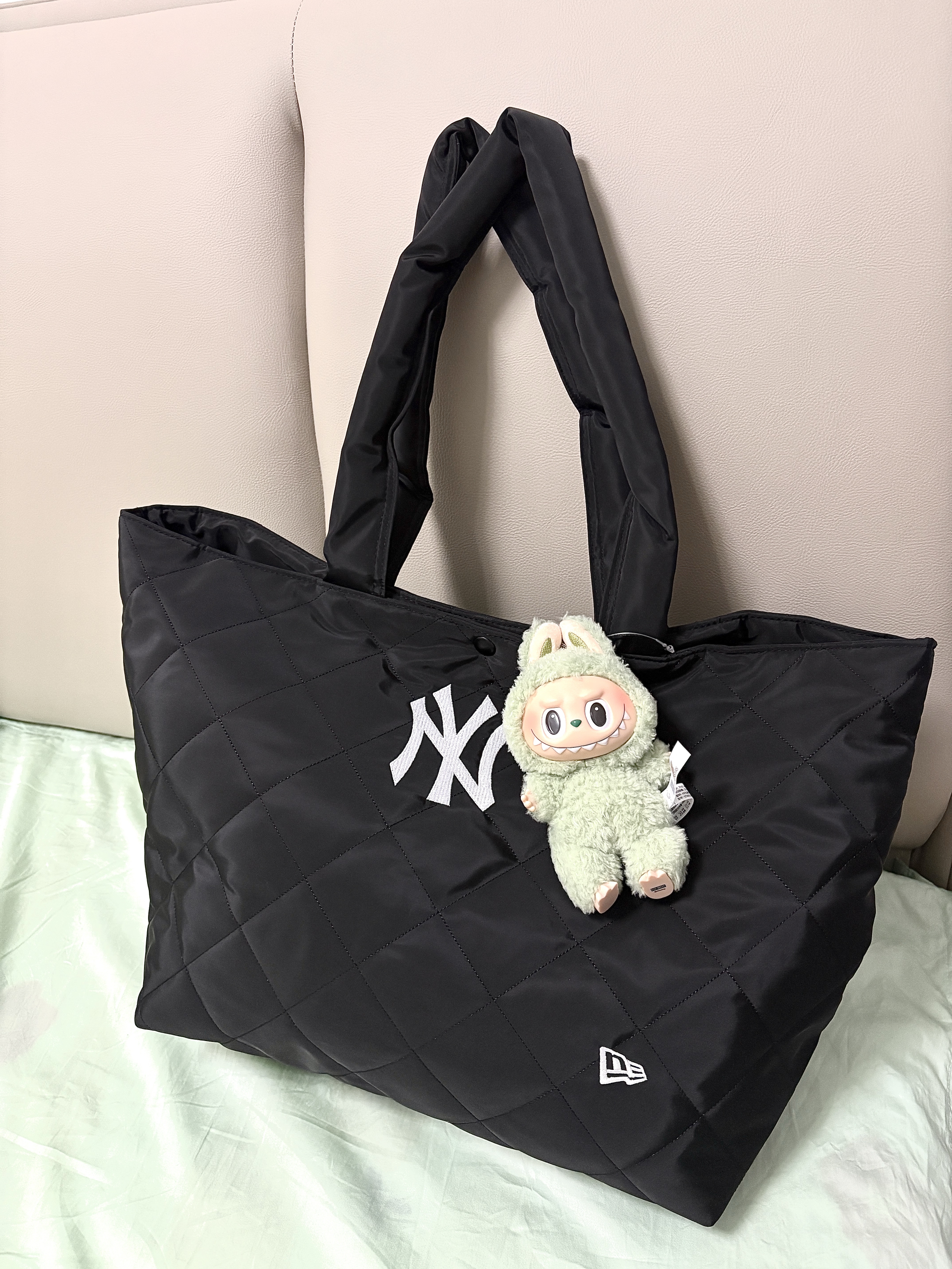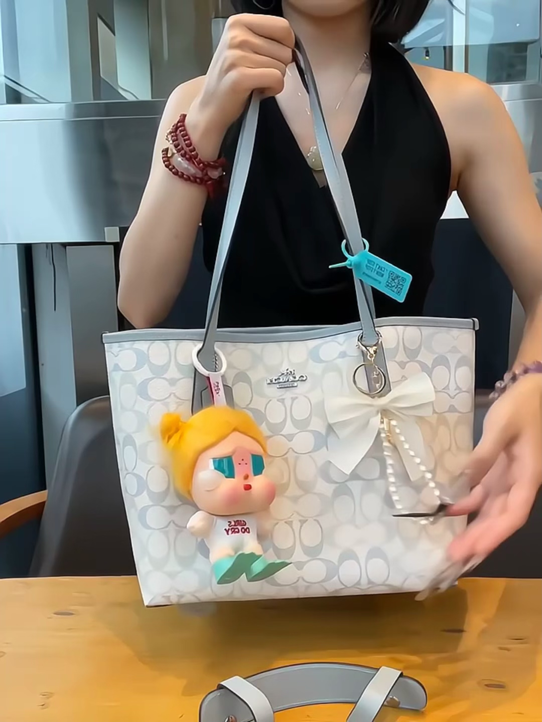 我入手的这款托特包,灰蓝配奶白的色调真的戳中我,温柔又高级,和我的小野挂件意外适配,混搭出不一样的趣味😎。容量够大,装得下通勤的笔记本和补妆品,约会背也不笨重。唯一小缺点是包身没有内袋,找小物件得翻半天,不过整体还是很值!