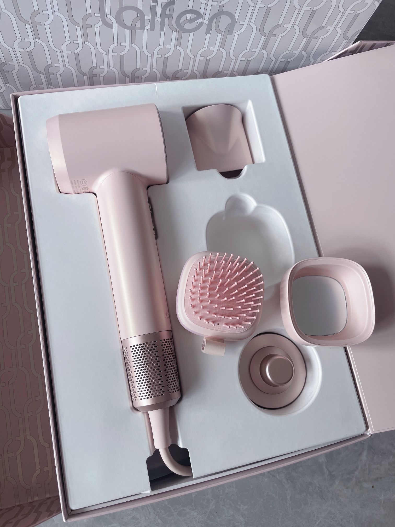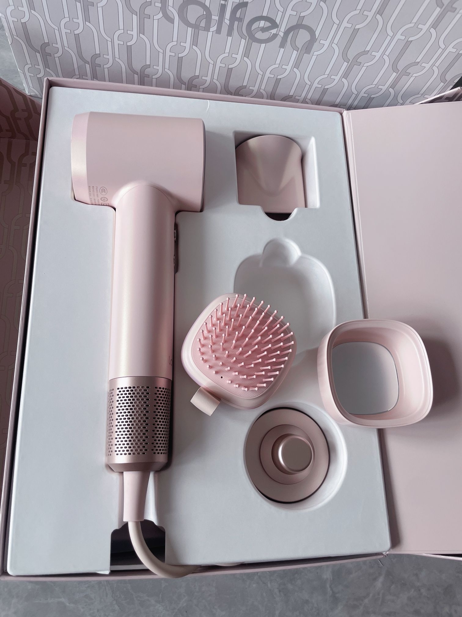 请把这个吹风机推给每一个女孩 一打开就被这个粉色狠狠喜欢到了 太戳我的心了吧 满满一大盒 搭配粉色系的风嘴、气垫梳、还有收纳袋。 连包装都做得那么用心 不管是自留还是送人。 都太拿得出手了吧。#这次真的挖到宝藏吹
