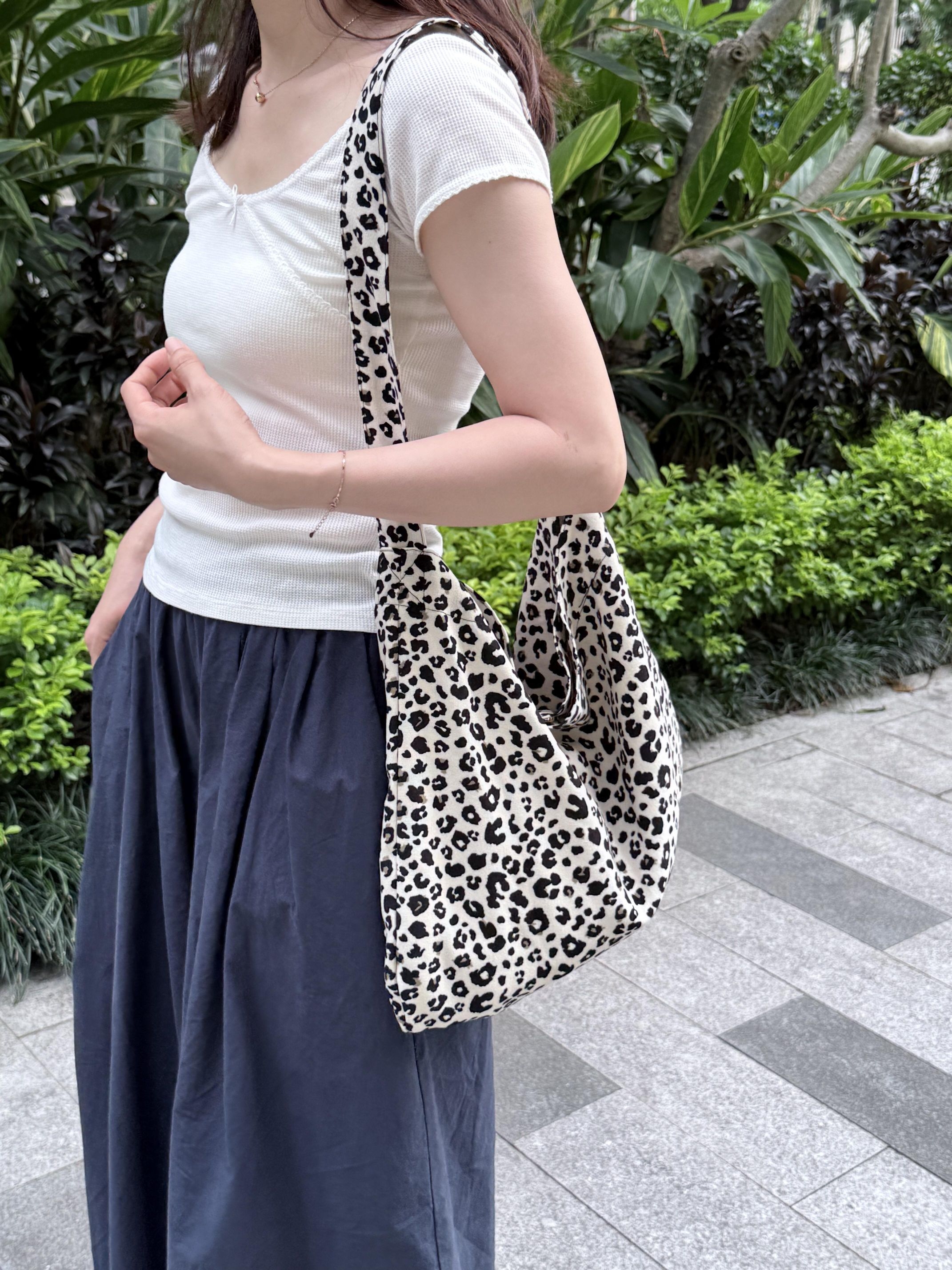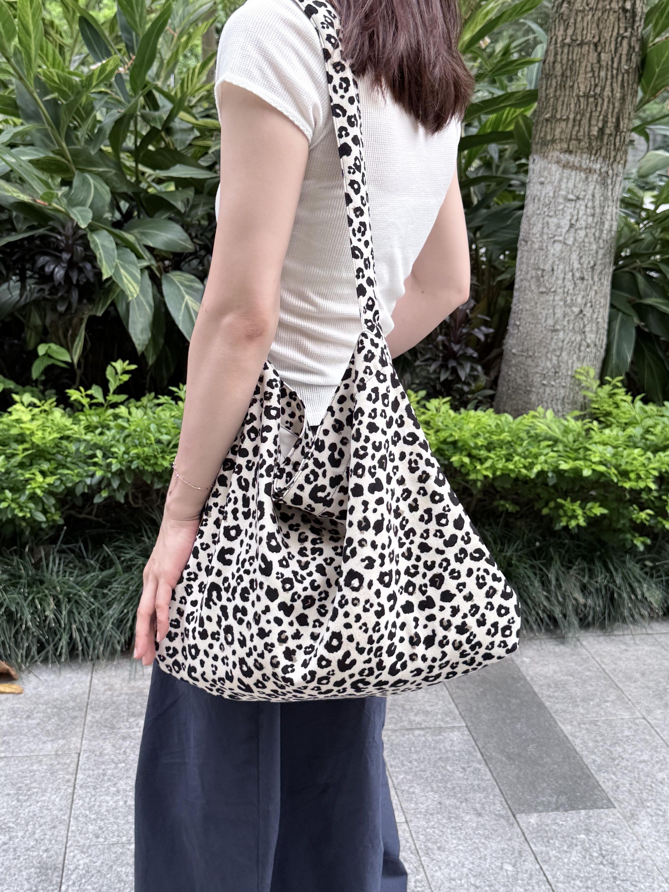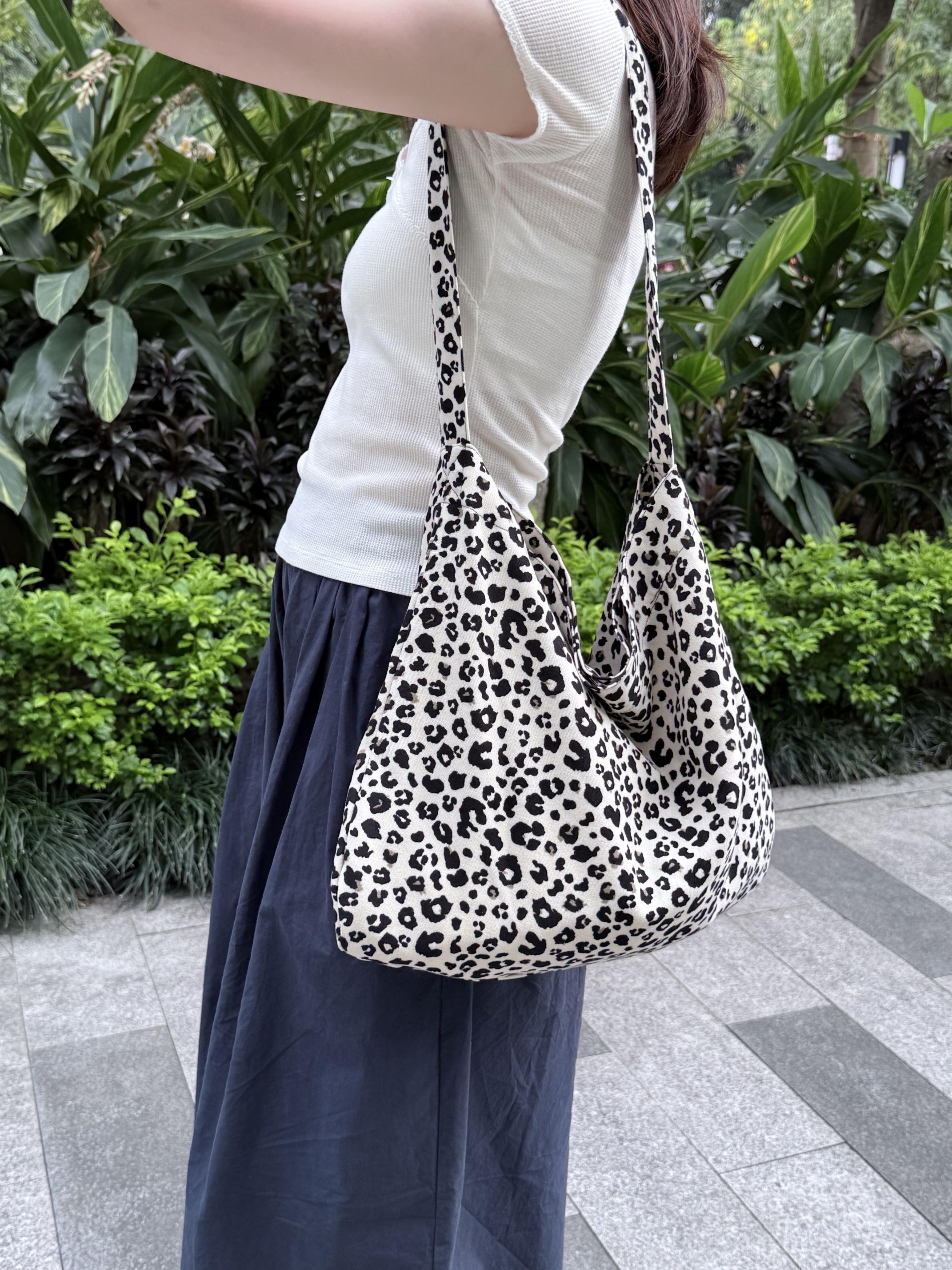 谁懂啊!挖到赵露思同款豹纹包的平替了!奶白底+黑豹纹也太会了吧!完全不是那种俗气的豹纹,反而自带一种慵懒又贵气的韩系女主感~ 软乎乎的帆布材质,自重超轻,容量大到离谱!雨伞、水杯、化妆包、甚至电脑都能塞 单肩背就是随性的松弛感, 搭T恤、连衣裙、牛仔裤都巨合适,日常出街随手一拎,韩里韩气的氛围感直接拉满