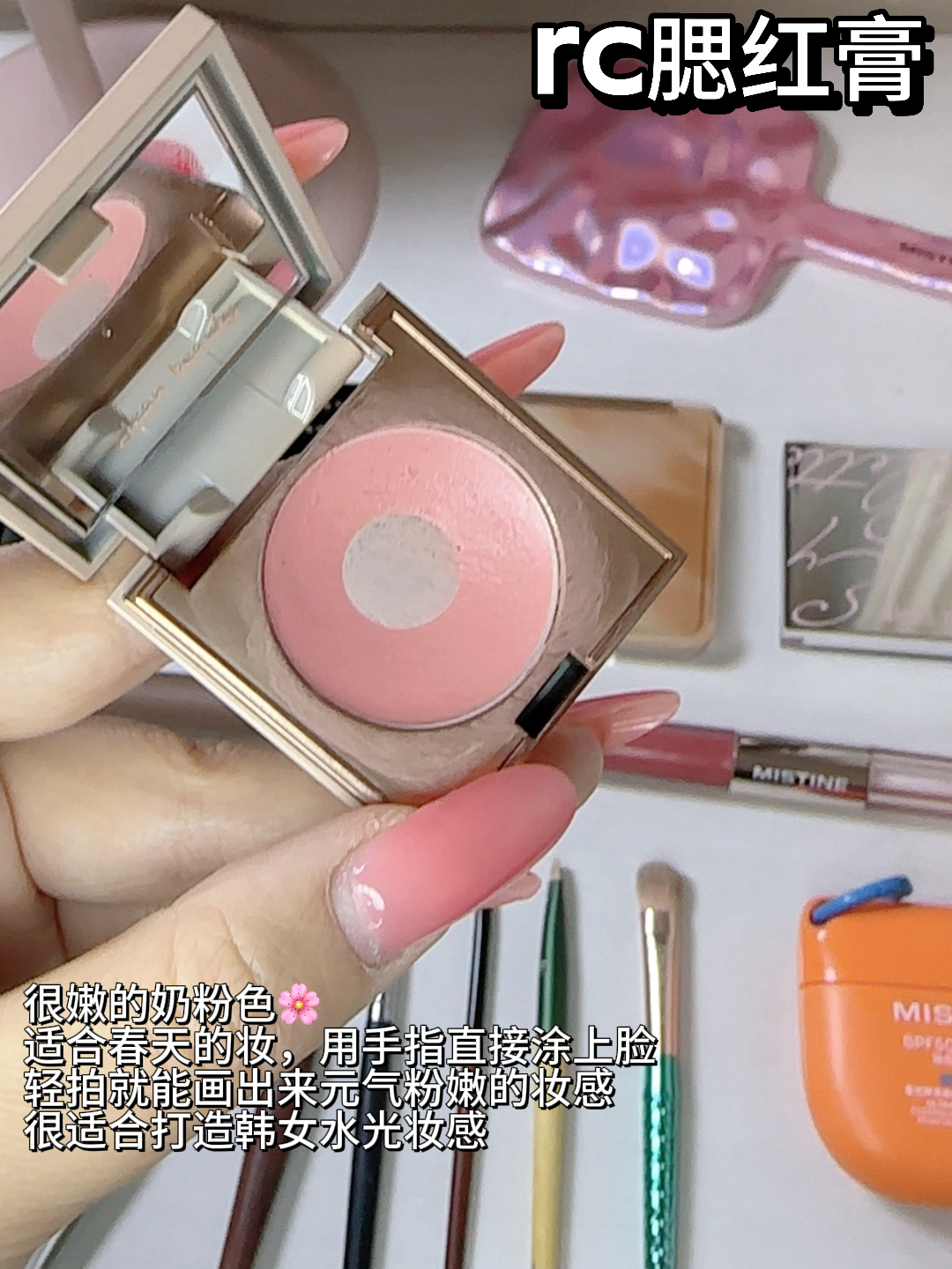 春天就要画这样粉粉嫩嫩的淡妆呀 今天跟大家分享我的全套化妆品 ·底妆 隔离均匀提亮肤色➕气垫快速上妆 ·粉饼定妆 粉质很细腻定完之后还保留底妆的清透感 ·腮红 奶粉色的腮红膏涂在脸颊 鼻头 下巴等位置,整张脸又嫩又有氛围感 之前有出过详细妆教哦~ 很适合春天出游的一个妆!新手学起来