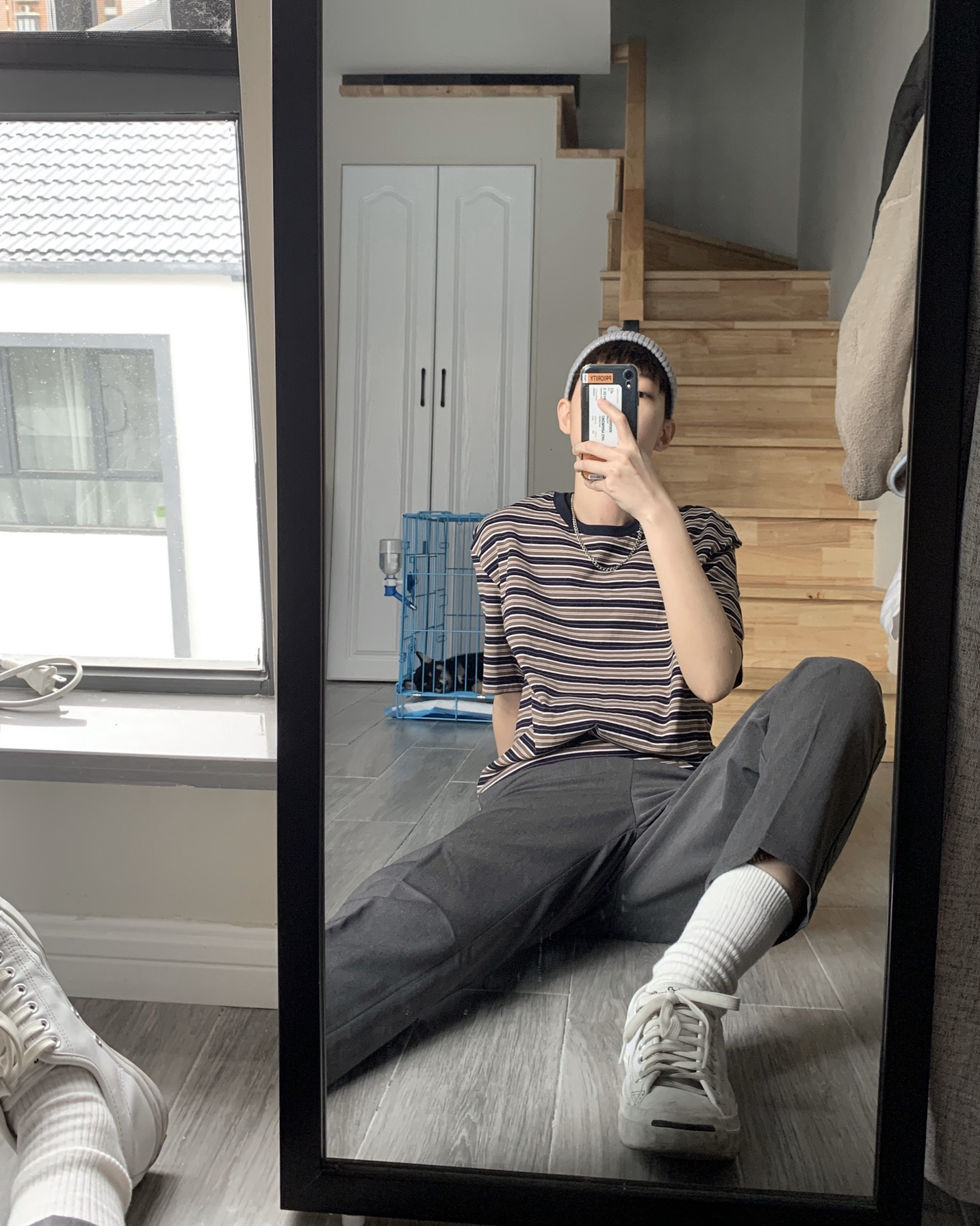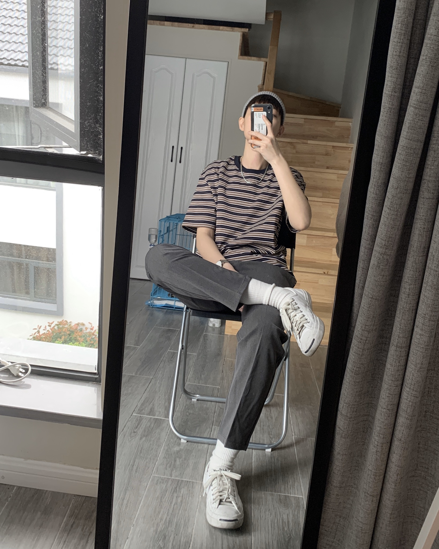 有同学反应单品下架了买不到,之后我会尝试做一些🍑宝搭配,方便大家购买🧏🏽♂️ - 我的身材偏梨型,就是肩膀窄屁股大,到腿又往下收的那种,所以上半身我喜欢穿得宽松一点,平衡一下身型。推荐窄肩同学试试细条纹,视觉上会有明显宽肩的效果🤙🏽 - 我蛮喜欢这条西裤的垂坠感,介于正式与休闲之间,上班可以穿,下班聚餐遛遛狗也很舒服,腰部带一条同材质腰带,这就很贴心了,高矮胖瘦都行,推荐大一码穿着。 - 配件部...