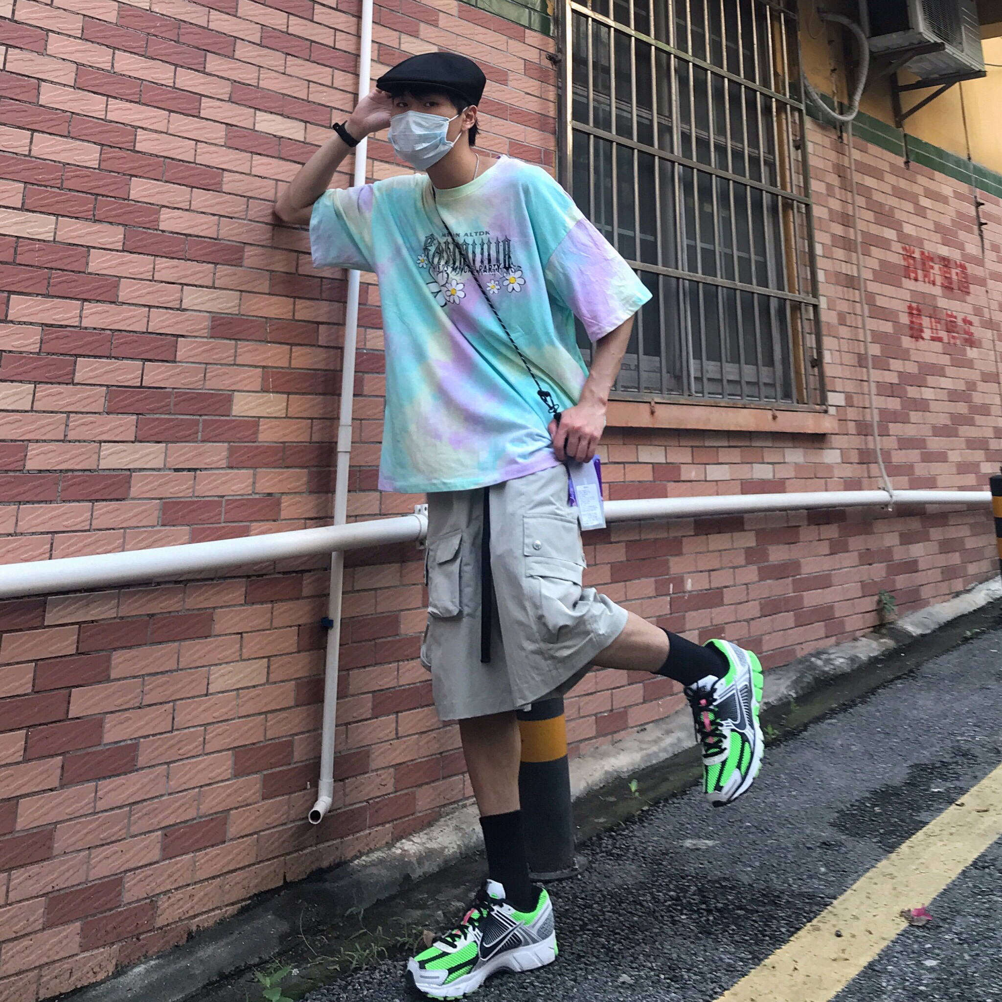 👔 DUFGDC扎染短袖 👖 Nobodyknows五分裤 👟 nike zoom vomero运动鞋 衣服:整体采用了比较热门的扎染设计,扎染设计让整体看起来更加的有街头感,印花上则用了以雏菊为主的图案,整体得风格就偏向街头嘻哈范儿,宽松版型也是上身比较nice的 裤子:裤子五分裤的设计,直筒的版型加上了多口袋的设计,整体的工装风格满满的,卡其色的颜色更加让裤子很有味道,面料比较轻薄,所...
