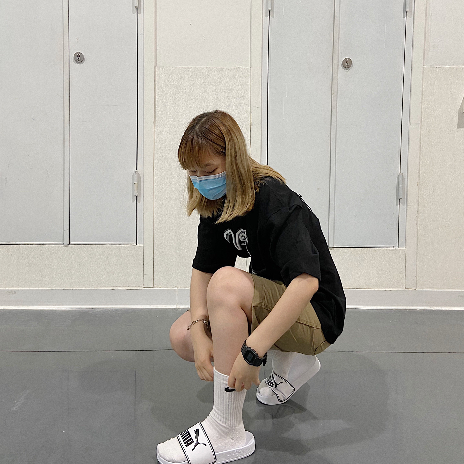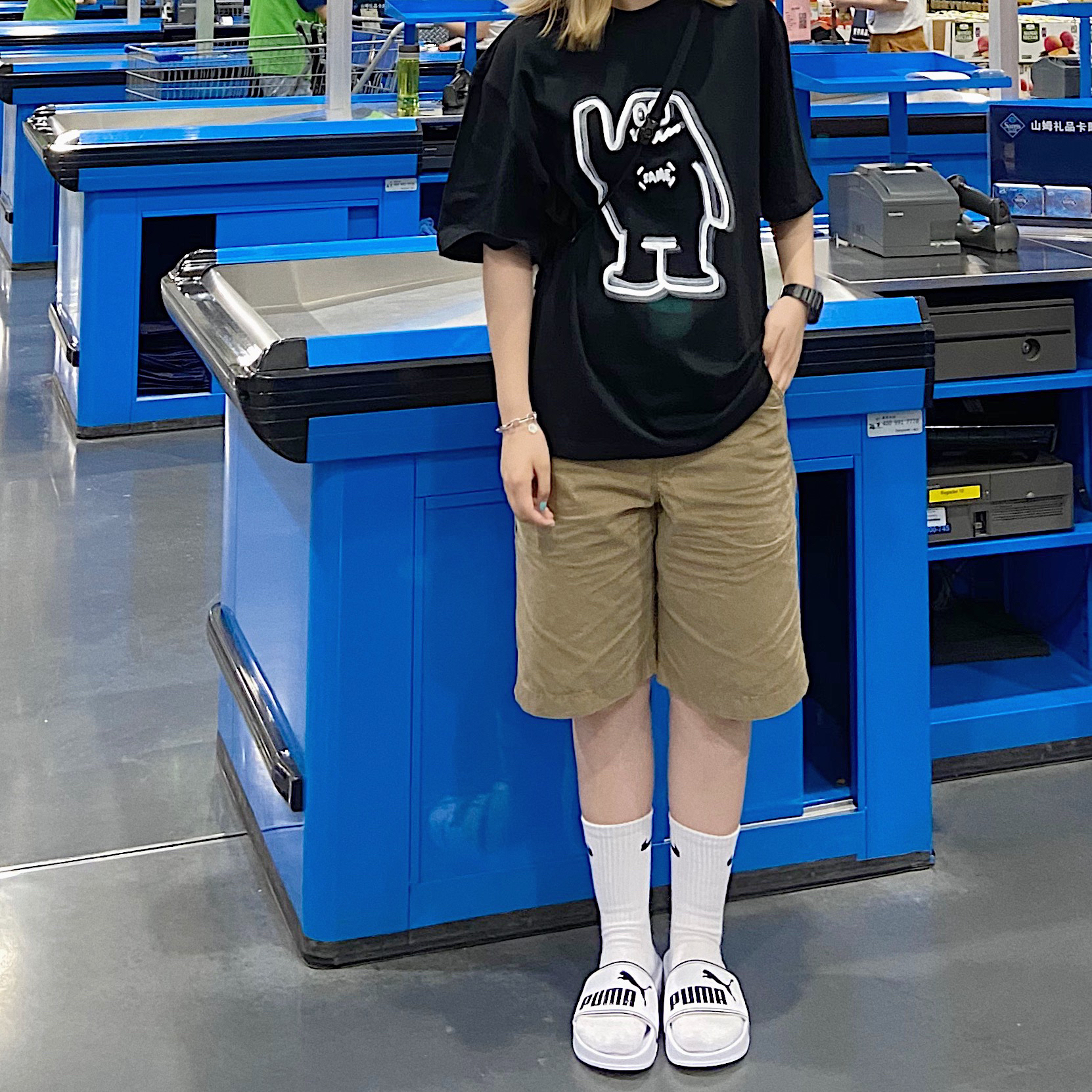 Day6穿搭 👔:SAMESAME ONLINE STORE 👖:UNIQLO (425489) T恤出街最舒服 衣服上的原创设计吉祥物超Q 百搭的工装短裤 超级舒服 搭配拖鞋 太cool