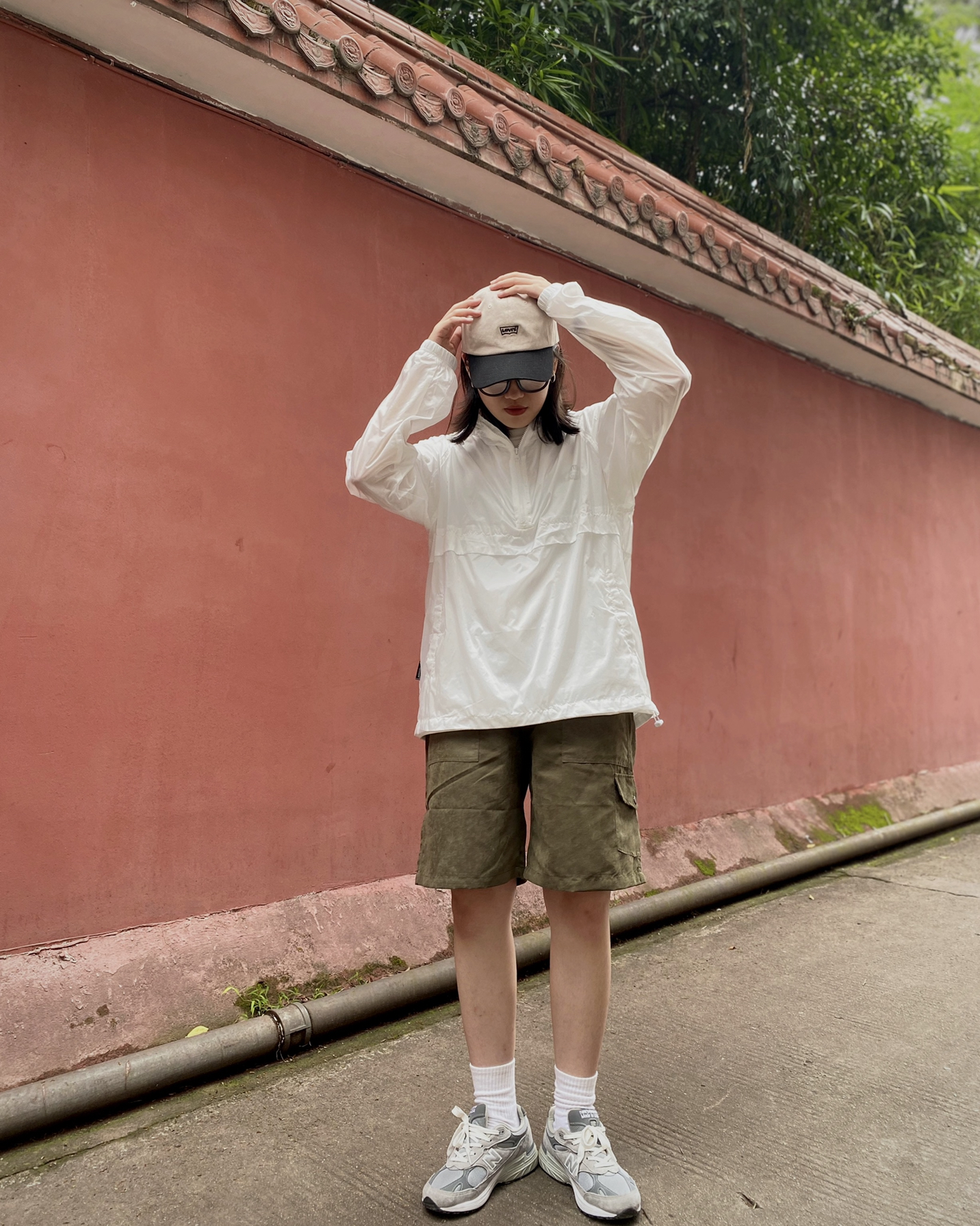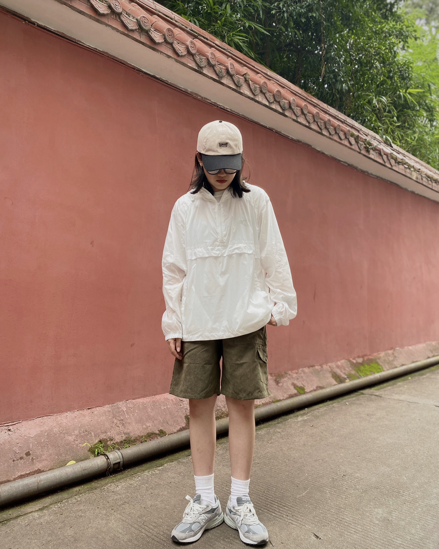 烈日炎炎的夏日 物理防晒也要整起来 奶白色是夏日必备颜色了 一套:Focos Studio 帽子:李维斯