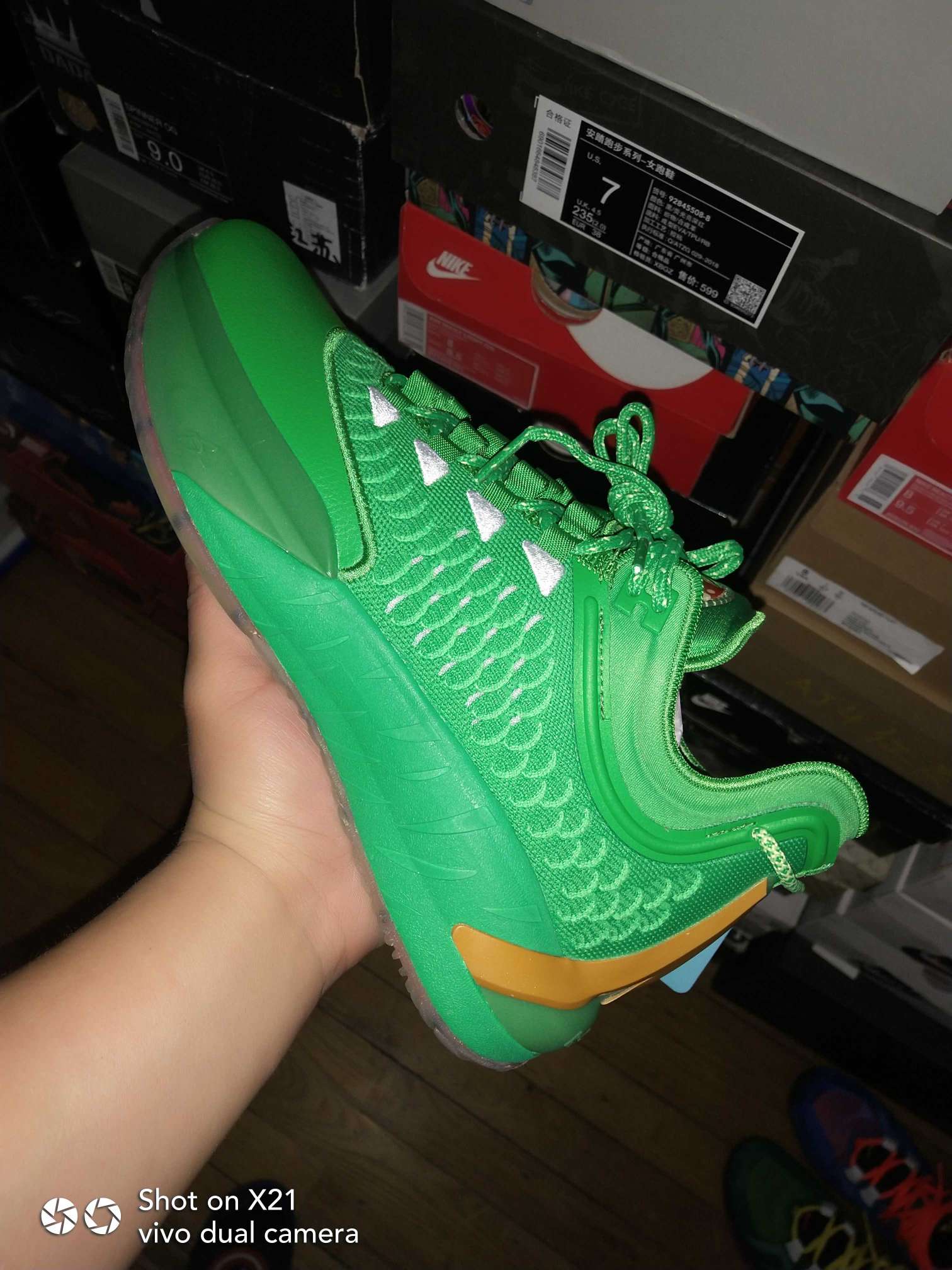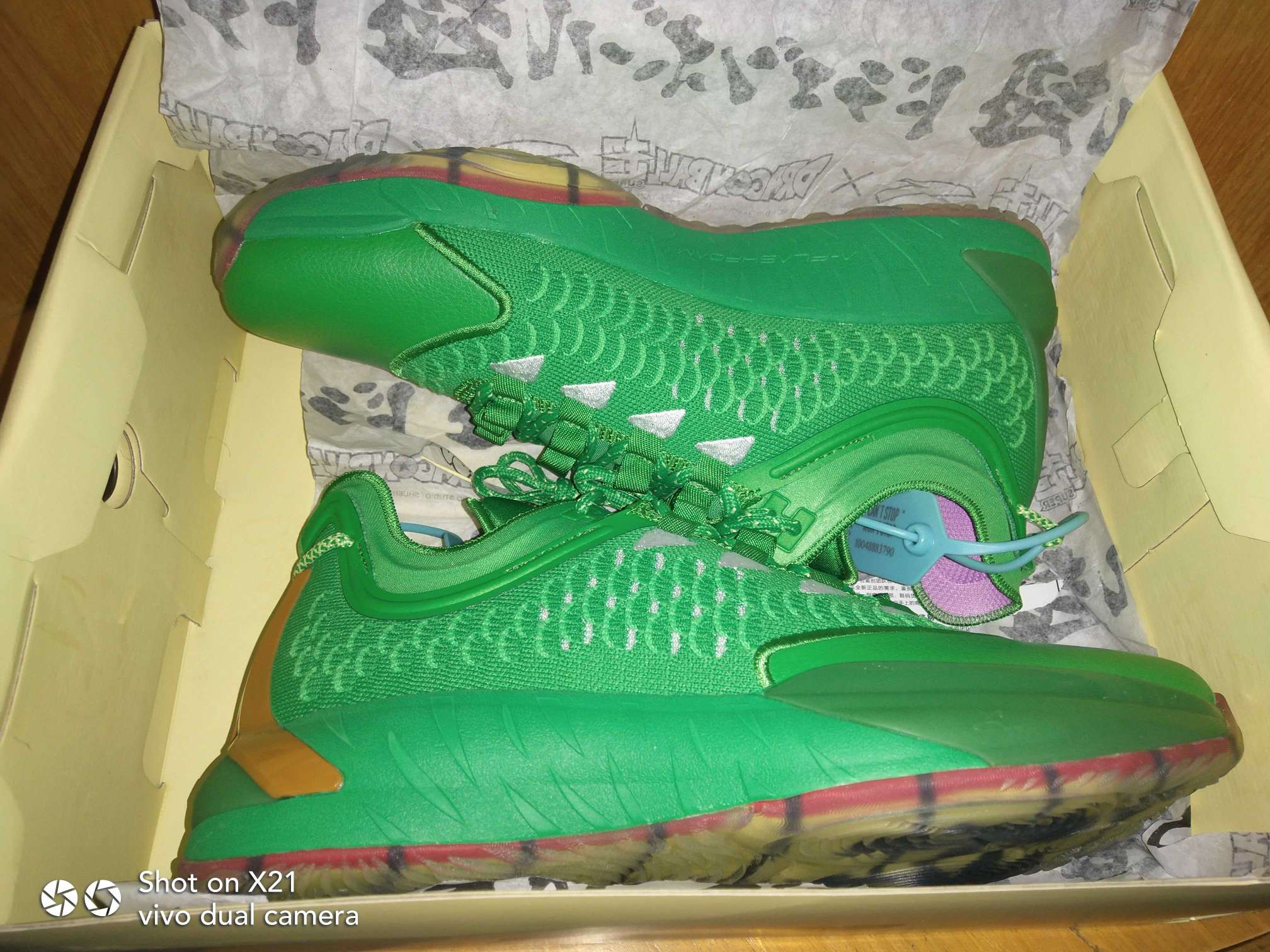 龙珠联名海沃德神龙gh1 #jrs ,全绿配色,皮质鞋头,编织鞋侧做了龙鳞开放式处理,鞋舌两颗四星龙珠,后跟logo金色龙角,内衬和鞋垫用了神龙淡紫色的舌头,鞋底神龙两个中文大字,细节多多诚意满满。