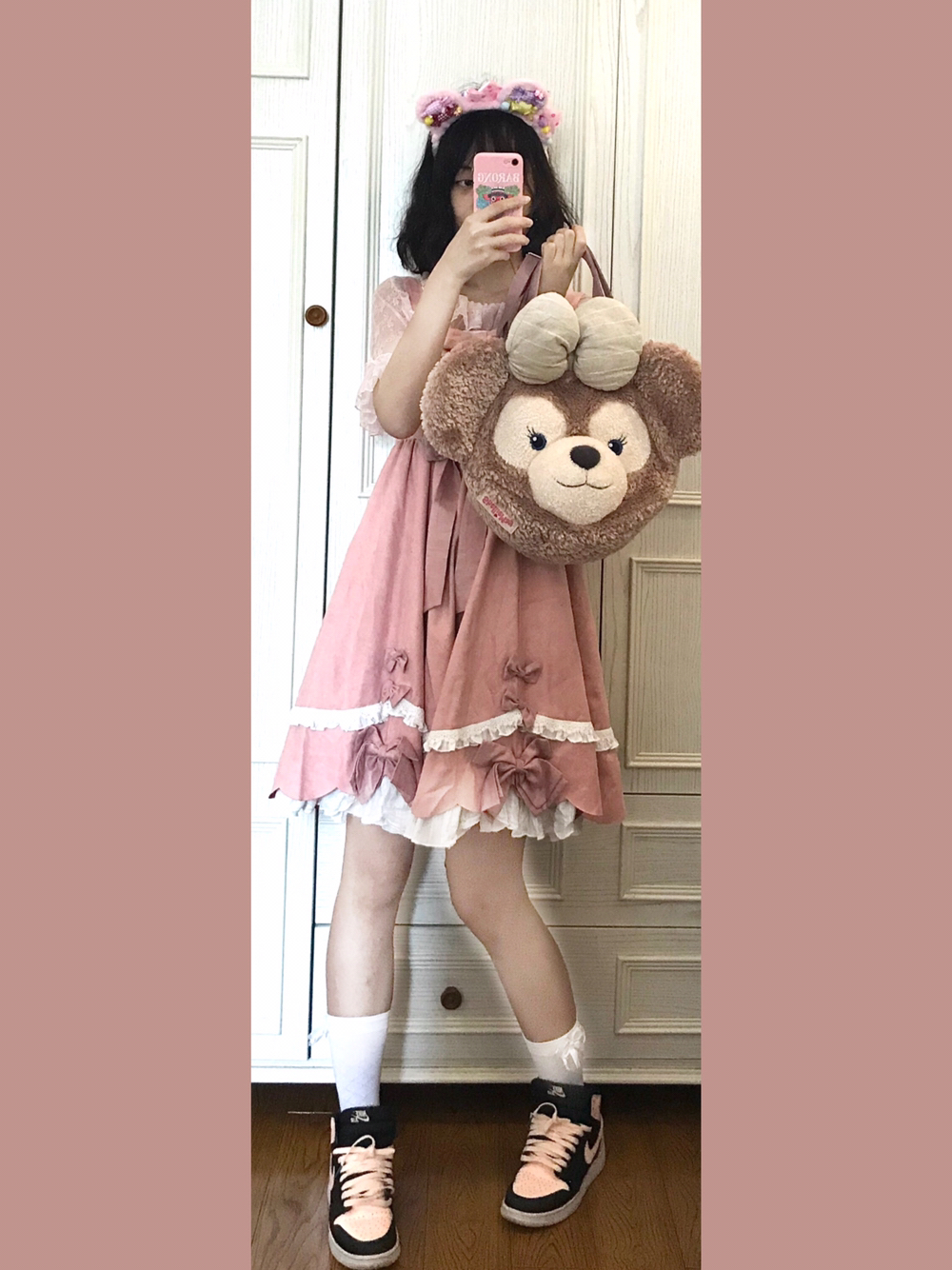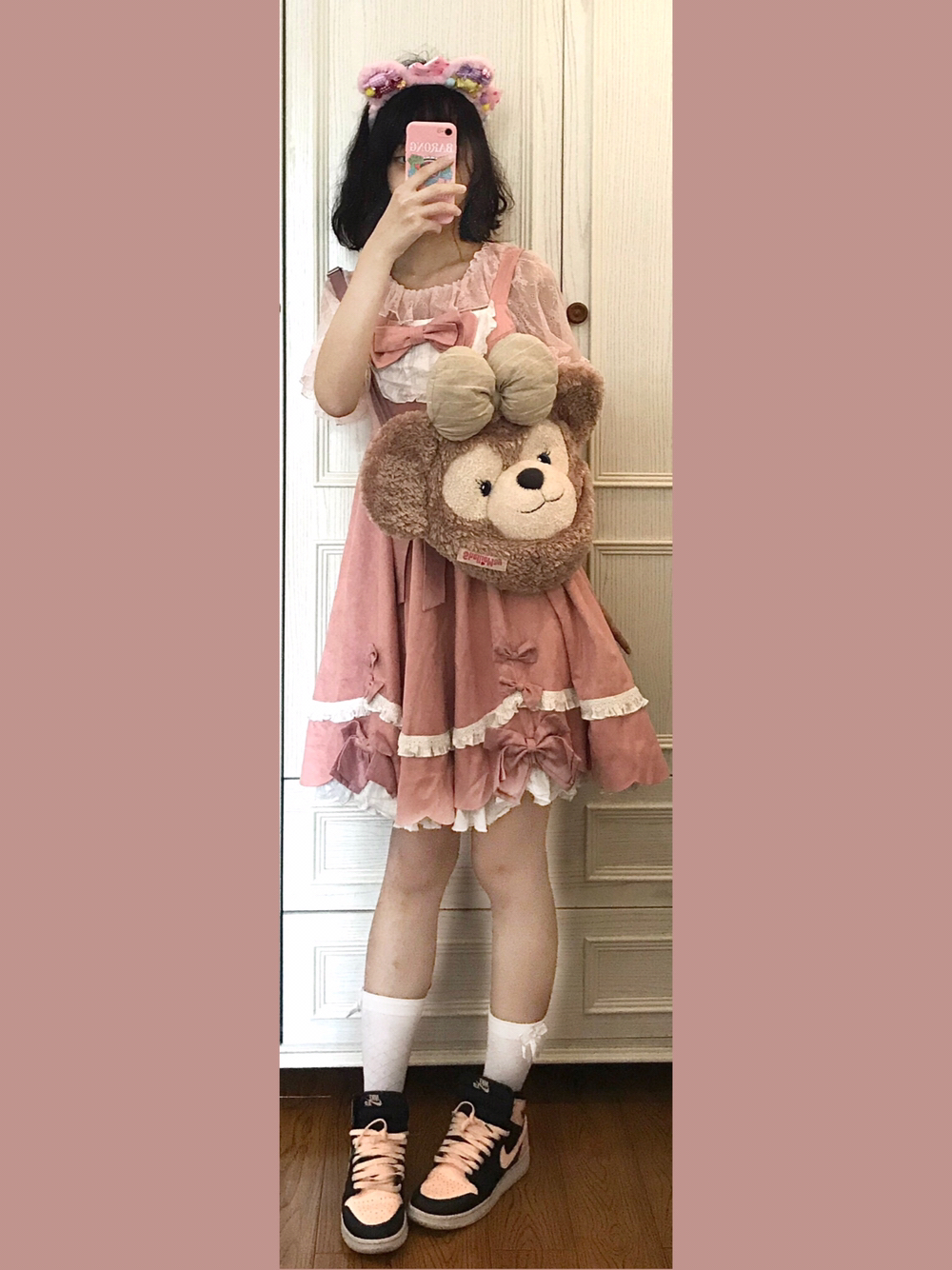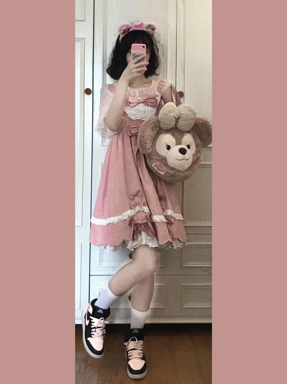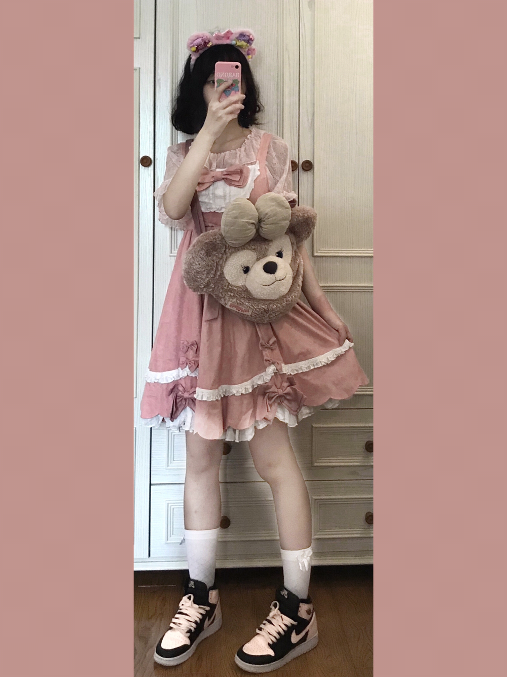 💖穿搭灵感来源🌙 女孩子👧🏻谁不喜欢可可爱爱的lolita呢!大面积的粉色蝴蝶结色块产生颜色联系~ 💖单品配饰如下🌙 👚没烦恼很幸福 内搭蕾丝短袖 不会很扎~穿一天出去玩拍照📸啥的基本木有问题!重点是搭配小裙子真是不会出错系列~太好看啦 👗光学水母福袋jsk 一大堆蝴蝶结在裙子上好满足哦😇👼🏻裙子也很有分量~秋冬换成长袖内搭穿也不怕冷~转个圈太公主👸🏻了吧!! 👟Air Jordan 1 黑粉脚趾...