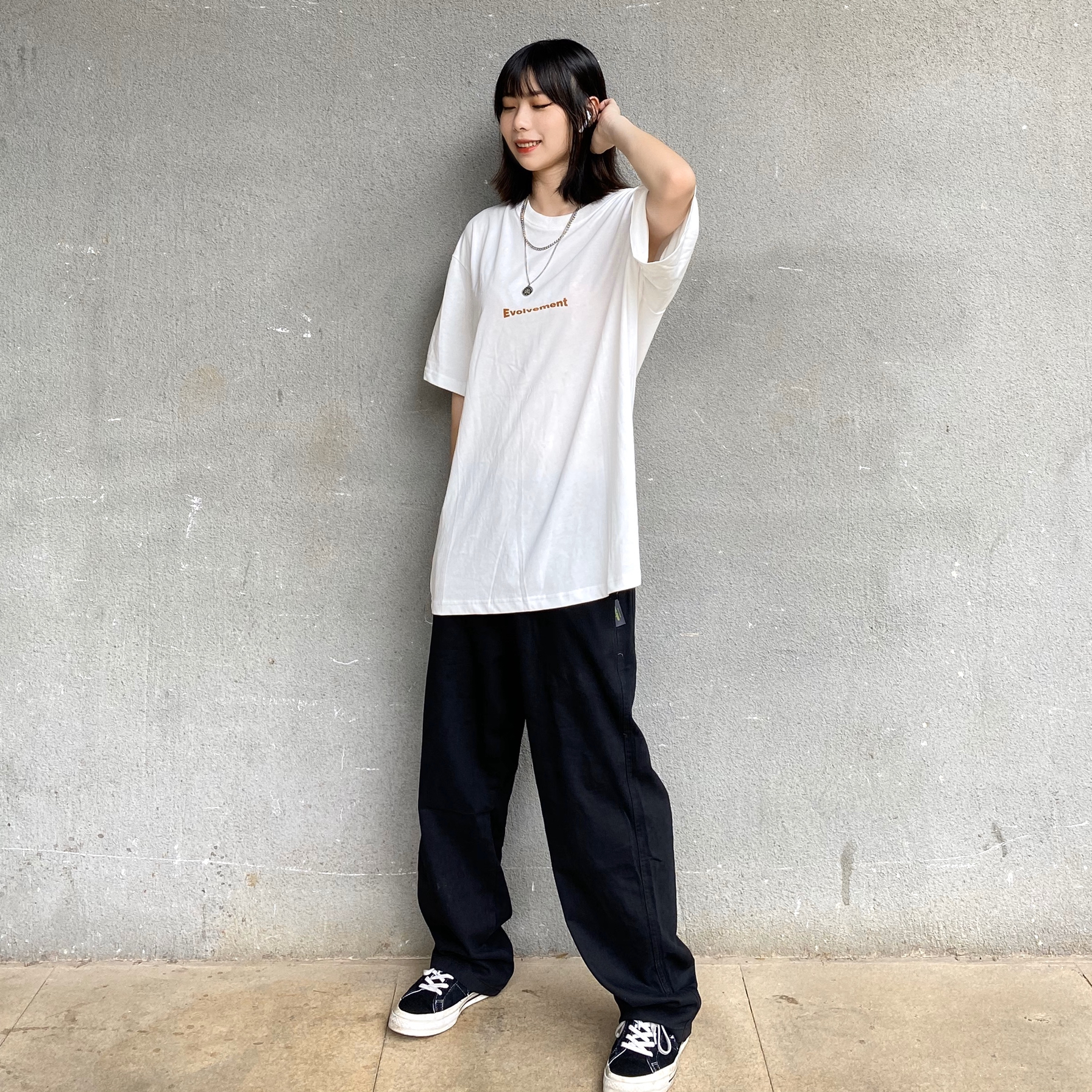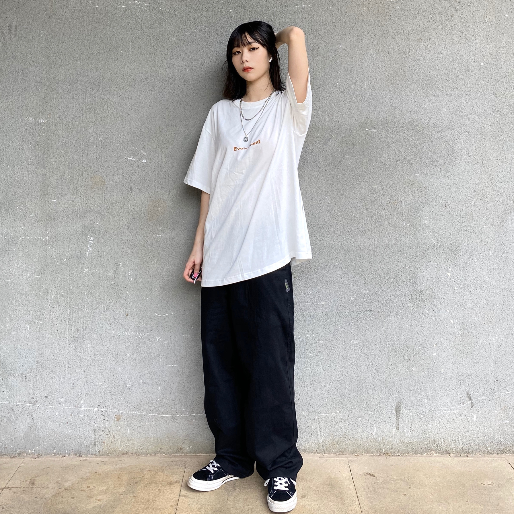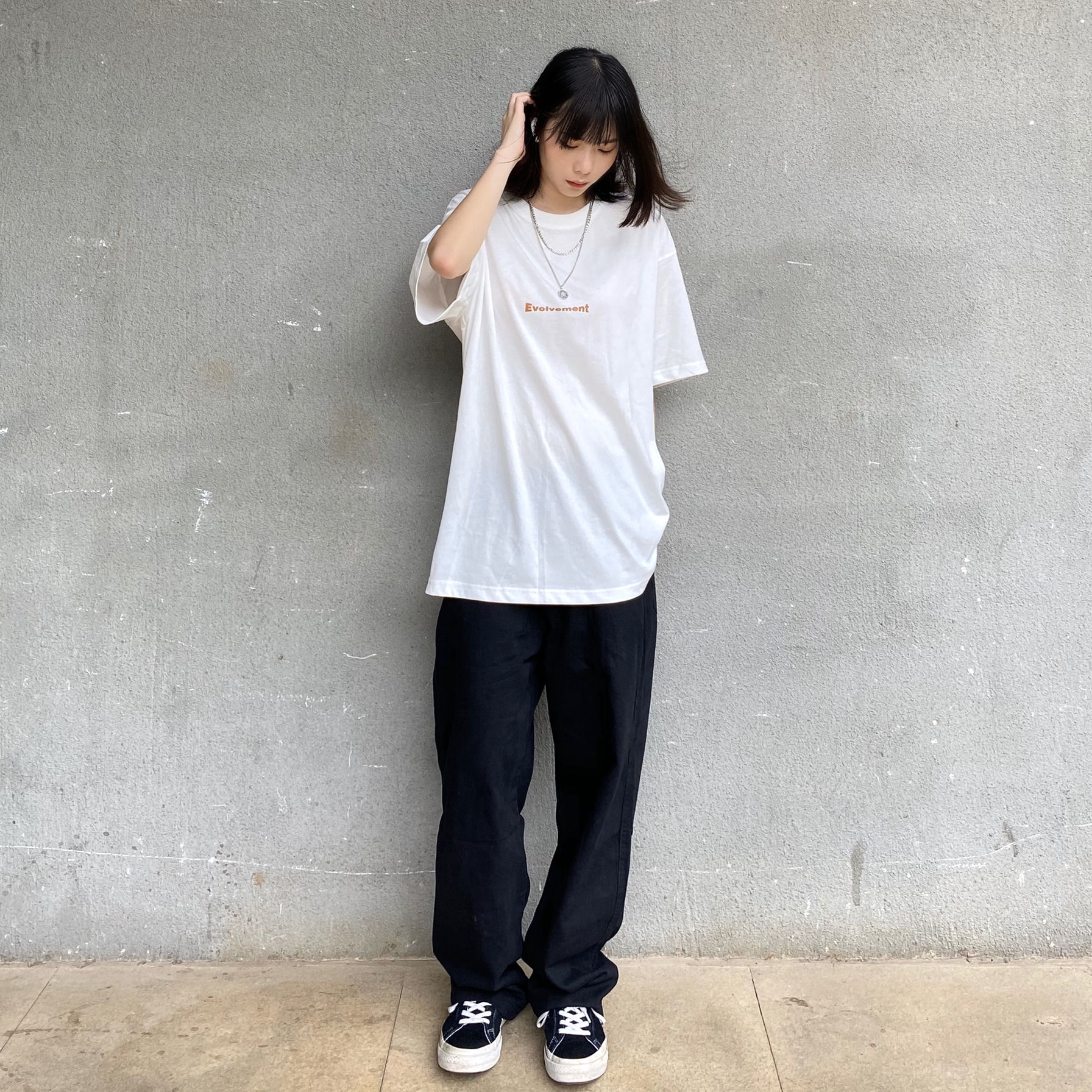 上衣:LSAGE线上商店 基础款白T,胸前有一线字母,有一点点偏奶白,这件面料垂感很好,视觉上有拉长的效果,夏天单穿内搭都很可,有一点透现实中还好,男生穿很透气,女生可以选个比较简单的ny或者背心来搭 裤子:HVELAY旗舰店 基础款工装裤,简单比较休闲,整体宽松度恰到好处,直筒版型,上身也很显瘦,面料还蛮软的,而且还很平价,性价比很高 鞋子:Converse One Star 匡威经典鞋型,...