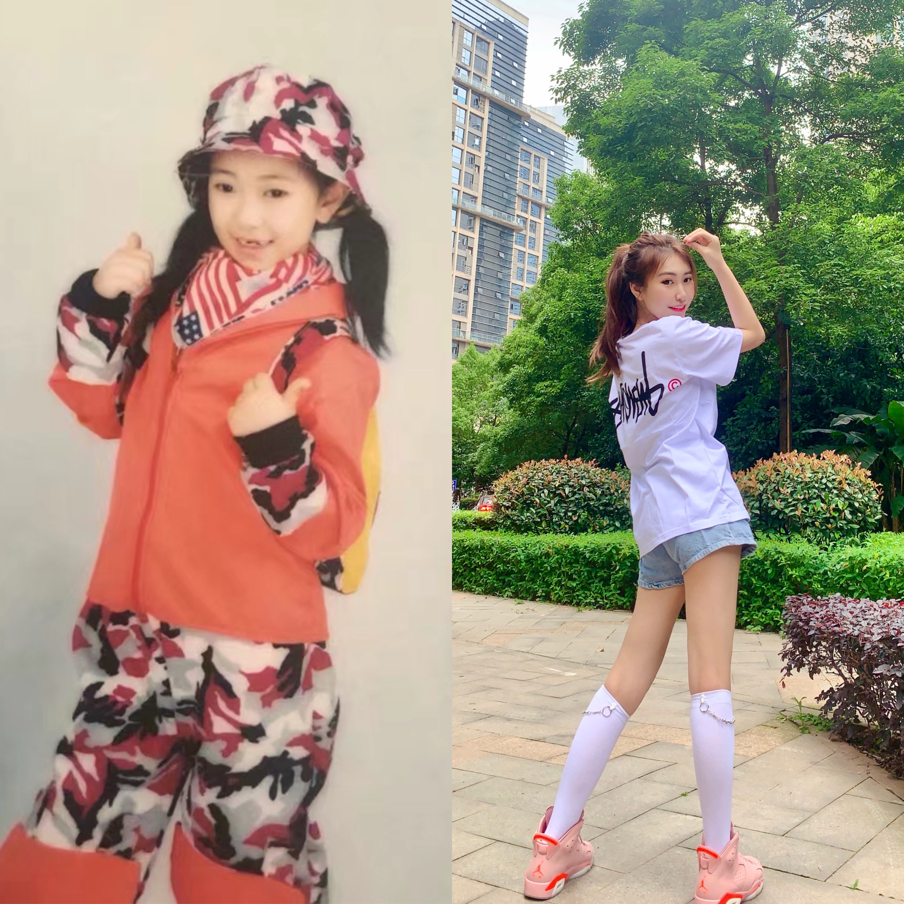 翻到以前的相册,真是回味无穷,虽然忘记了具体年龄,但我想应该是一个有意义的日子所以才去拍的写真吧,毕竟那时候不像现在年轻人说拍立马就去了,看到我两颗还没长好的门牙了吗,哈哈哈,我都不知道自己当时怎么笑出来的,不过我现在看看我小时候穿的挺潮的呀,街头风,迷彩元素都融合在一起了,极其nice😆 图三↓ 👚:Nike 图四↓ 👚:Suamoment 👟:Aj6 你们喜欢小时候的我还是现在的我呢? 好期...