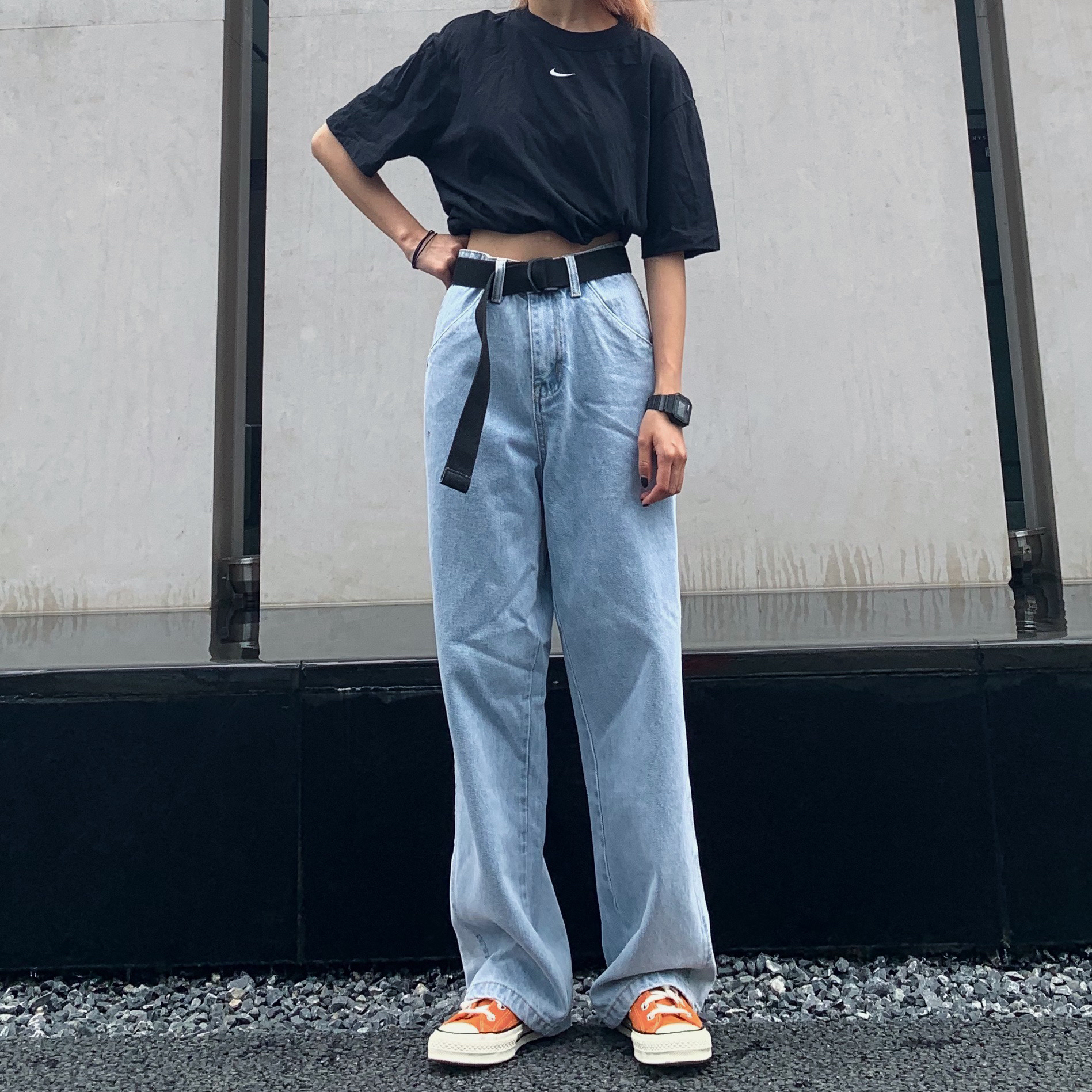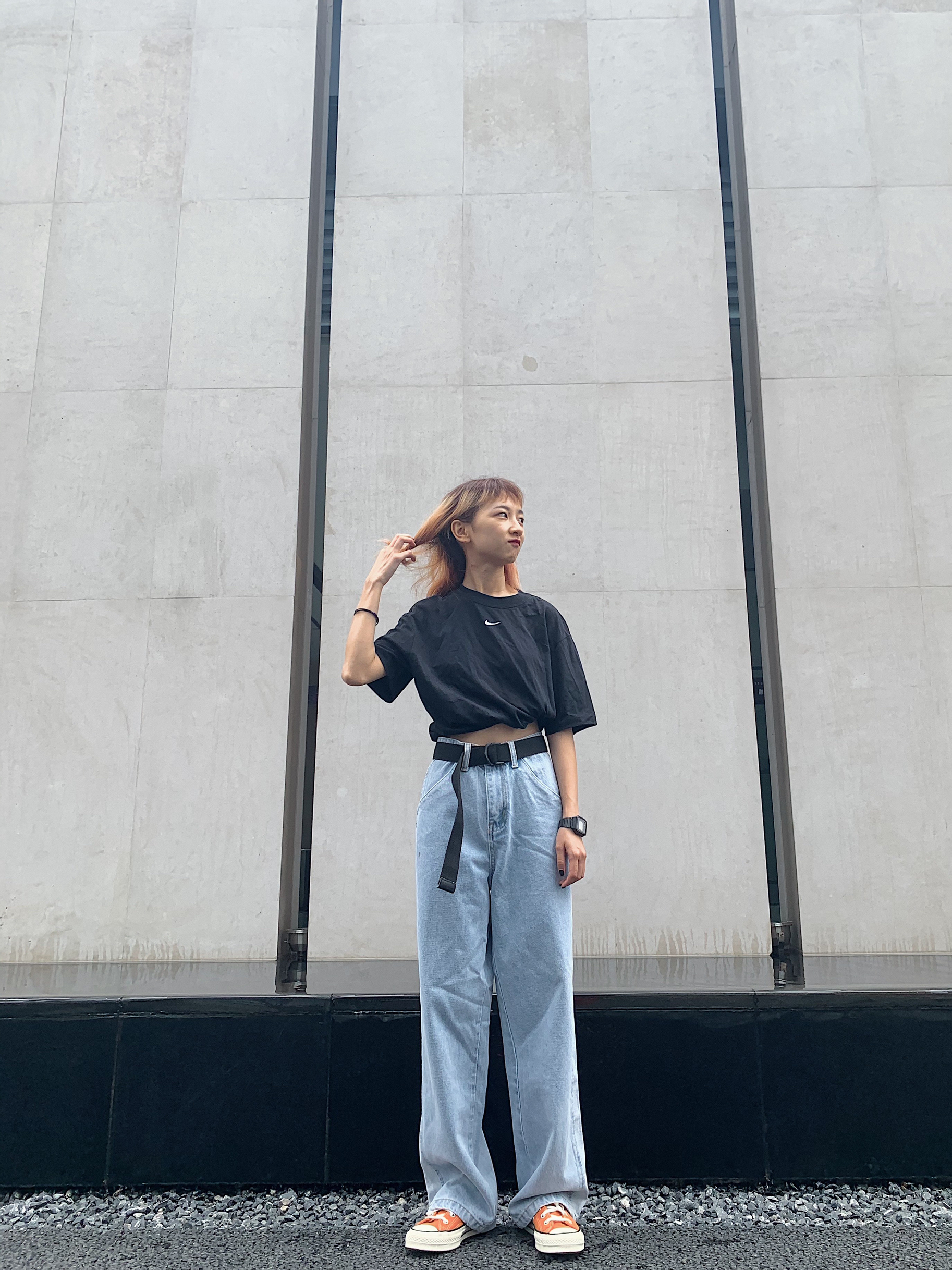 👔Nike 被穿搭博主安利的衣服 感觉穿西装里面特别好看 休闲舒服 在白色和黑色之间纠结了挺久 最后还是选了喜欢的黑色 版型偏小 但是不妨碍我对他的热爱 👖M5IS 阔腿的牛仔裤能选好简直是高腰利器 对于我这种小矮个来说太显腿长了 自我感觉超级良好 哈哈哈哈哈哈 而且在夏天这样宽宽松松的也蛮舒服 👟CONVERSE 感觉挺少看到有人穿这双鞋子 但是颜色是真的好看 就是这个皮质脏了可能有点不太好...