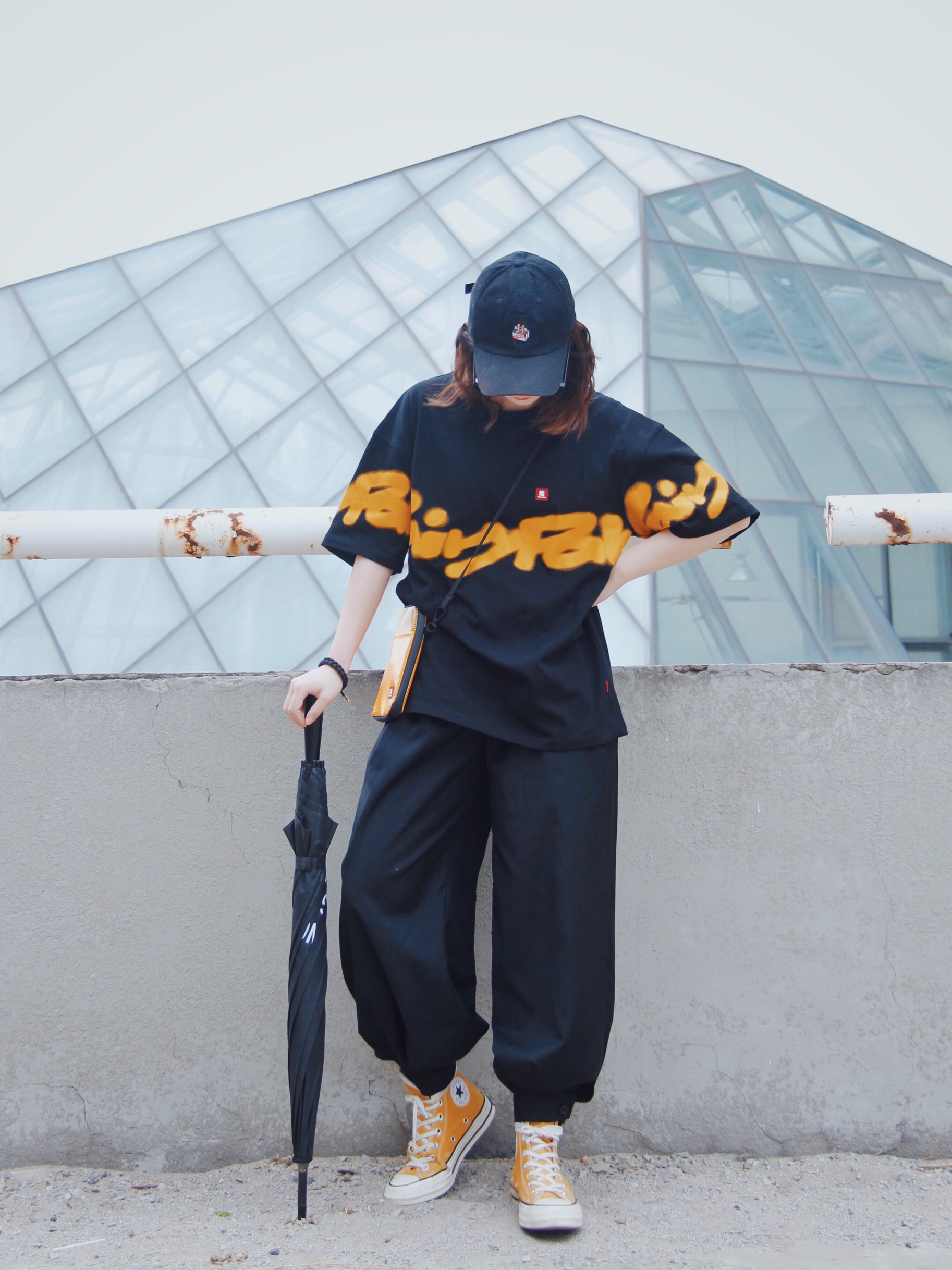 上衣:fyp 鞋子:1970s 裤子&帽子是实体店买的 超爱星巴克的可可碎片星冰乐了 但是今天推荐棉云拿铁!感觉很清爽 一身黑就很酷 但很热哈哈哈哈