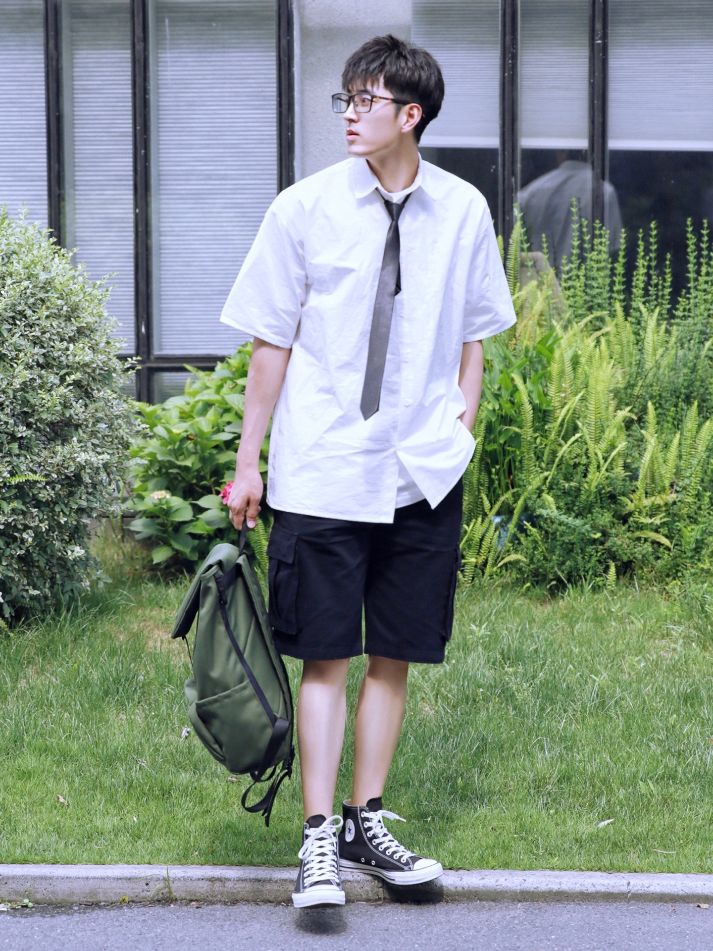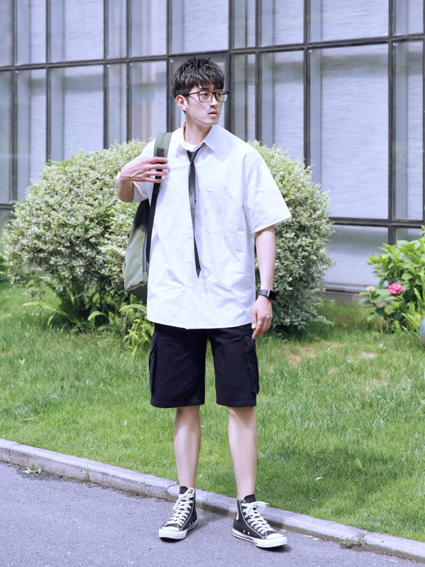 ⭐️之前有粉丝留言💬,说想看我穿JK制服👔之类的穿搭,但我真的没有那—类衣服,所以上周提前和朋友打招呼,让他帮我准备了—件白衬衫和一根黑色小领带。然后,自己搭配了—条黑色夏日小短裤🩳,还穿上了我的黑色高帮帆布鞋👟,属于黑白日常简约搭配✨。 — ⚠️第—次这么穿!自己觉得还OK!你们觉得呢? · 👔·白色短袖衬衫—PD大人; 夏天选衬衫,选版型宽松的比较好。 · 👖·黑色夏日小短裤—PD大人; 黑色...