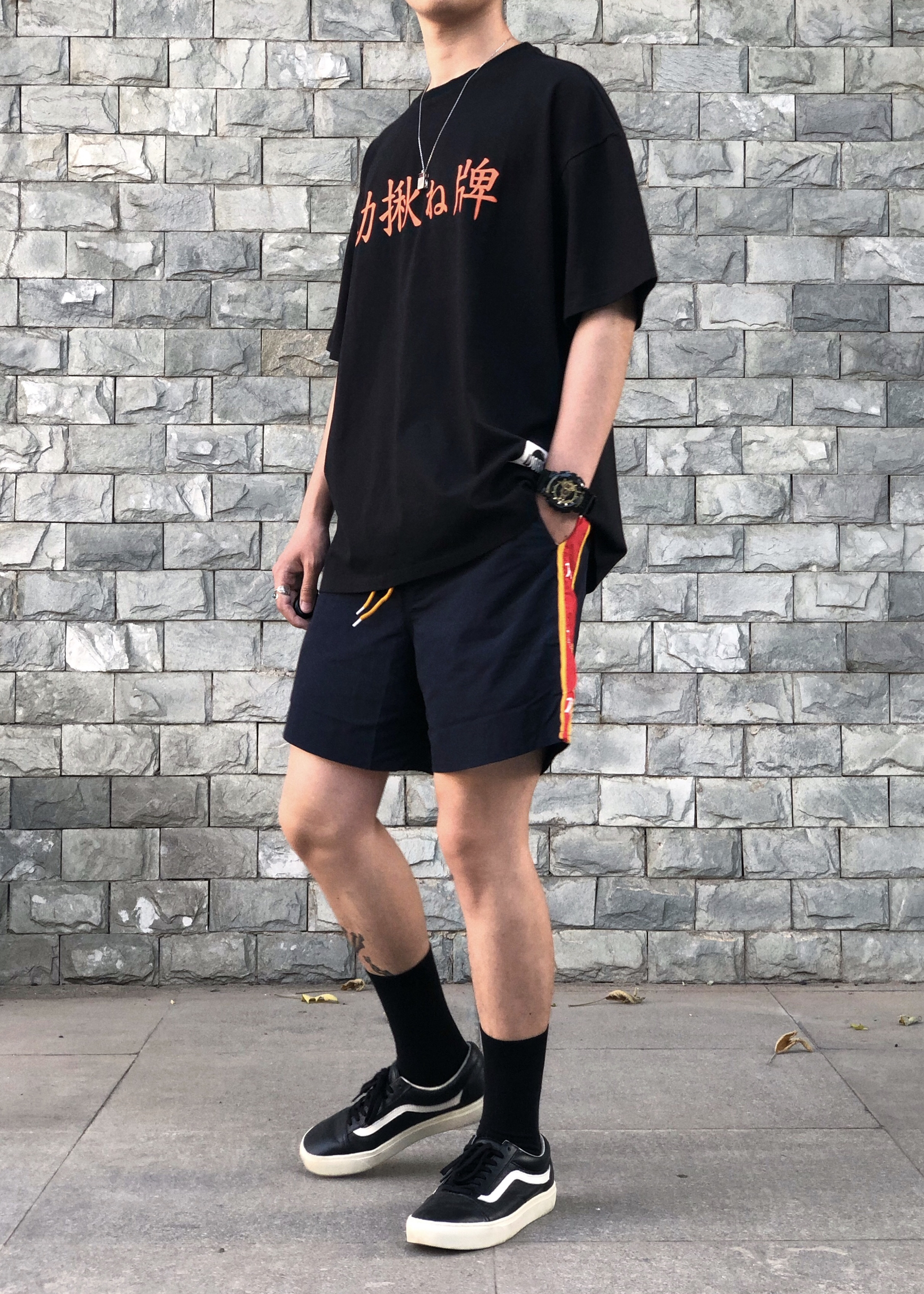 夏季穿搭有一套 深色短裤身上套 ✔ / 👕 ENTS HOSP 夏天穿点简单的 简单黑色T恤 版型好看 面料也很舒服 非常有弹性 百搭款 外穿打底都ok就是了 🩳 ENTS HOSP 这么热的天 一条好穿又舒服的短裤必不可少 侧边串标设计 简约而不简单 搭配起来也简单 更重要的是凉快啊 👟 Vans 既然追求好穿 那么黑白配色的Vans来了 就是怎么搭配它都可以hold住系列