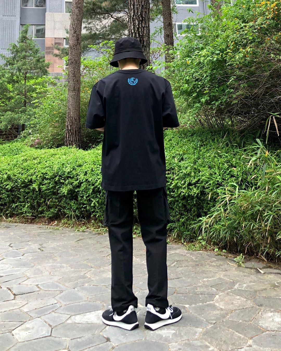 最近特别喜欢这种黑色简约穿搭 感觉黑色系穿搭总能给人一种特别舒服特别干净的感觉 上身类似就行了 最主要是黑色 下身选择一条直筒工装裤或者一条垂感直筒裤