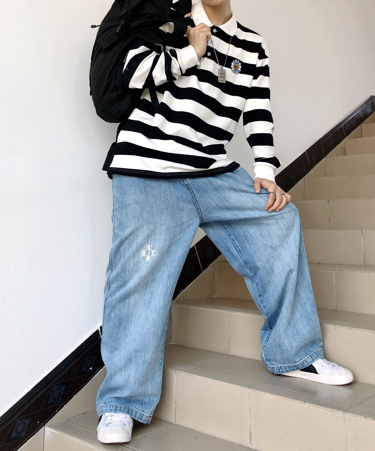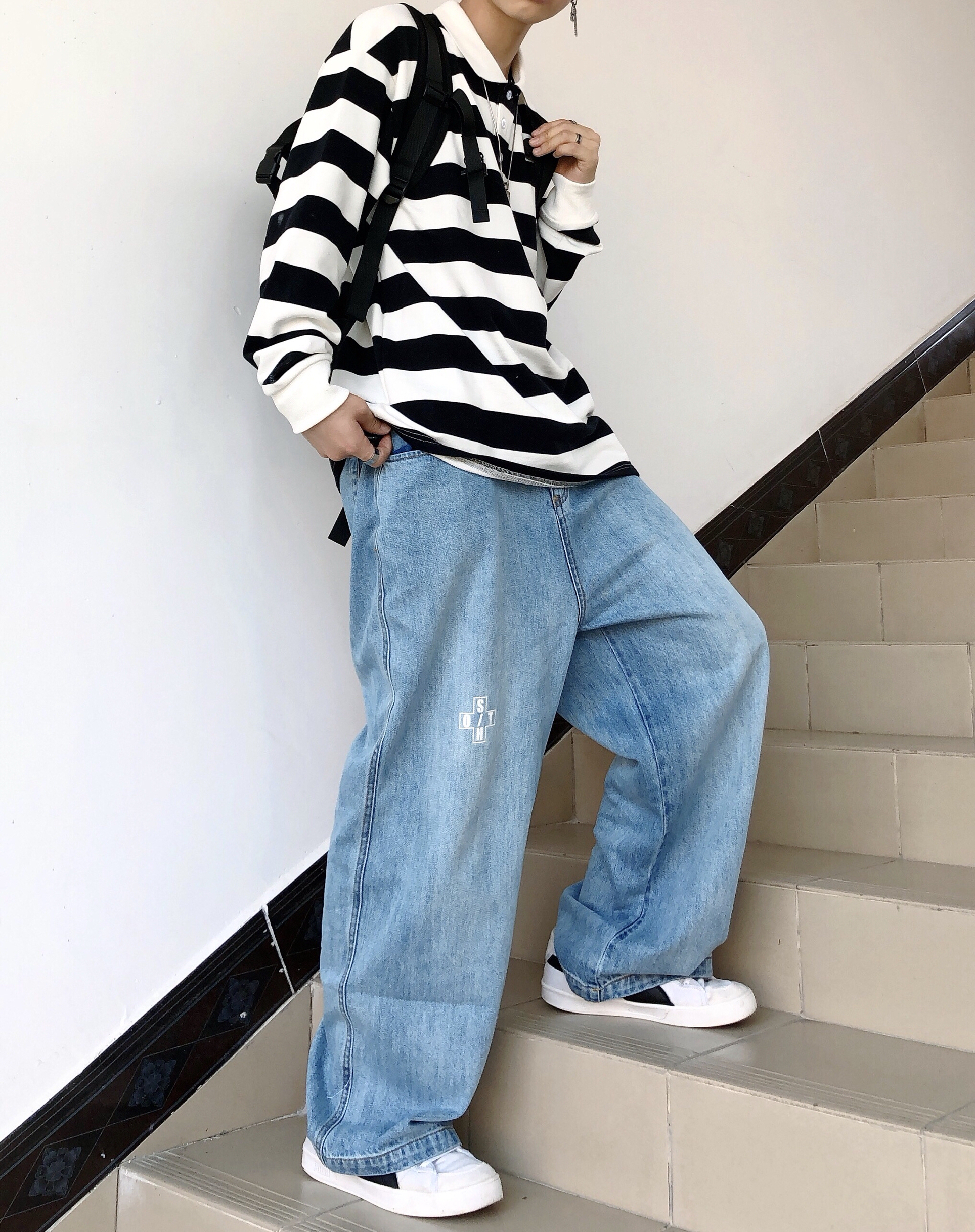 今天给大家带来一套适合现在初秋的穿搭分享。 👕条纹polo衫 给条纹控的大哥大姐们种草这件条纹长袖,黑白条纹长袖Polo 衬衫,胸前的太阳花图案是刺绣工艺,是衣服的亮点,小巧精致还小清新。衣服版型偏宽松,领口和袖口都具有弹性,下摆有垂坠质感,上身超好看,细节做的非常到位👌 👖直筒水洗牛仔裤 一件常规的直筒宽松牛仔裤与条纹长袖进行搭配,简单干净,好看就完事了。 🎒闪潮livebox 结构体系设计感很...