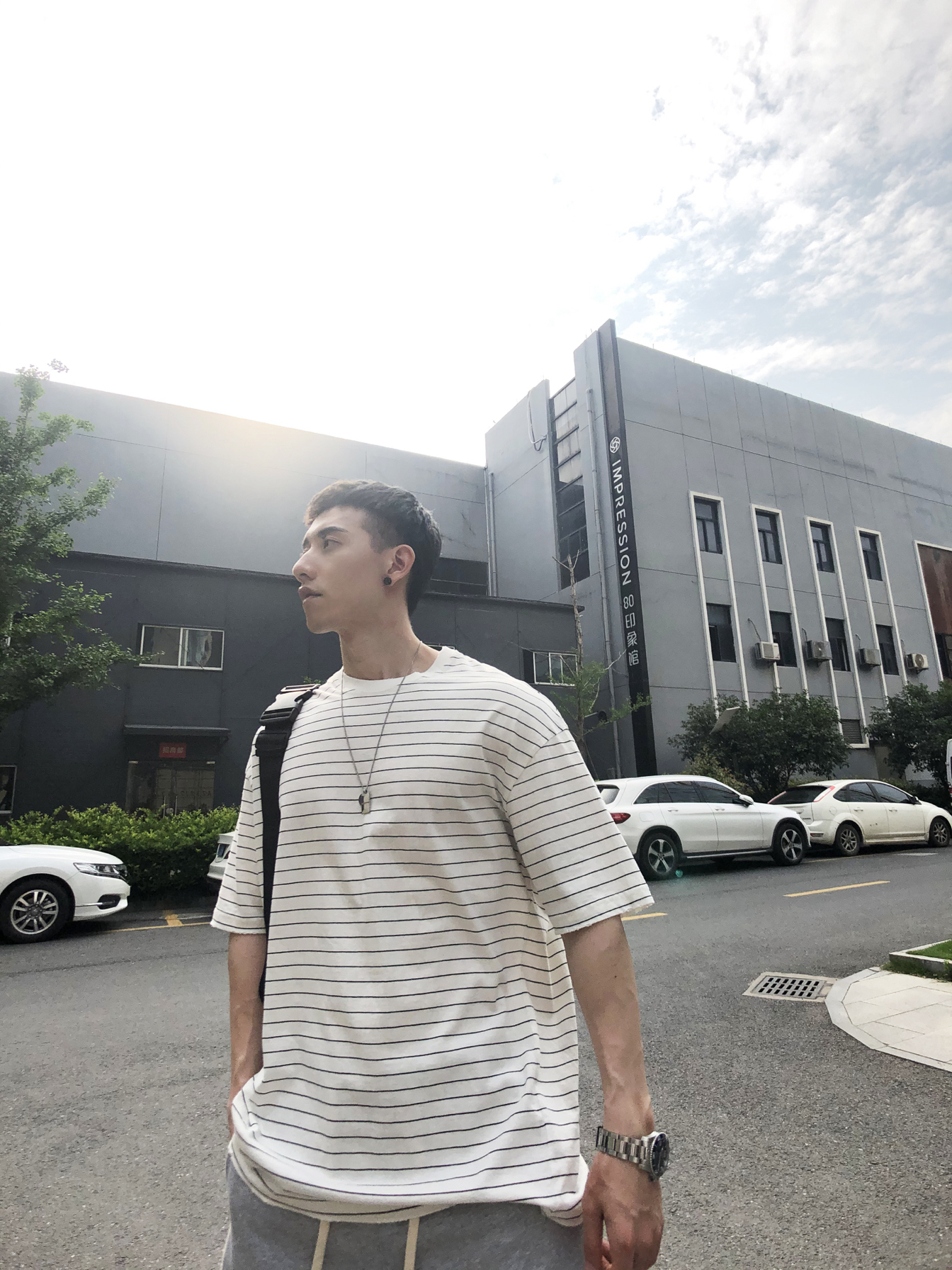 * 👕上衣来自:哈林哥STUDIO * 👖裤子来自:哈林哥STUDIO * 👟鞋子:yeezy 350 v2 白斑马 * 🎒背包来自:哈林哥STUDIO * ⌚手表:浪琴康卡斯 * ———————————————————— 🉐穿搭:条纹T恤好看的很少,这件是我穿过那么多条纹系列里最喜欢之一。可以说是百搭到 贯穿任何风格吧,日系 韩系 高街 各种.... 短裤就不多说咯~百搭...