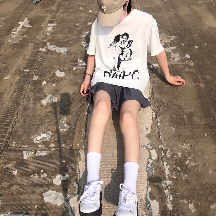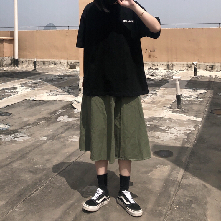 👕TeamAge 玫瑰印花设计很有立体感 👖私服 👟vans old skool vans就完事儿 黑色的T搭配绿色的工装裙 | 虽然都是深色系搭配 | 也会给人一种学生的感觉 穿一双百年vans搭配黑色T的形式万年不老 永远经典!
