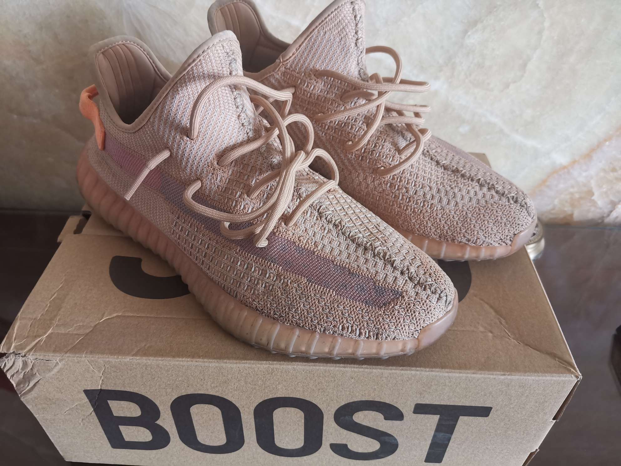 今天给大家带来一款yeezy350V2🌚美洲限定 我夏天穿的最多的一双鞋,几乎夏天一直再穿🌚 鞋身大体呈淡土色,鞋身侧面有一道镂空,可以大致看出你袜子的颜色,镂空部分由粉色,紫色和淡紫拼接而成,后跟提带用了亮眼的荧光橙,整体感觉,低调中带着很多丝的骚🌚哈哈哈哈哈 本人皮肤偏黑,去店里试过浅色的系列,会显得腿更黑,所以入手了这款,全黑也好看(但是太贵了)这双鞋目前在原价附近徘徊,还等什么呢铁汁们,冲...