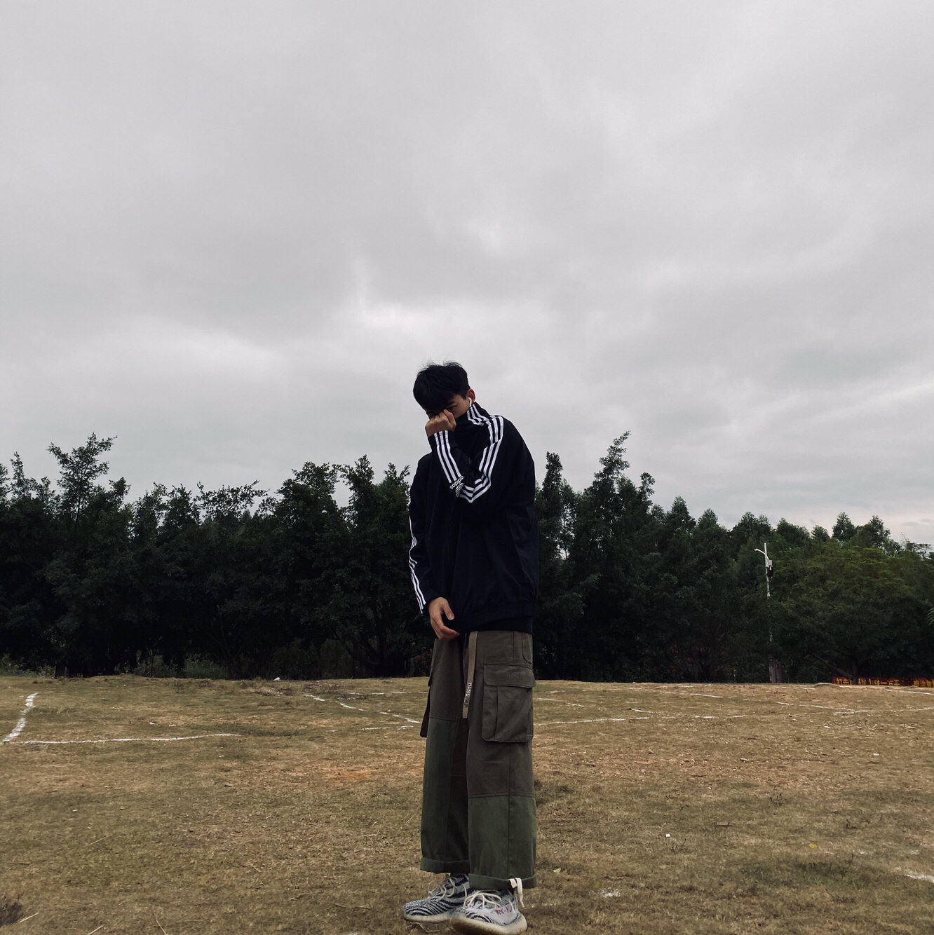 今天是个害羞得不敢见人的男孩👦 🧥:阿迪达斯三叶草 👖:supertofu 👟:yeezy350白斑马 腰带:madness 超爱这件夹克简约的设计,三叶草经典的三条杠设计一直深得我心,搭配上军绿色工装拼接裤,简单好看❤️