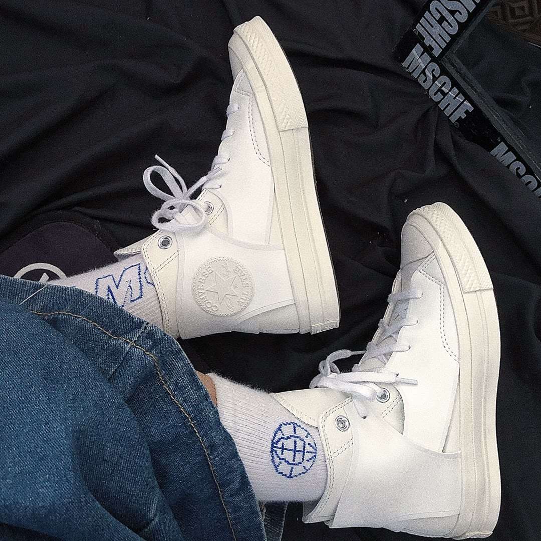 匡威白解构联名款好看到起飞 纯白色的皮质鞋面质感非常十足非常非常的百搭看细节也非常的nice 特别是鞋盒