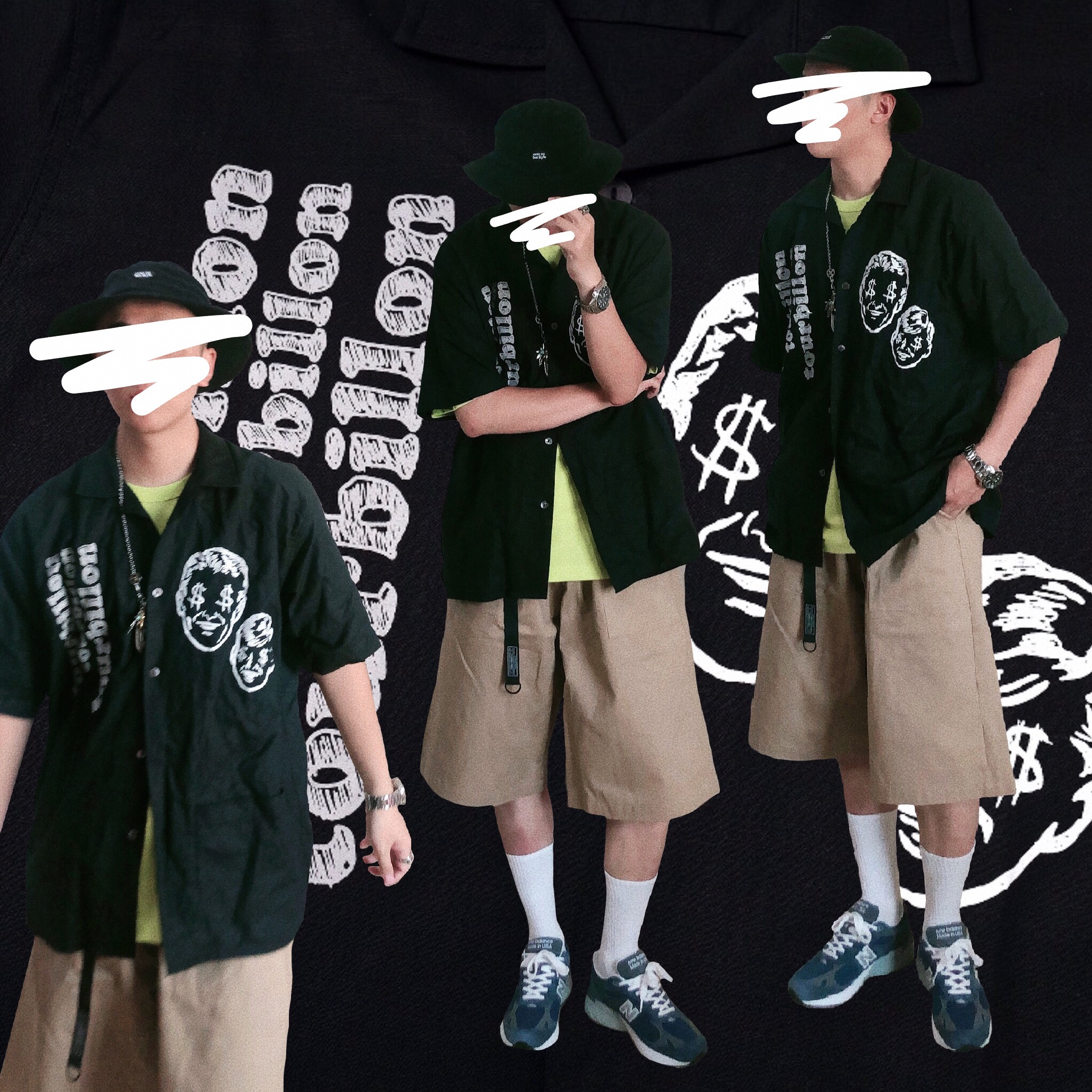 👦🏻:Hello大家好!我是Tamsen 现在天气越来越热了 夏季穿搭也安排上吧! 👕T恤:VERMICELLI vmcl 20SS 墨绿色 街头标语印花宽松夏短袖T恤 👖裤子:SUPERTOFU英式军裤口袋原牛丹宁赤耳宽松九分洗水牛仔裤 👟鞋子:New Balance 996元祖灰