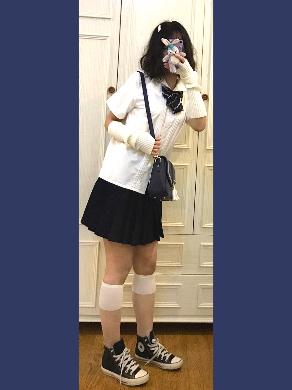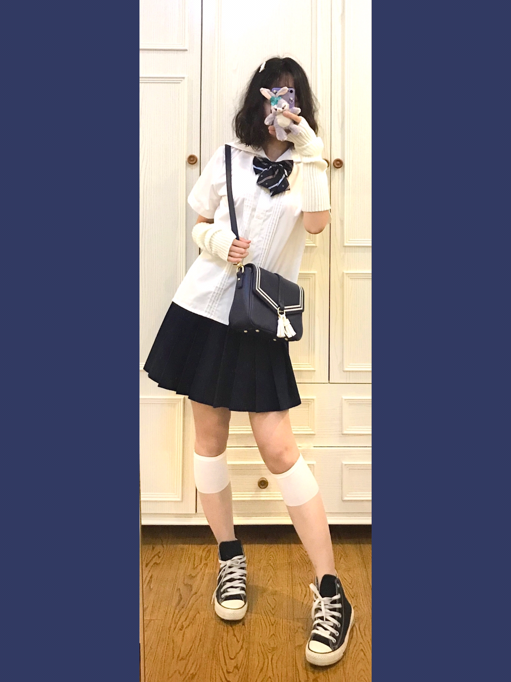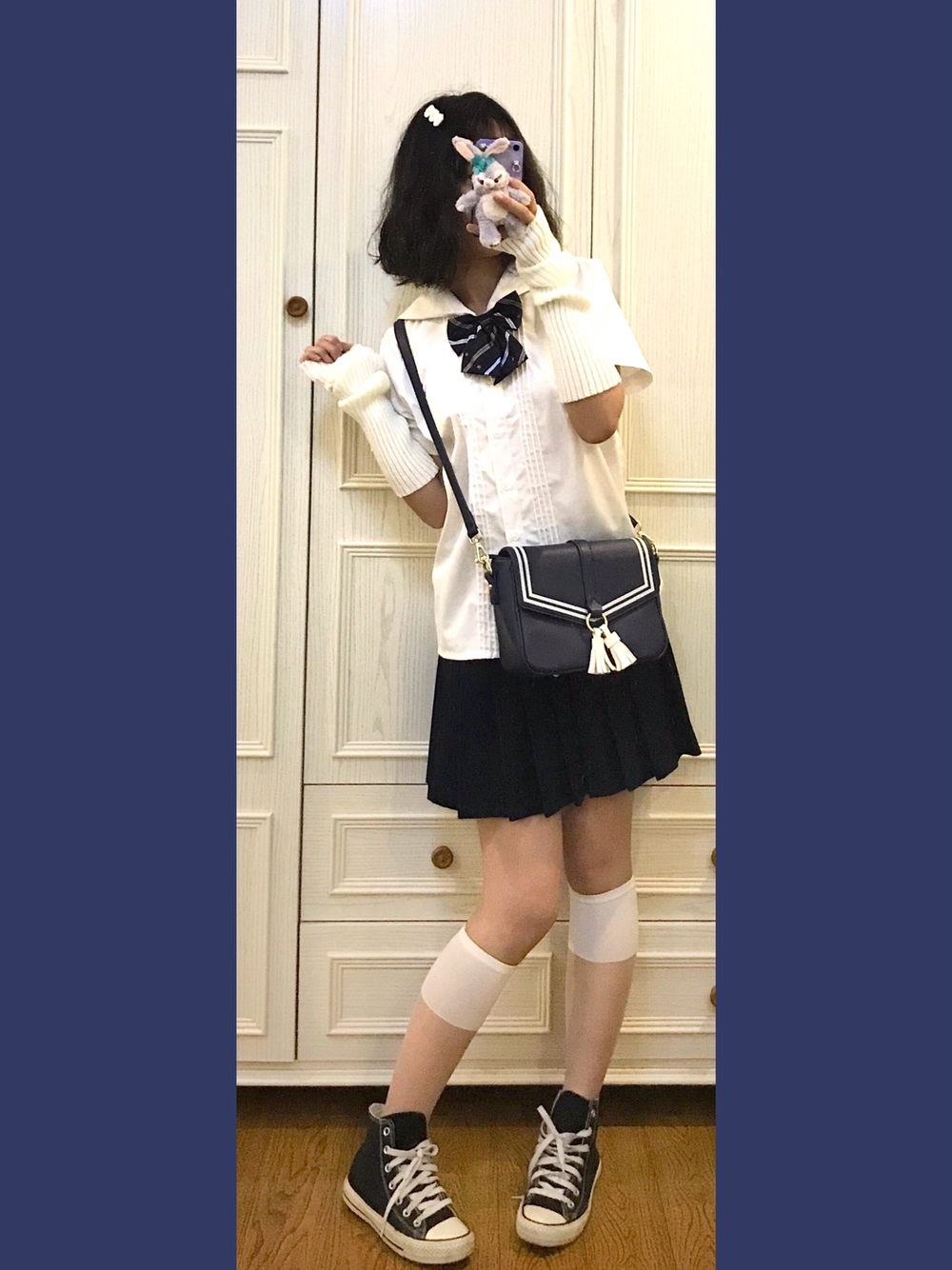 👧🏼穿搭灵感来源🌙 虽然水手服衬衫👕我只有一件!但是几十个领结就可以变成好多件!!今天清淡一点搭配一哈~ 🎵Bgm:OneRepublic-Counting Stars 👧🏼单品配饰如下🌙 👚基础款jk水手领衬衫 好几年前买的了!应该是黛jk或者其他平价国牌!性价比蛮高滴 👗藏青基础款jk制服裙 燕子家的不用说啦!因为现在好看的小裙子一个都抢不到哈哈哈 👒白乎乎毛绒发夹 身为一名老年Jk!通身可可...