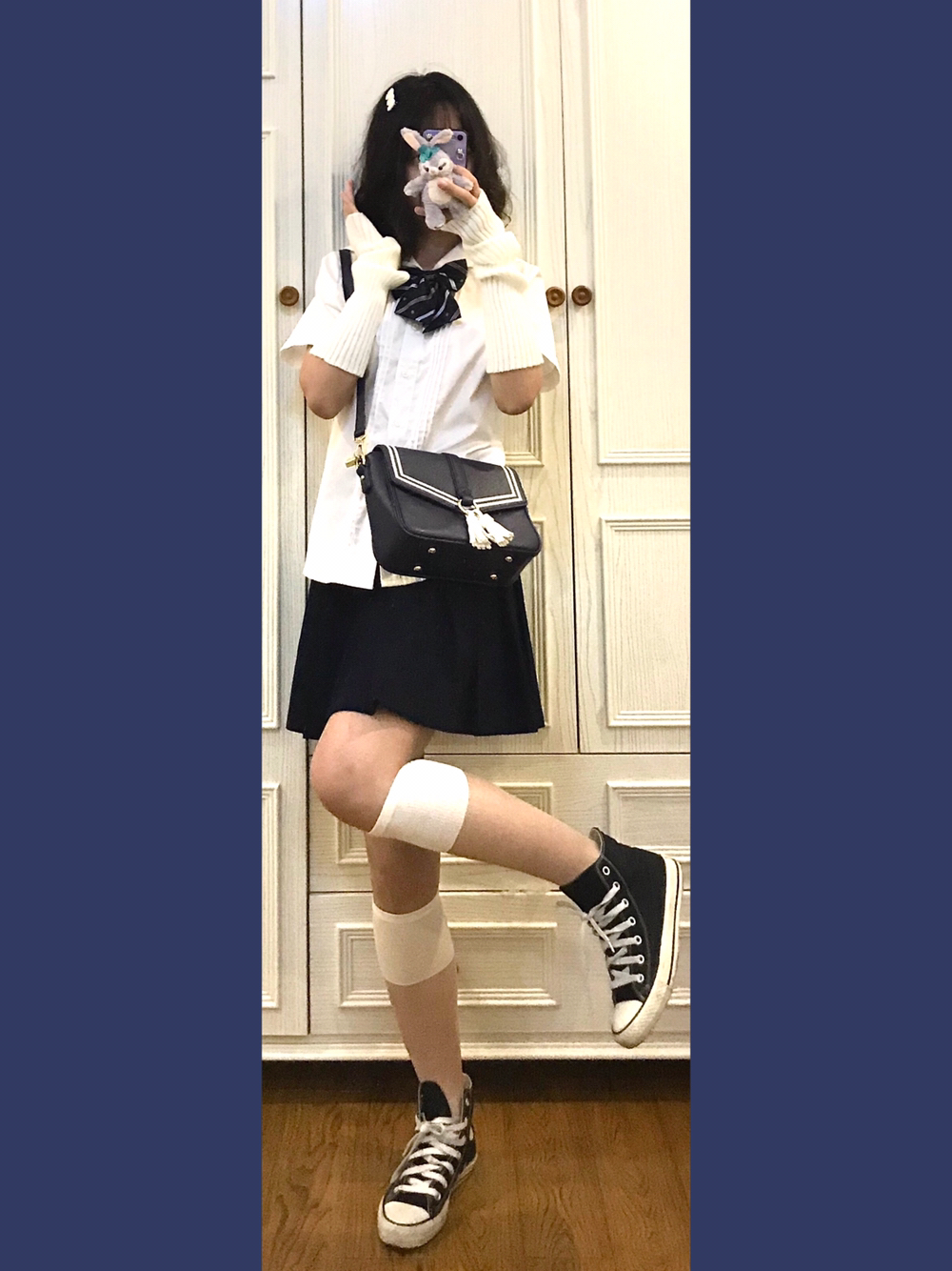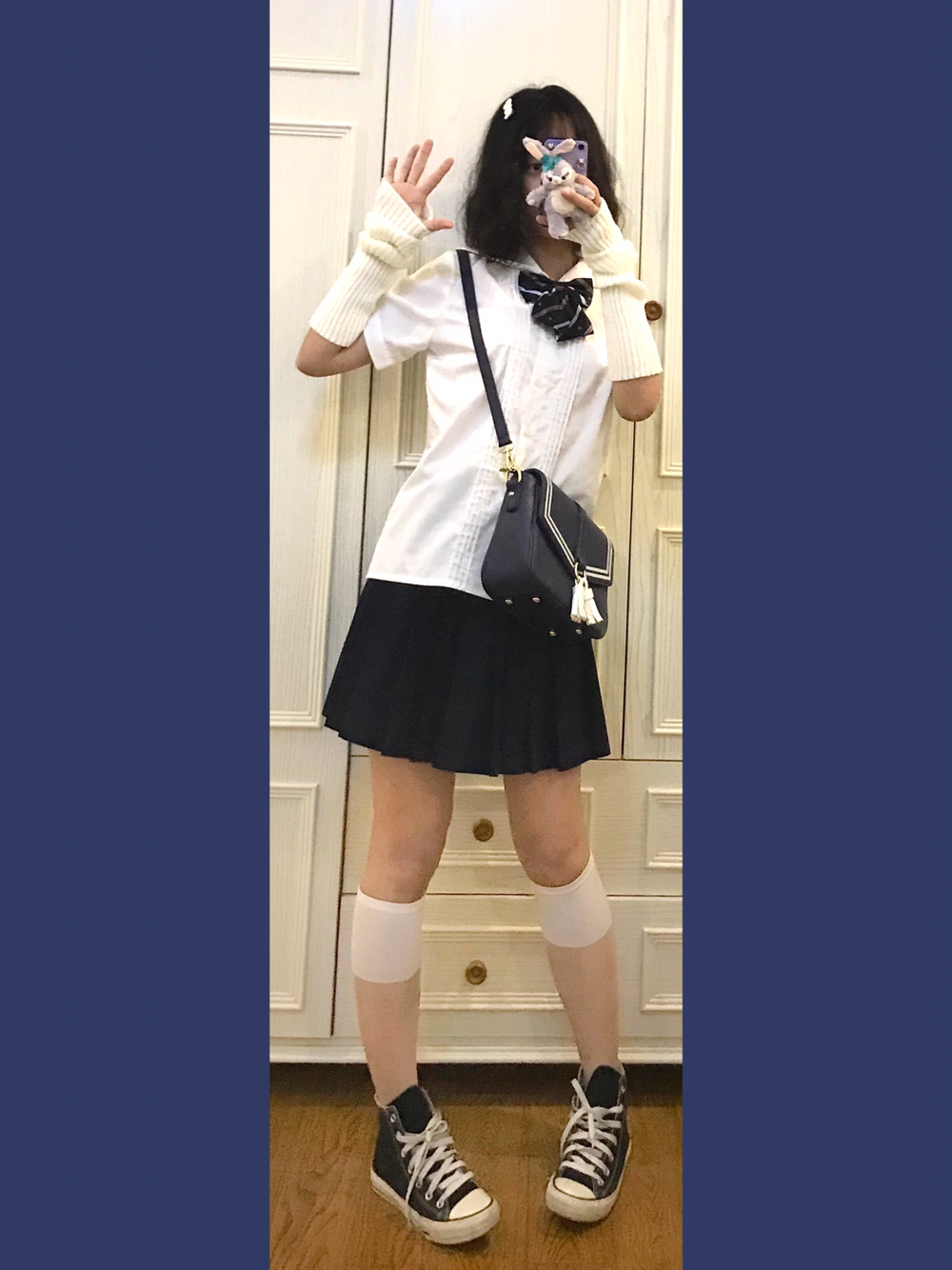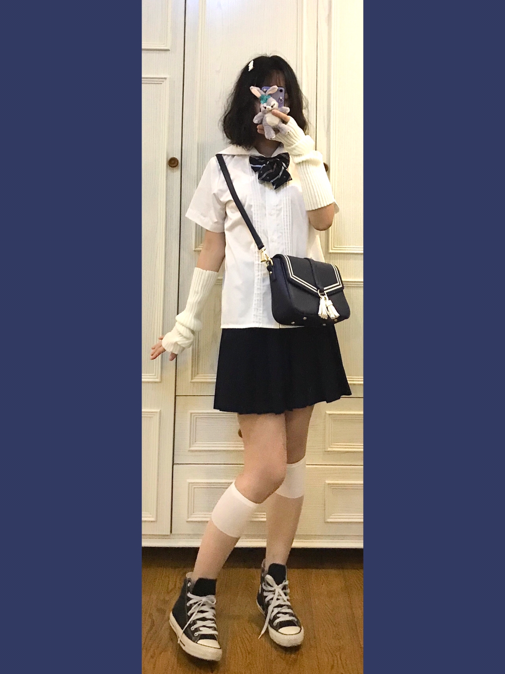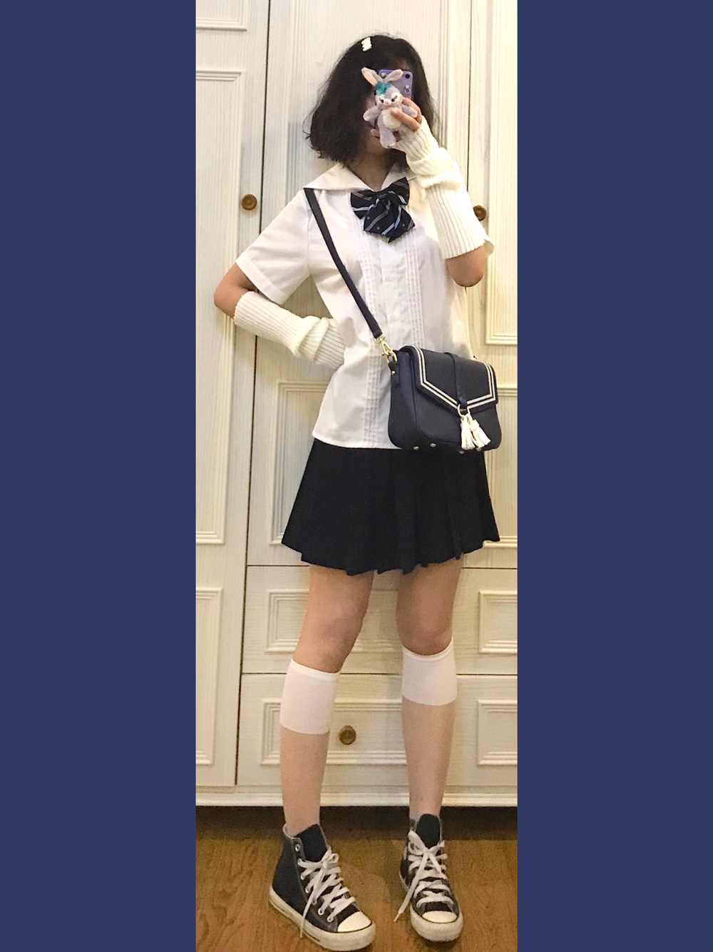👧🏼穿搭灵感来源🌙 虽然水手服衬衫👕我只有一件!但是几十个领结就可以变成好多件!!今天清淡一点搭配一哈~ 🎵Bgm:OneRepublic-Counting Stars 👧🏼单品配饰如下🌙 👚基础款jk水手领衬衫 好几年前买的了!应该是黛jk或者其他平价国牌!性价比蛮高滴 👗藏青基础款jk制服裙 燕子家的不用说啦!因为现在好看的小裙子一个都抢不到哈哈哈 👒白乎乎毛绒发夹 身为一名老年Jk!通身可可...
