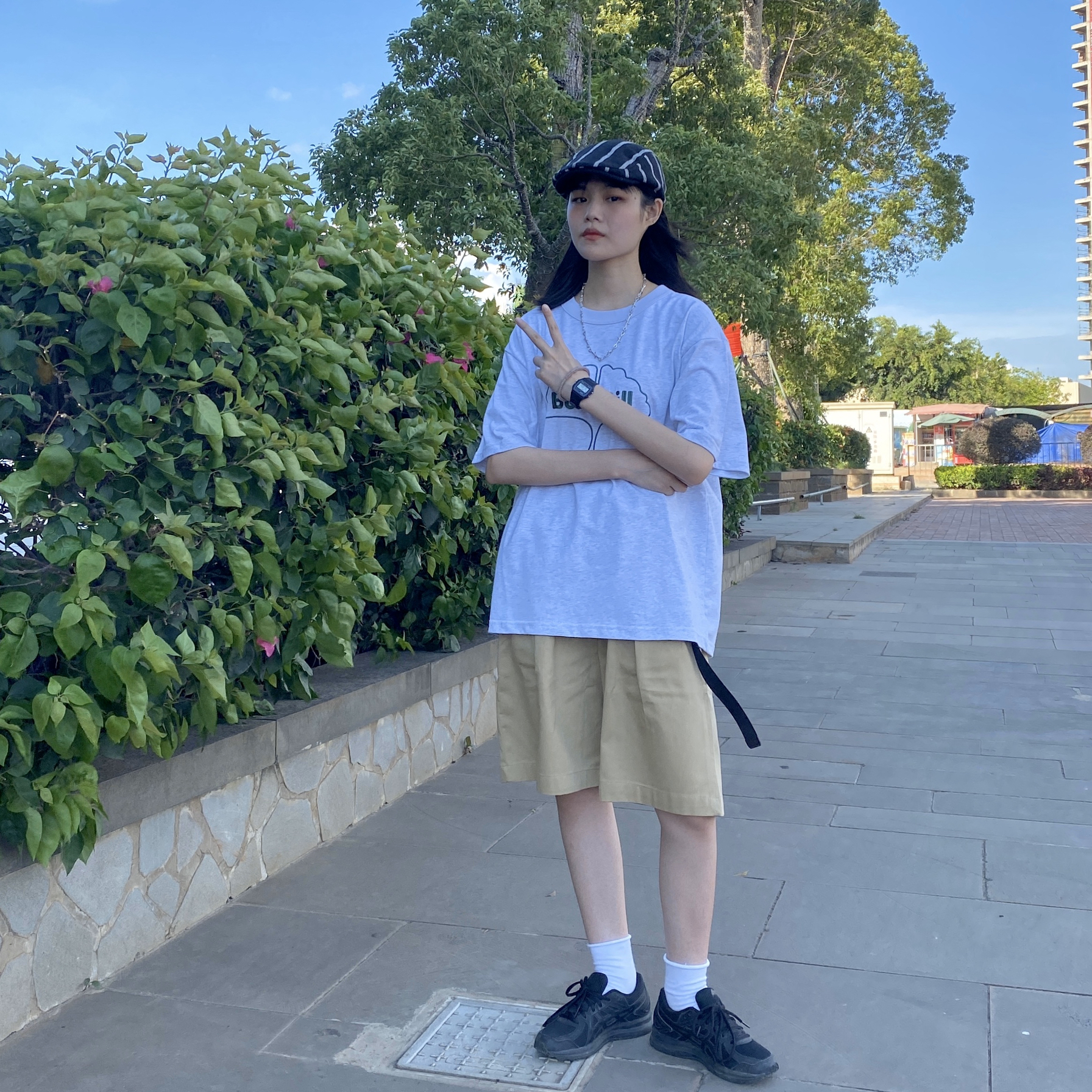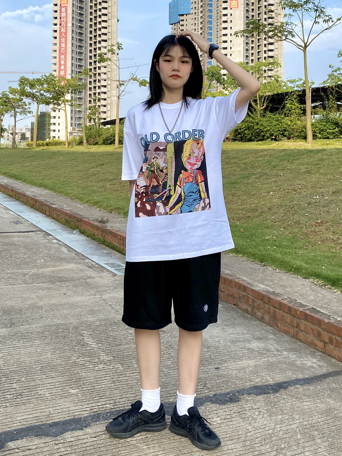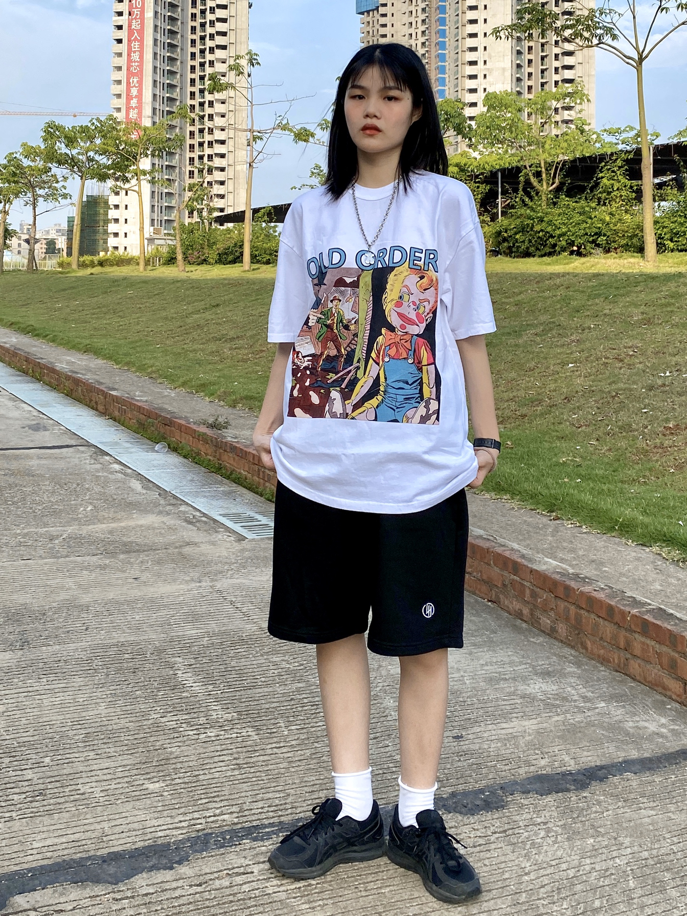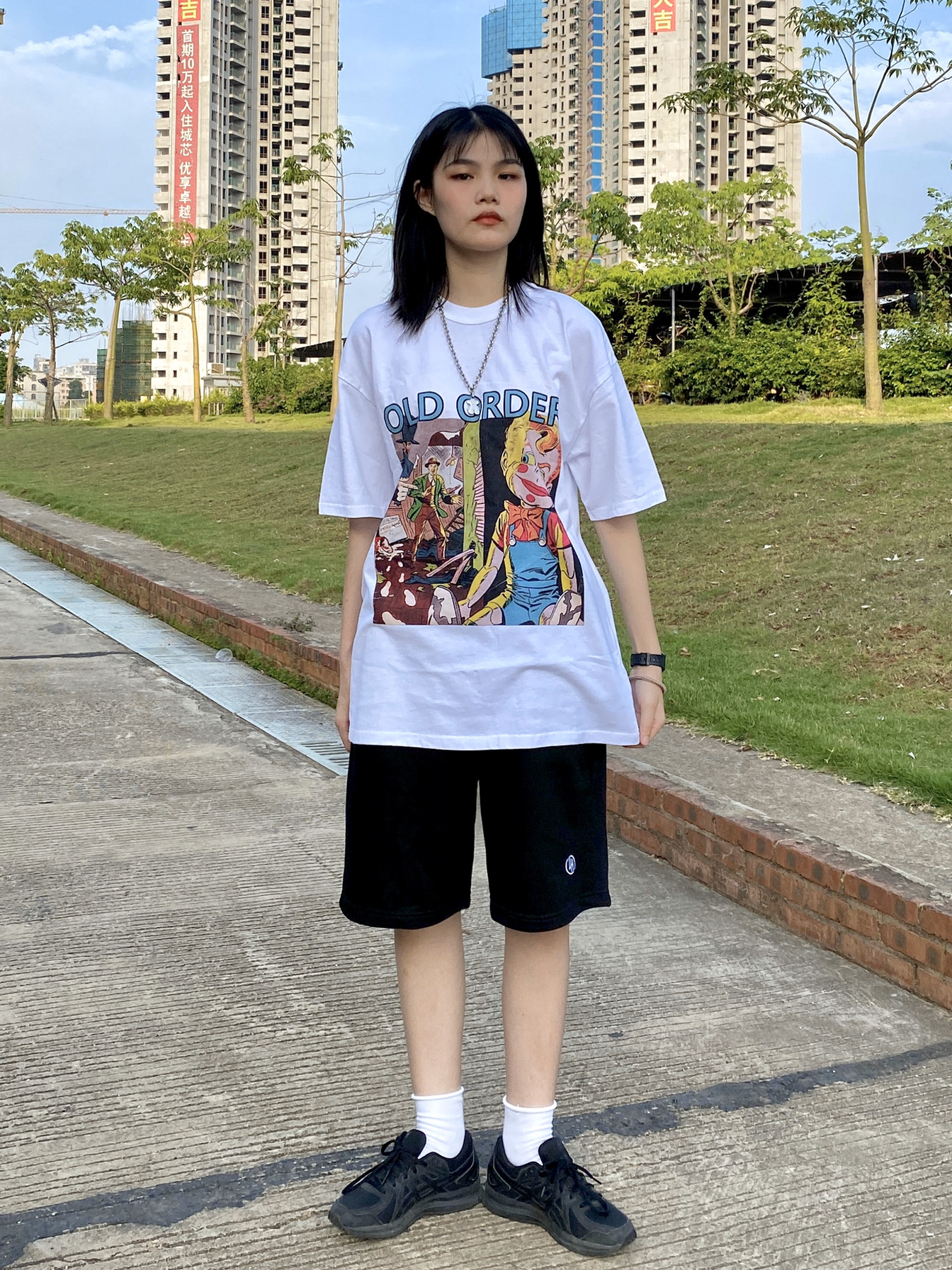 👔:OLD ORDER 这件T的印花真的太喜欢了!夏天本来就会有很多T,一般白色的这些有趣的印花就会很吸引我! 👖:LAHON OFFICIAL 宽松版型的黑色休闲裤,穿起来很舒服,而且很百搭! 👟:亚瑟士 全黑滴运动鞋,百搭百搭百搭! 🧦:就是普通的白袜子,袜子漏出来会更有层次感一些。我说我是买了很多一样的白袜子你们信的吧?