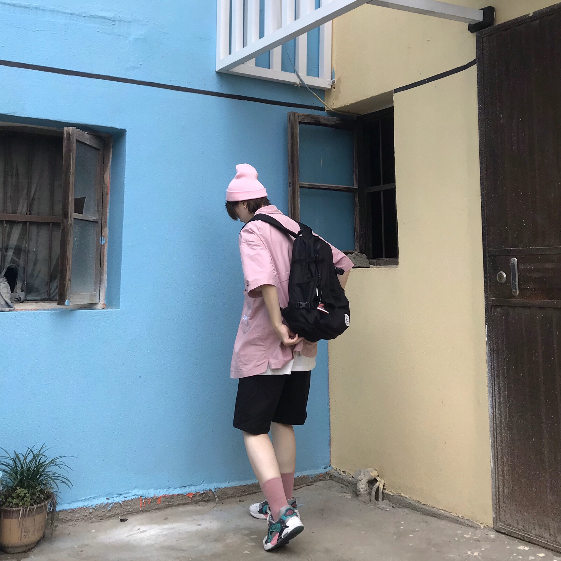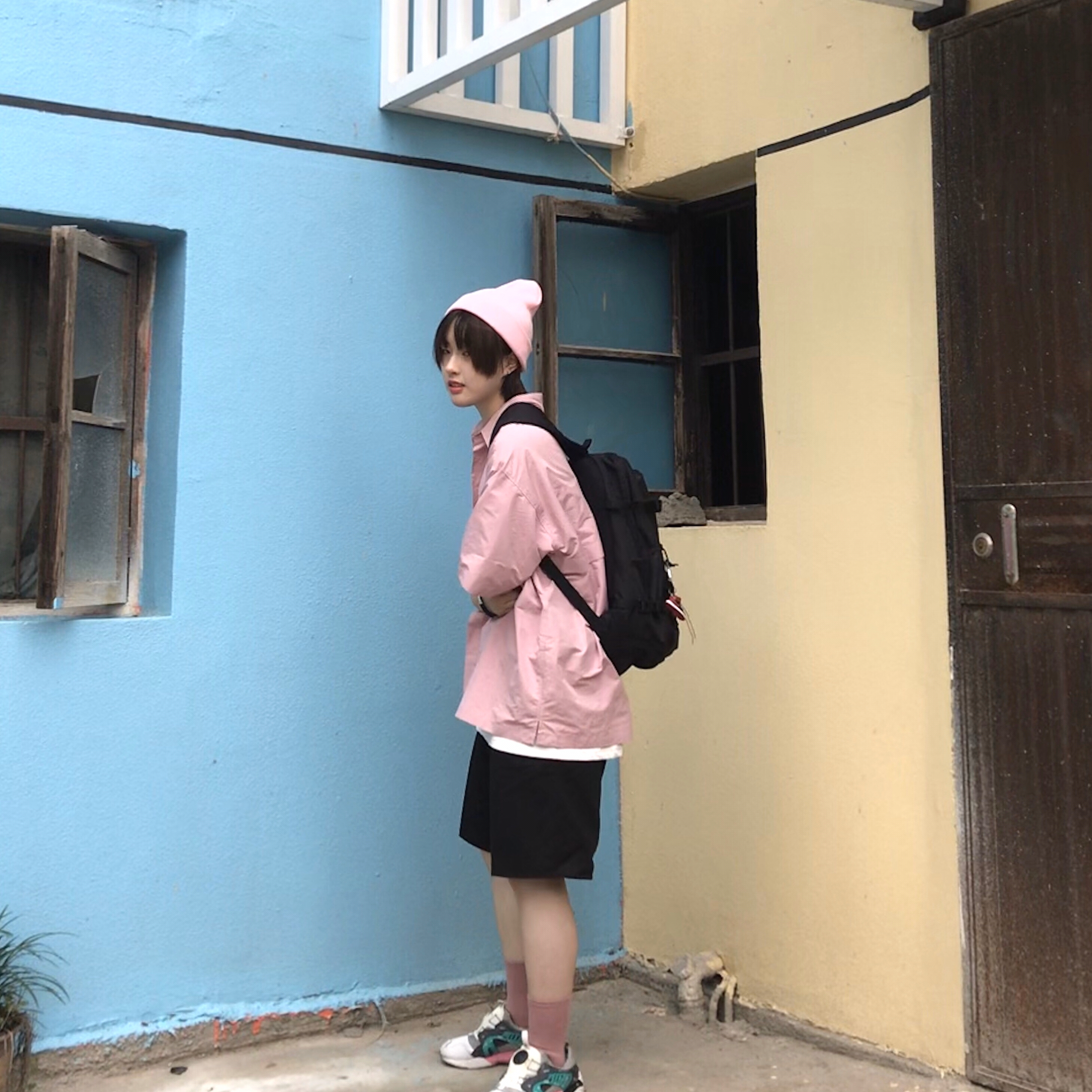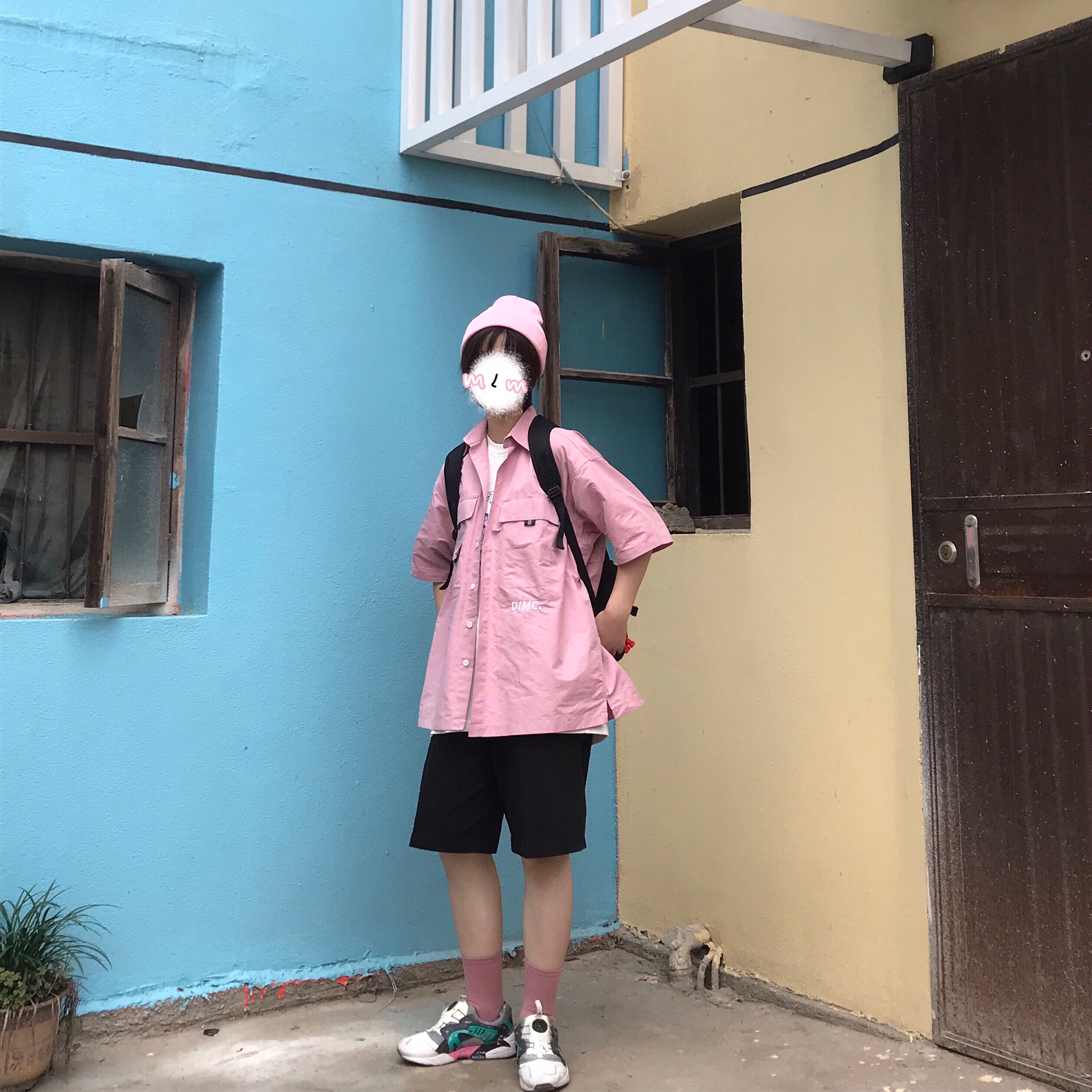 👔:DIMC 👖:Mharf 夏天如何搭配粉色上衣?当然是五分裤和长袜🧦啦!当然粉色帽子和袜子不可少,怕热的同学可以搭配鸭舌帽和短袜~另外除了粉色衬衫,直接一件粉t也非常🉑️