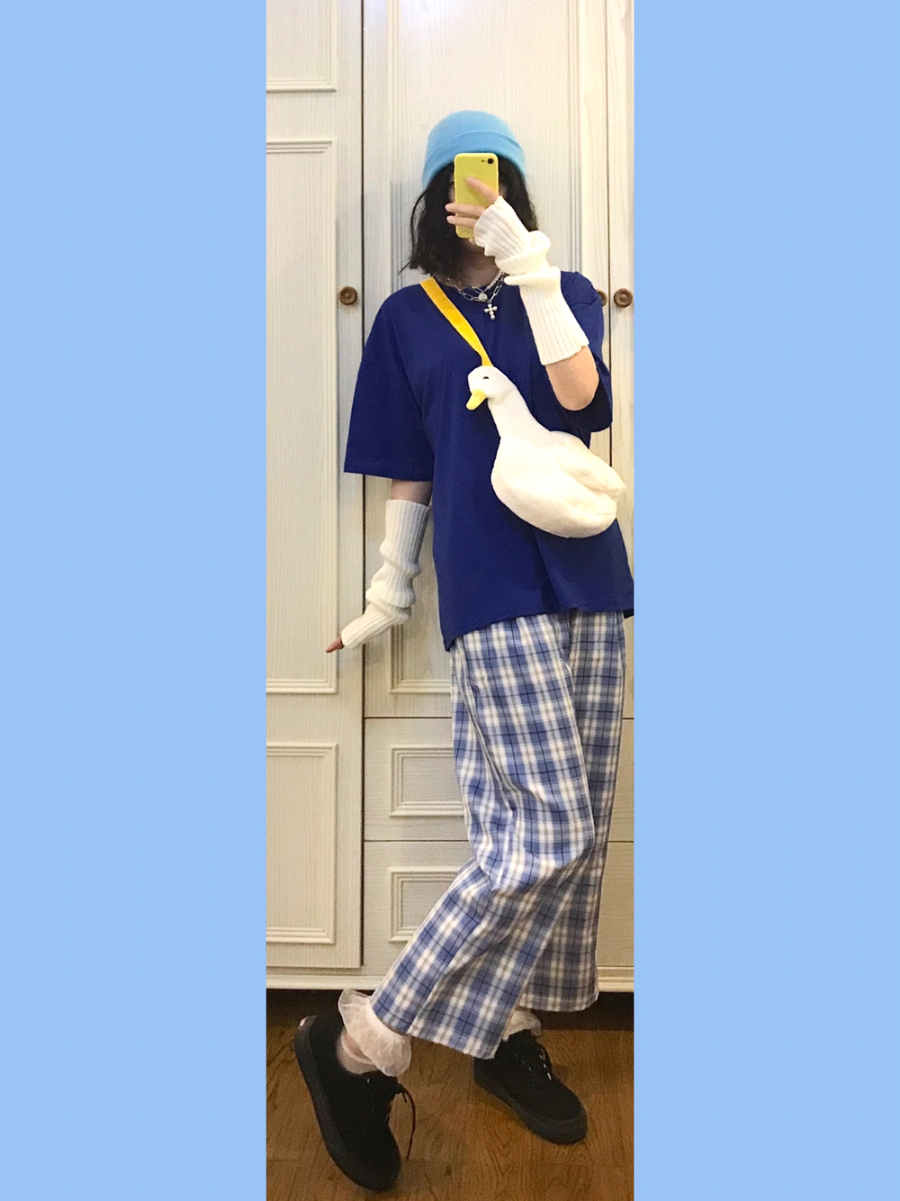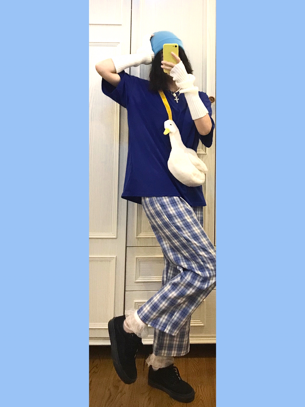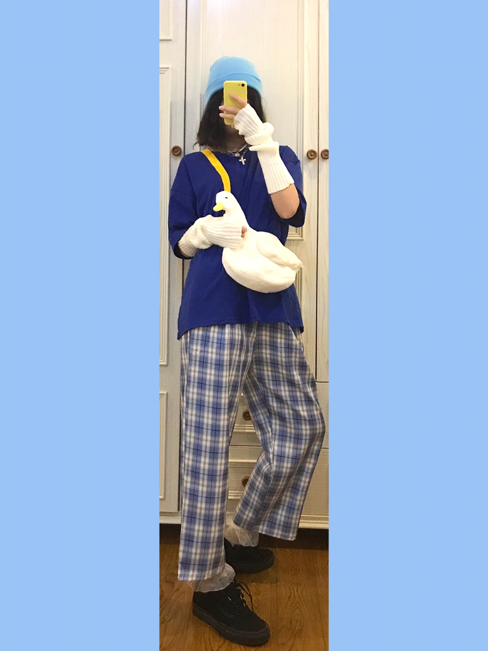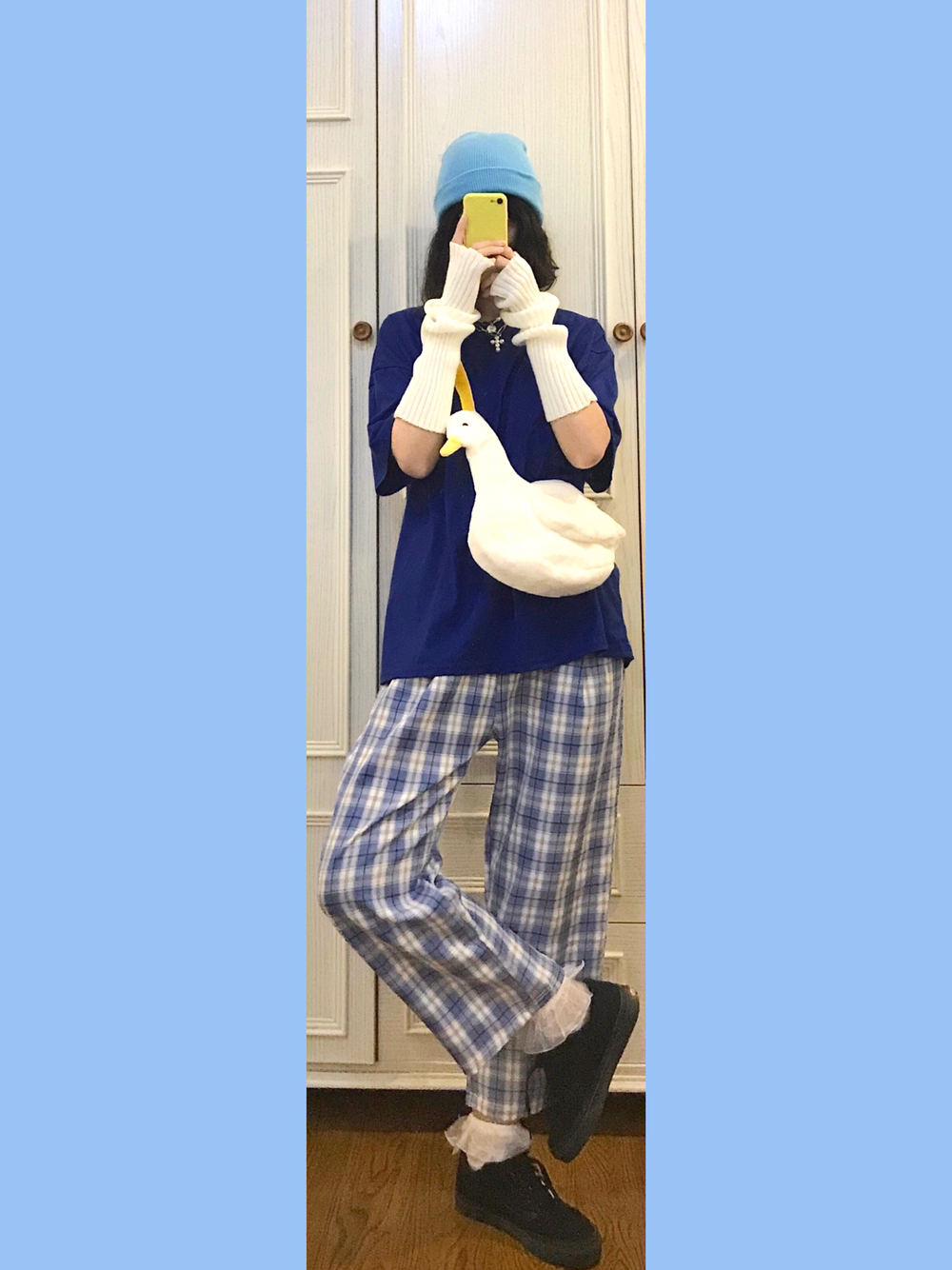 🐳穿搭灵感来源🌙 Bm风格子休闲裤舒服又百搭~一点都不会像睡裤!还显得人特别滴年轻嘿嘿😂 🎵Bgm:xxxtentacion-whoa(mind in awe) 🐳单品配饰如下🌙 👚随便🍑滴18💰短袖 实不相瞒我入了将近全部配色的oversized大短袖上班穿!舒服就完事! 👒淡蓝色绒线帽 什么颜色的裤子就搭配什么颜色的帽子!🐻弟🚪懂了🐴!颜色一样就是最机智滴 🎒毛绒鸭鸭斜挎包 🌟肩带颜色莫名的和...